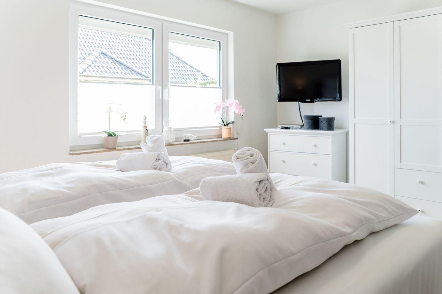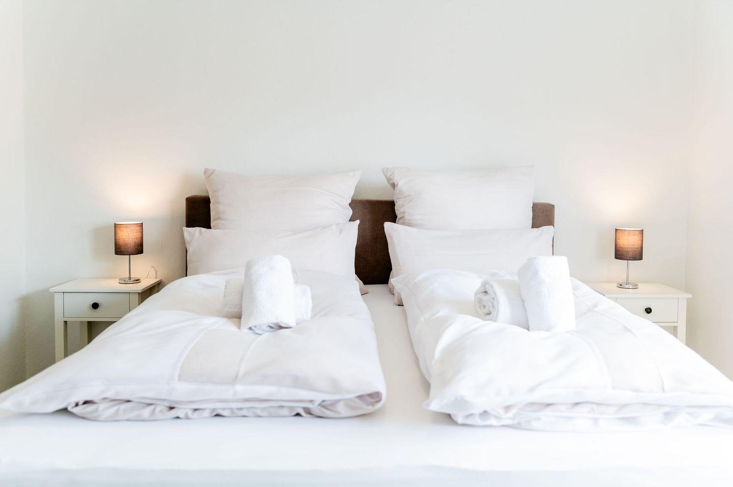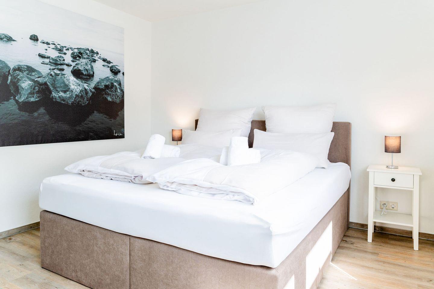 Die Ferienwohnung verfügt über zwei gemütliche Schlafzimmer, die mit sehr bequemen, neuen Boxspring Betten ausgestattet sind. Eins in der Größe 180x 200 cm