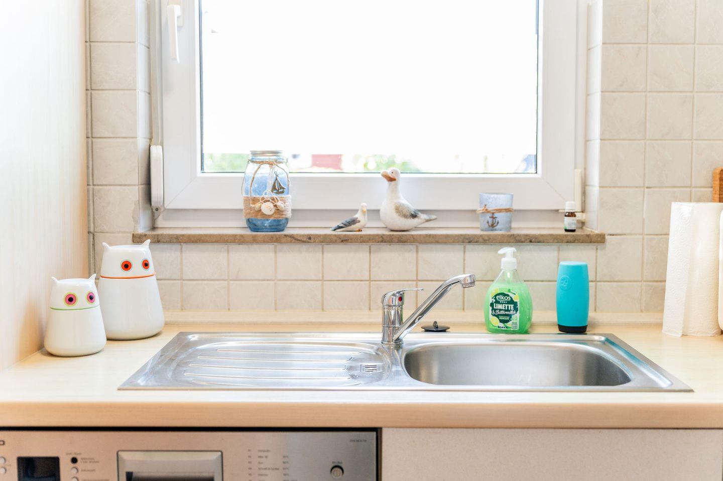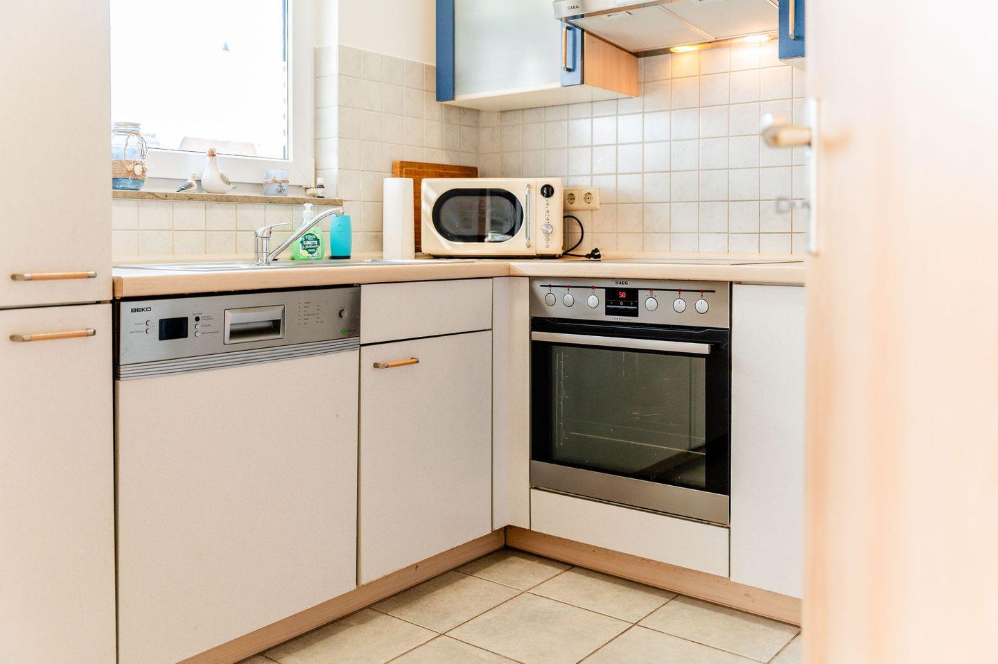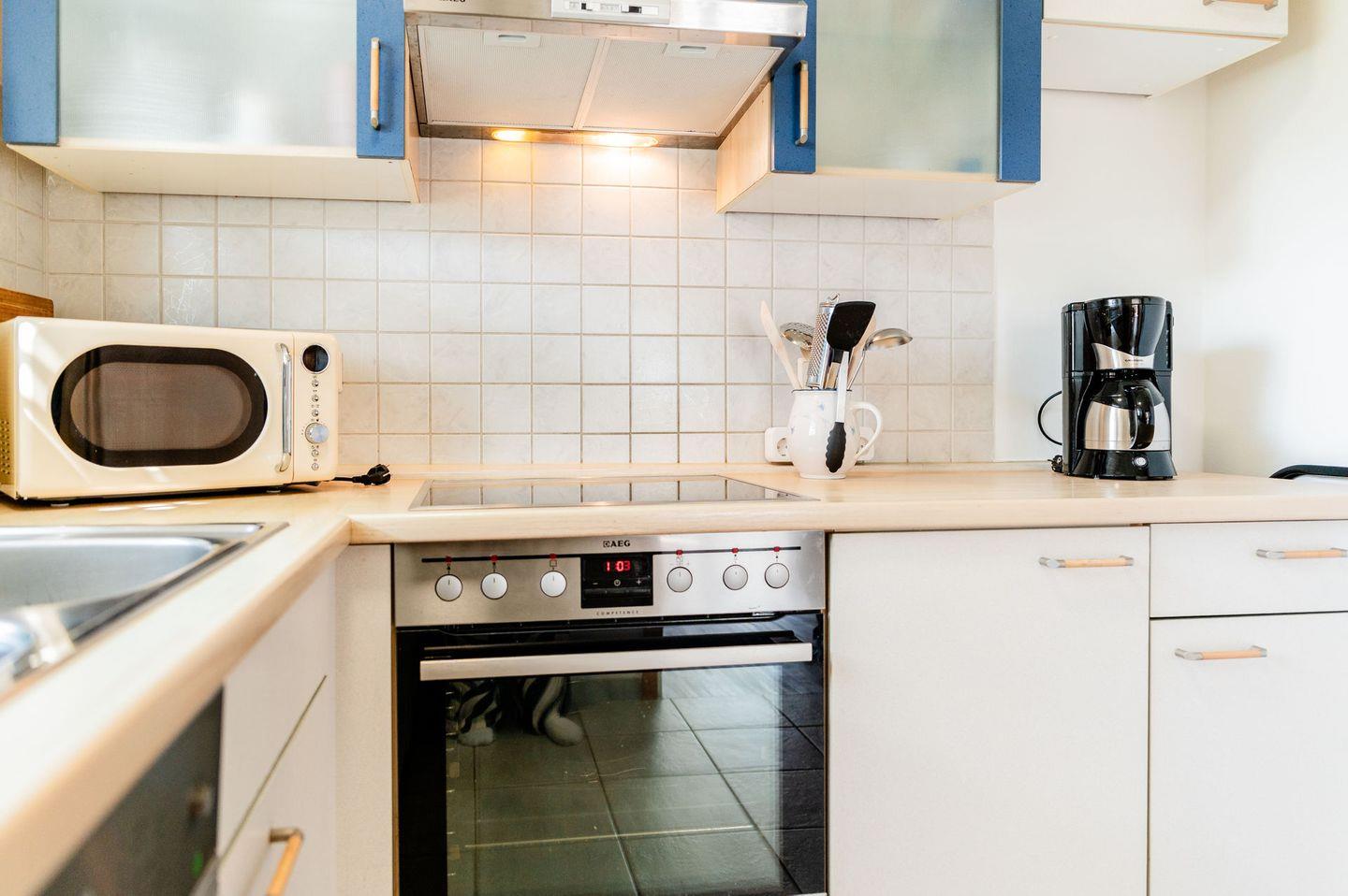 Eine komplett eingerichtete Küche bietet alle Annehmlichkeiten, die Sie benötigen, um köstliche Mahlzeiten zuzubereiten.