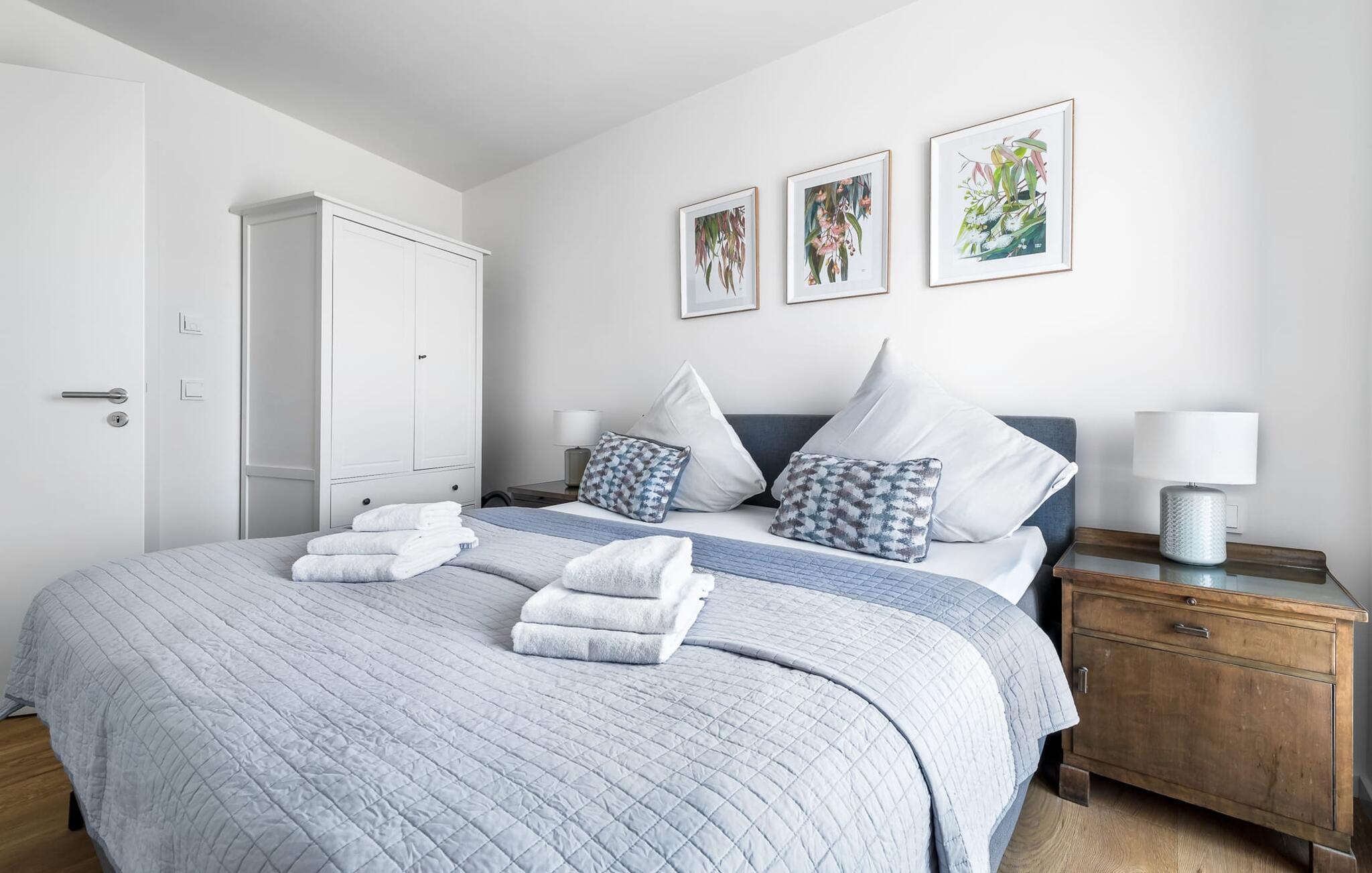 Ebenfalls hochwertig und modern eingerichtet sind die beiden Schlafzimmer. Sollte das Wetter mal zu grau für den Blick nach draußen sein, sorgen Einrichtungsakzente zum Thema Australien für Träume von Sommer, Sonne, Strand und Meer.