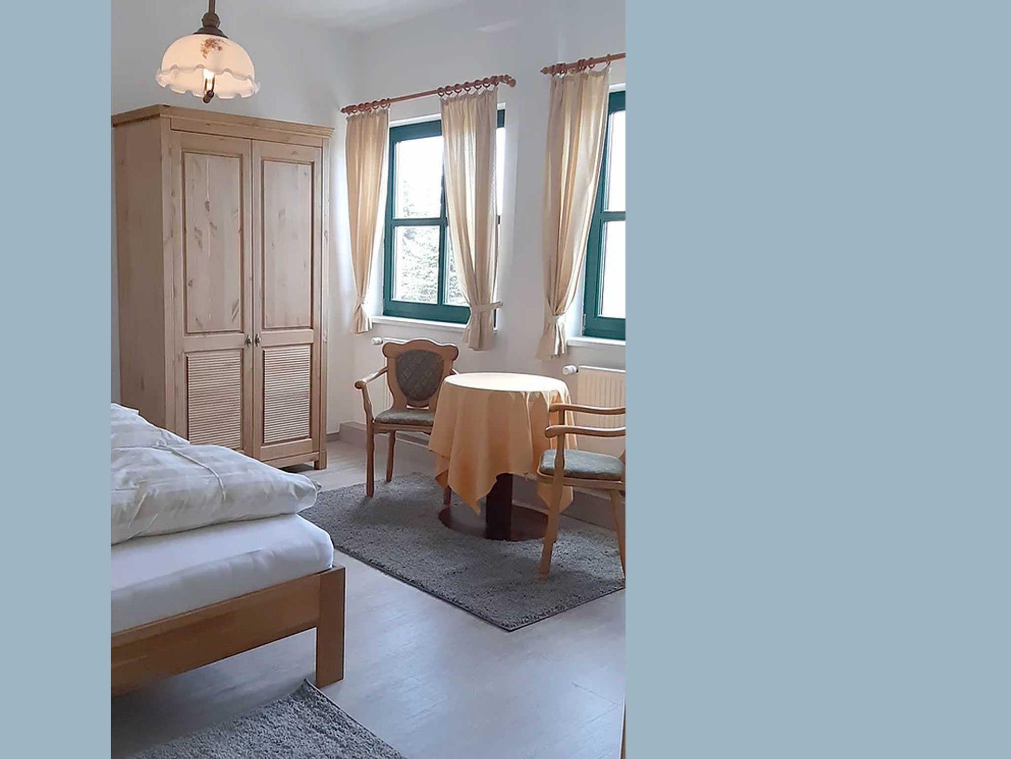 Dieses Zimmer ist ca 35 qm groß und alles ist in einem gemütlichem Raum untergebracht. Sie haben einen gemütlichen Wohnbereich und einen schönen Bereich zum Schlafen. Das Zimmer ist mit DU/WC und TV ausgestattet. Hier können max. 2 Personen Ihren Urlaub genießen.
