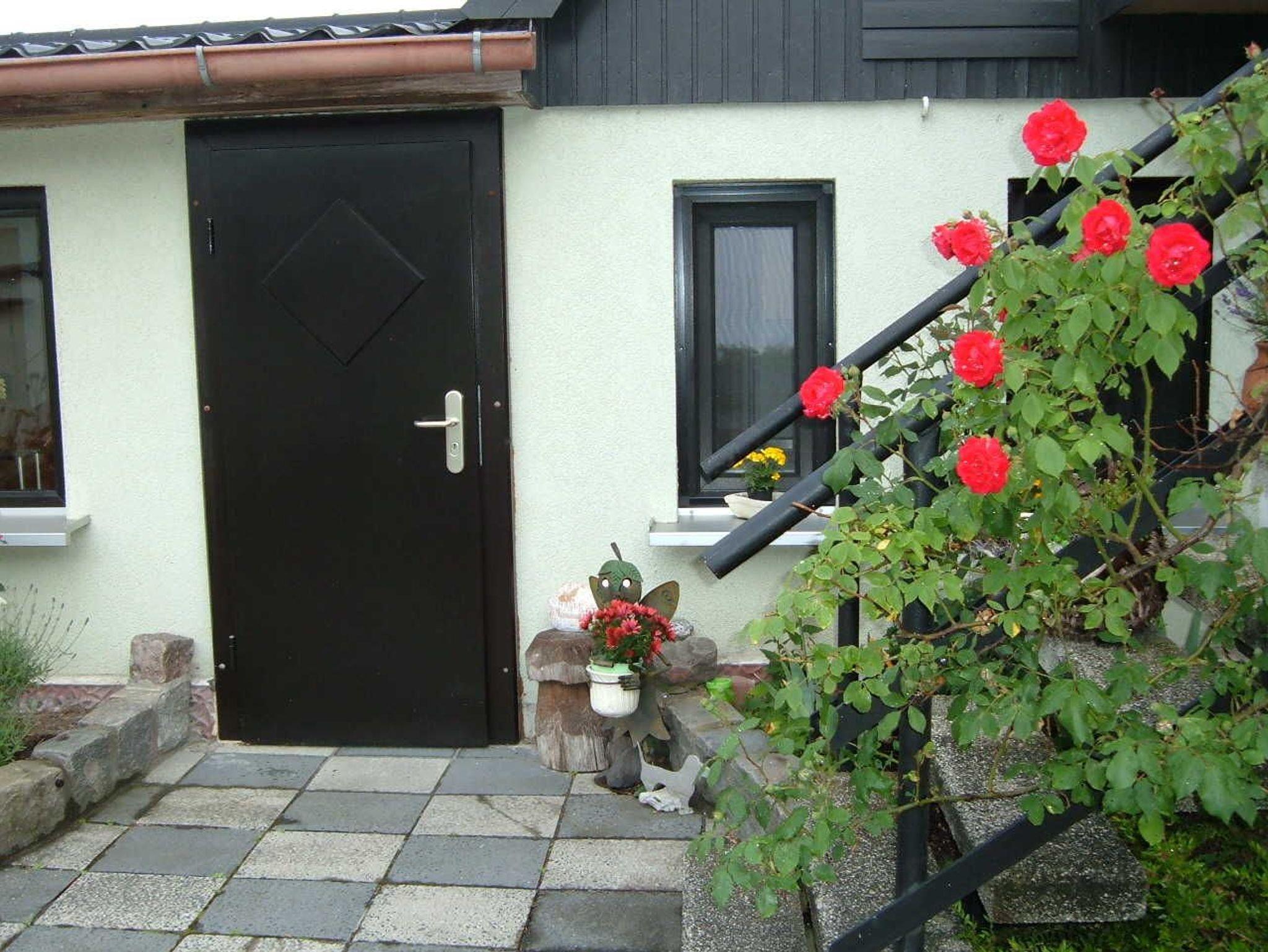 Ferienwohnung mit separatem Eingang ebenerdig auf eigenem Grundstück. (alle Räume haben Fenster und sind mit Insektenschutz), sep. Schlafraum mit Ehebetten und 2 Nachttischen, separate Dusche(neue Duschsäule-Überkopfbrause-Handdusche) und WC mit Fenster, Wohnraum mit Fenster, neue Einbauküche (Fenster im Küchenbereich) mit doppelter Cerankochstelle, Spüle, Kühlschrank mit Gefriermöglichkeit, kompl. Ausstattung Geschirr-Töpfe-Besteck, Toaster, Wasserkocher, Filterkaffeemaschine, Eierkocher, Mikrowelle