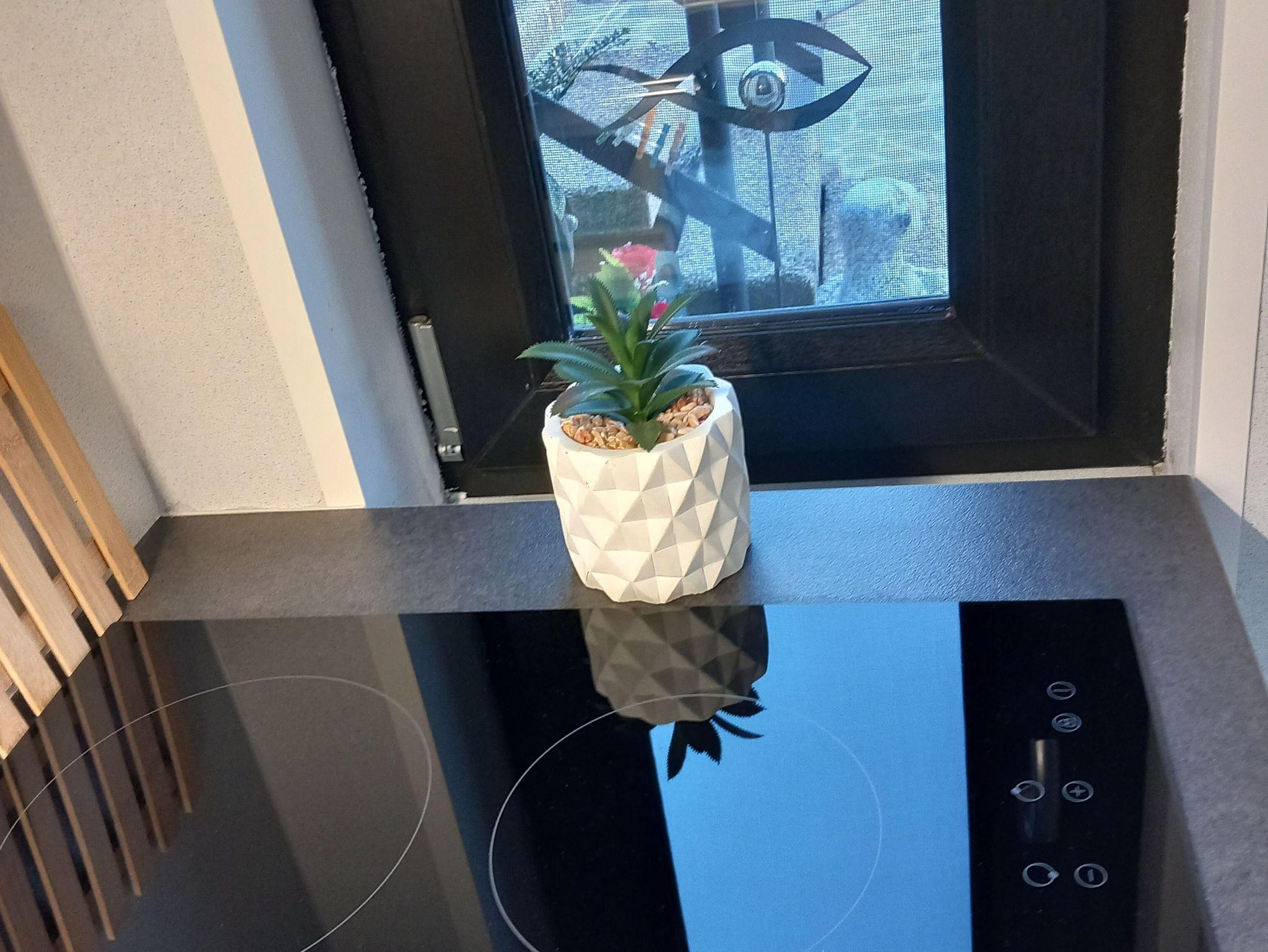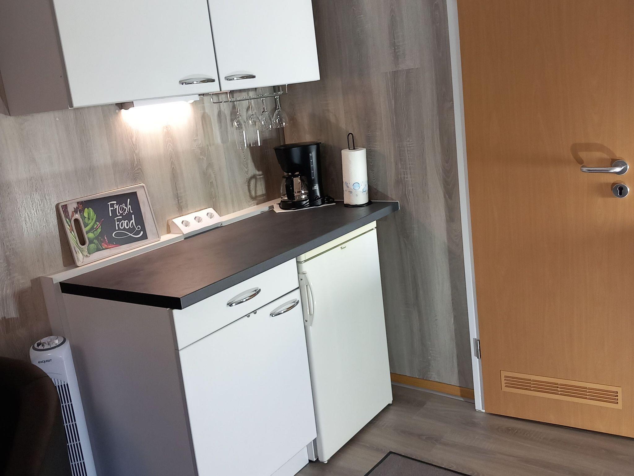 Ferienwohnung mit separatem Eingang ebenerdig auf eigenem Grundstück. Schlafraum separat mit Ehebetten, 2 Nachttische und Fenster, separater Wohnraum (mit Fenster) mit neuer Einbauküche, doppeltes Cerankochfeld, Kühlschrank mit Gefriermöglichkeit, Spüle, Fenster im Küchen-und Wohnbereich),LED-TV 102cm diagonal, 2 Cocktailsessel (leder), moderner Esstisch, separate Dusche (neue-Duschsäule-Überkopfbrause und Handdusche mit modernem Waschtisch und WC mit Fenster, Ausstattung-Mikrowelle, Kaffeemaschine, Wasserkocher, Eierkocher, Toaster und kompl. Küchenzubehör-Töpfe-Gläser-Geschirr etc.