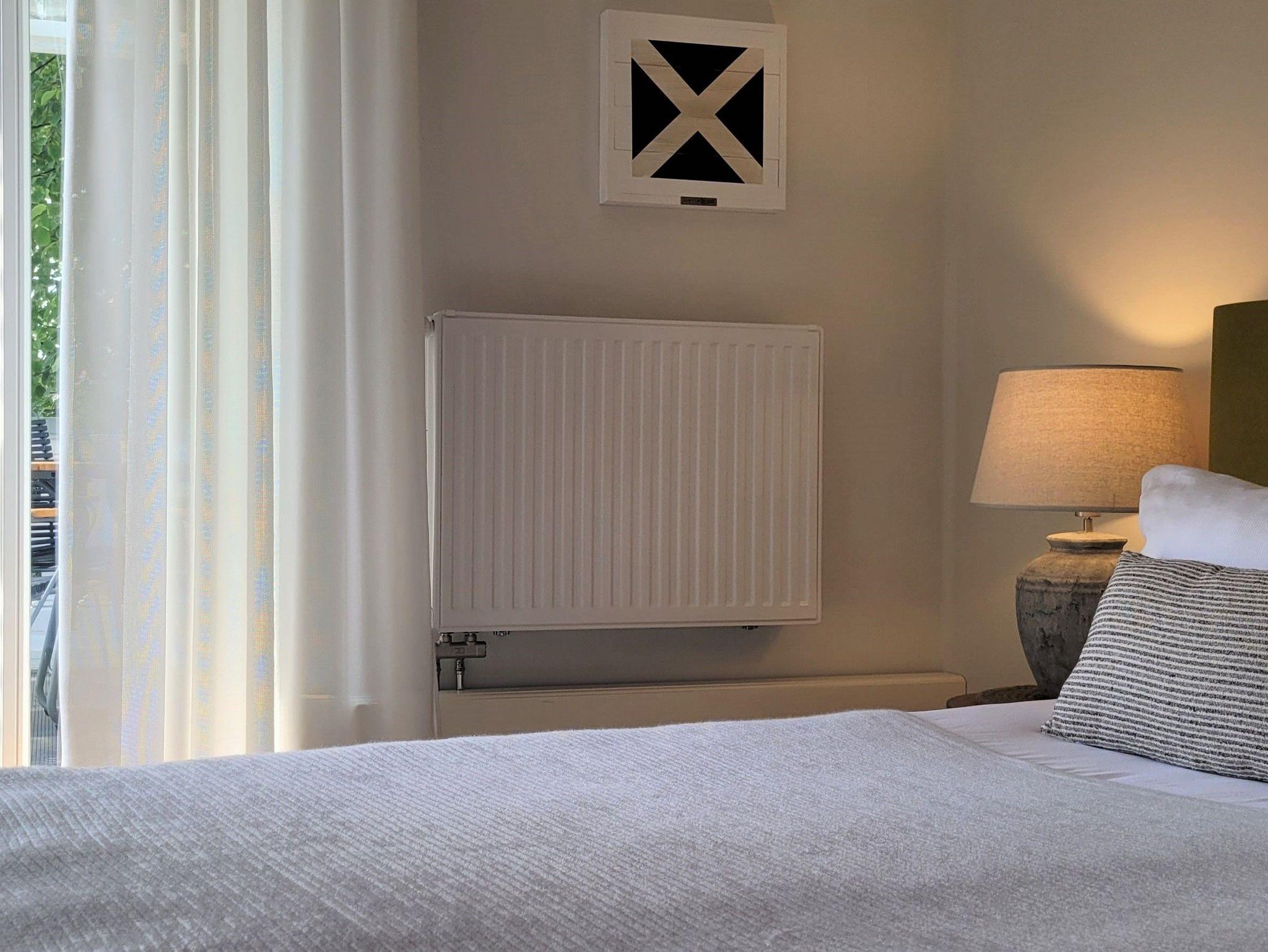 Das moderne Bad ist mit zwei Fenstern, einer Badewanne und einer Dusche ausgestattet. Hier haben Sie die Möglichkeit, sich nach einem anstrengenden Strandtag zurückzuziehen und in Ihrer eigenen Badewanne einen persönlichen Wellness-Tag zu verbringen.