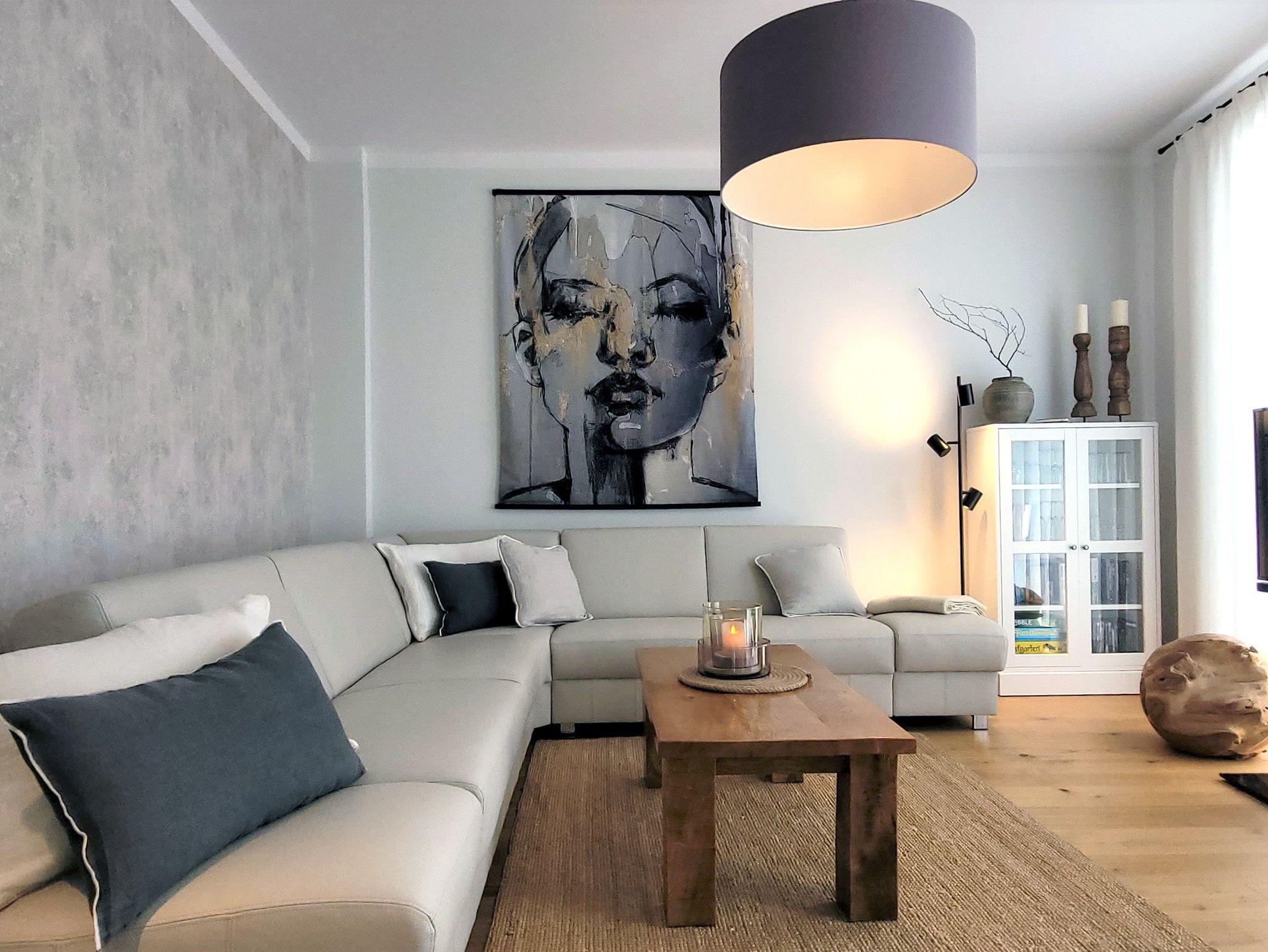 Wunderschöne helle traumhaft eingerichtete Wohnung mit 120 Quadratmetern Wohnfläche und 2 großen Dachterrassen. Eine davon ist 30 Quadratmeter groß ist und ein besonderes Highlight. Hier gibt es einen großen Essplatz und Liegen. Es gibt die Möglichkeit, die Sonne den ganzen Tag über zu genießen und entspannt zu bleiben. Durch den überdachten Bereich ist es auch an einem regnerischen Tag möglich, draußen zu sitzen und die frische Luft zu genießen.