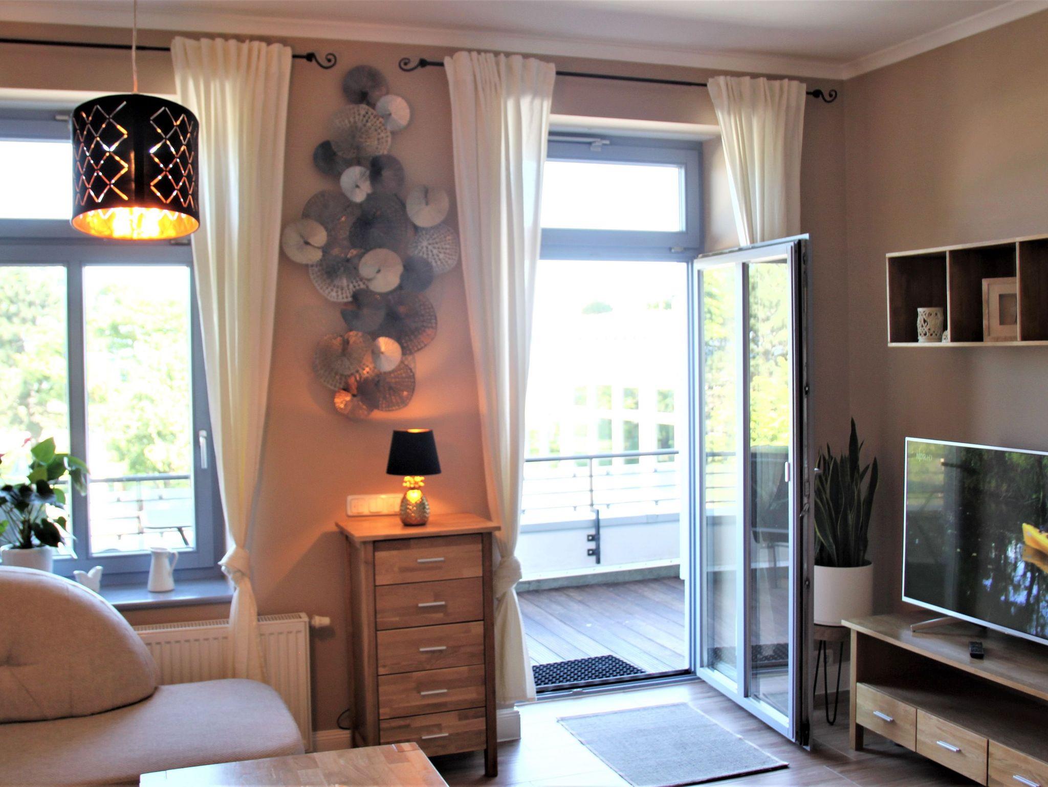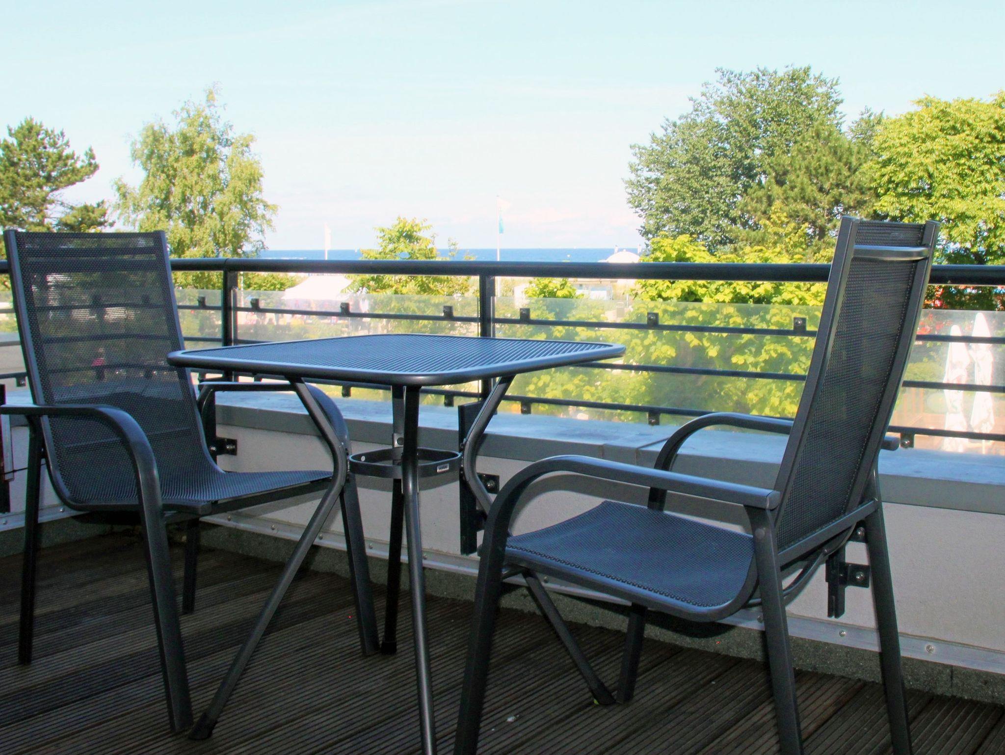 Moderne Ferienwohnung in Warnemünde mit Balkon und traumhaftem Meerblick, nur 20 Meter vom Strand entfernt.