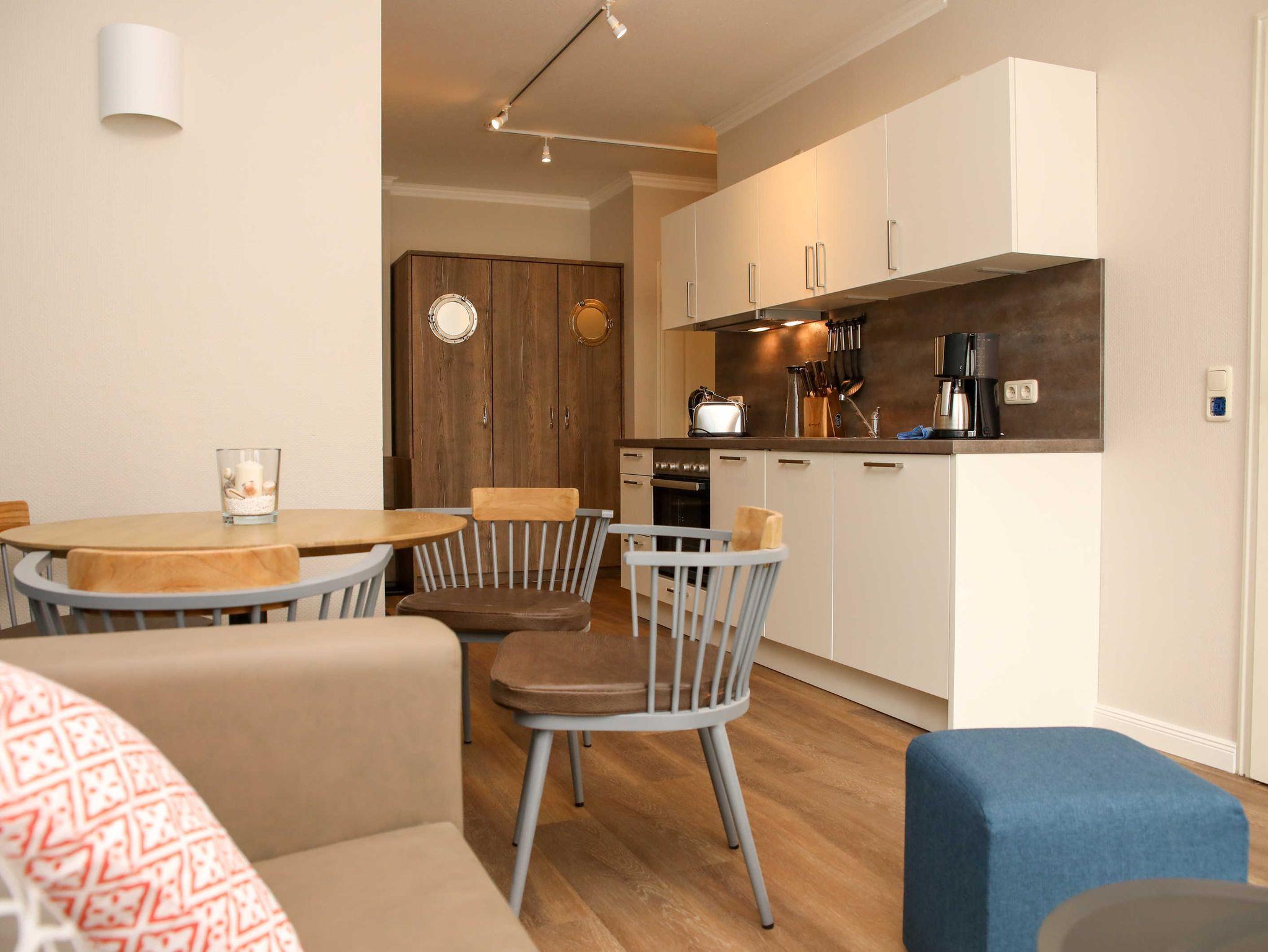 Da alle Ferienwohnungen gleichwertig und ähnlich ausgestattet sind, sehen Sie hier Beispielbilder für die Innenausstattung.