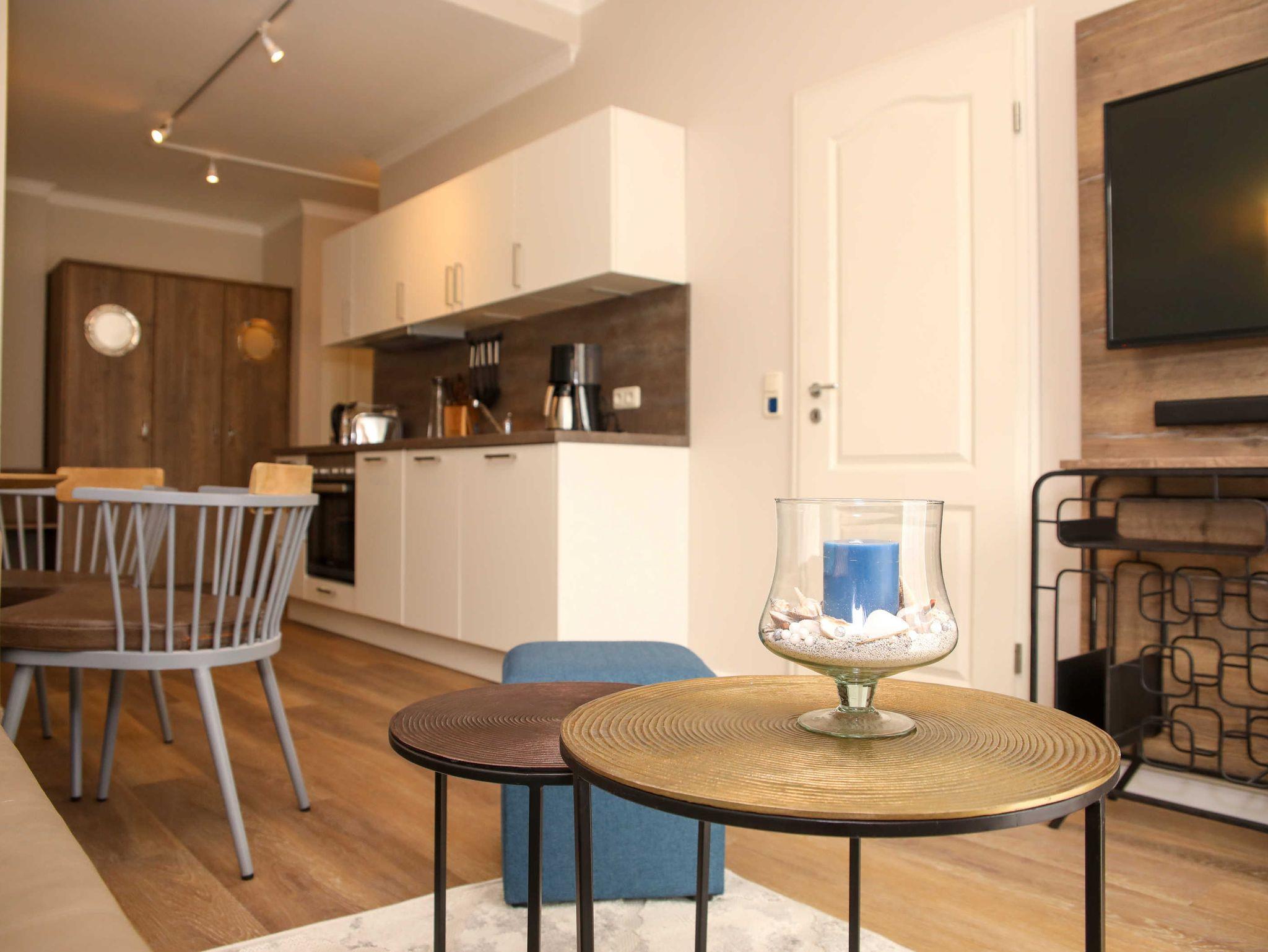 Moderne 2-Zimmer-Ferienwohnung in Warnemünde, nur 80 m vom Strand, mit Whirlpool und Balkon oder Terrasse.