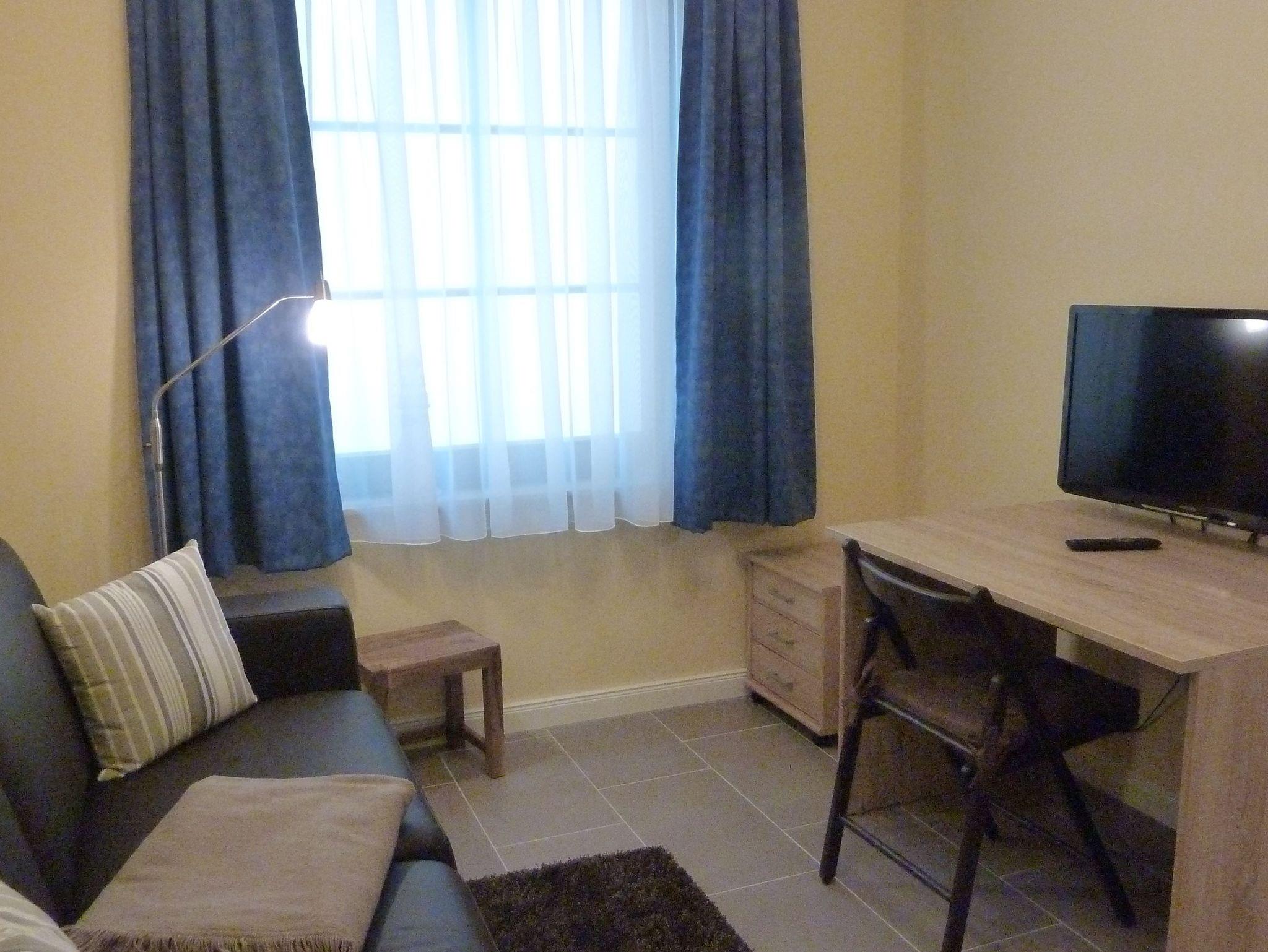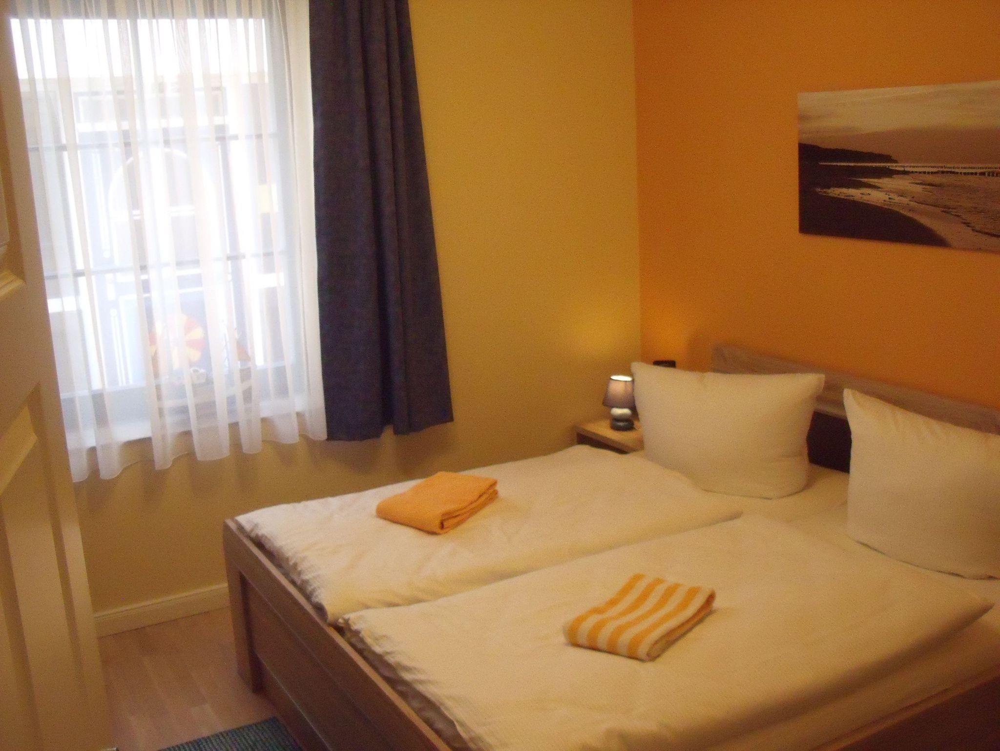 Die helle Ferienwohnung verfügt über ein schönes Schlafzimmer mit erhöhtem Doppelbett. Und ein weiteres kleines Schlafzimmer mit ausziehbarem Sofa auf dem zwei Personen schlafen können und Schreibtisch. WLAN-Anschluss sowie ein zweiter Fernseher sind vorhanden.
