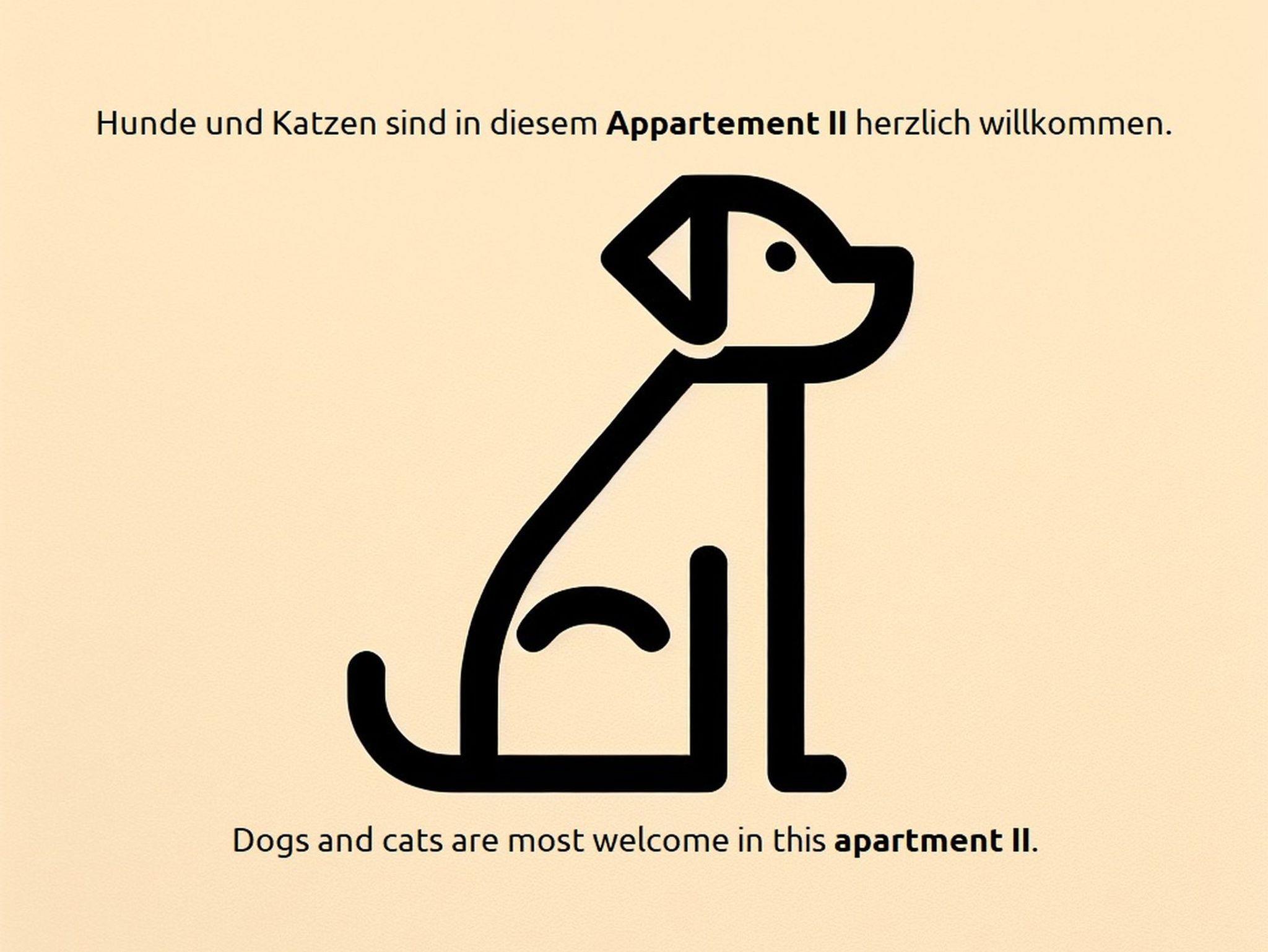 In diesem Appartement sind Hunde und Katzen herzlich willkommen. Bitte beachten Sie, dass maximal zwei Tiere untergebracht werden können. Bei sehr großen Hunden ist die Anzahl auf ein Tier begrenzt.