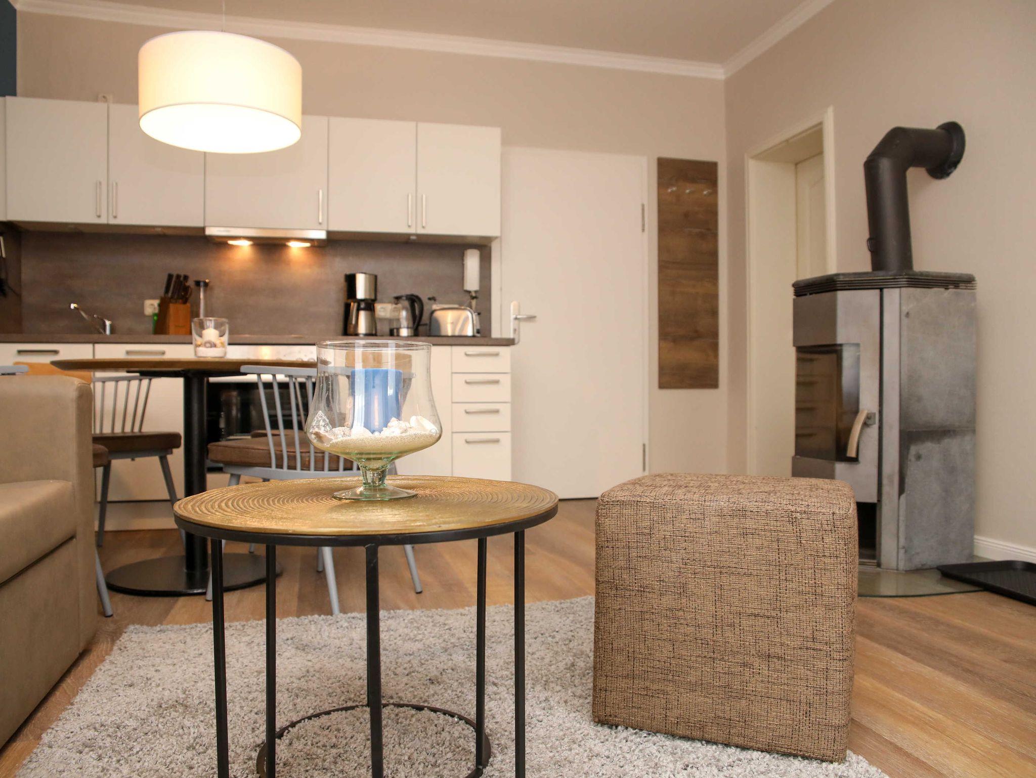 Die 2-Zimmer-Ferienwohnungen mit einer Größe von ca. 45-55 qm mit Balkon oder Terrasse bieten viel Platz für bis zu 4 Personen in separaten Wohn- und Schlafzimmern mit Doppelbett sowie ein neu gestaltetes Duschbad. Im Wohnzimmer befindet sich ein Kamin.