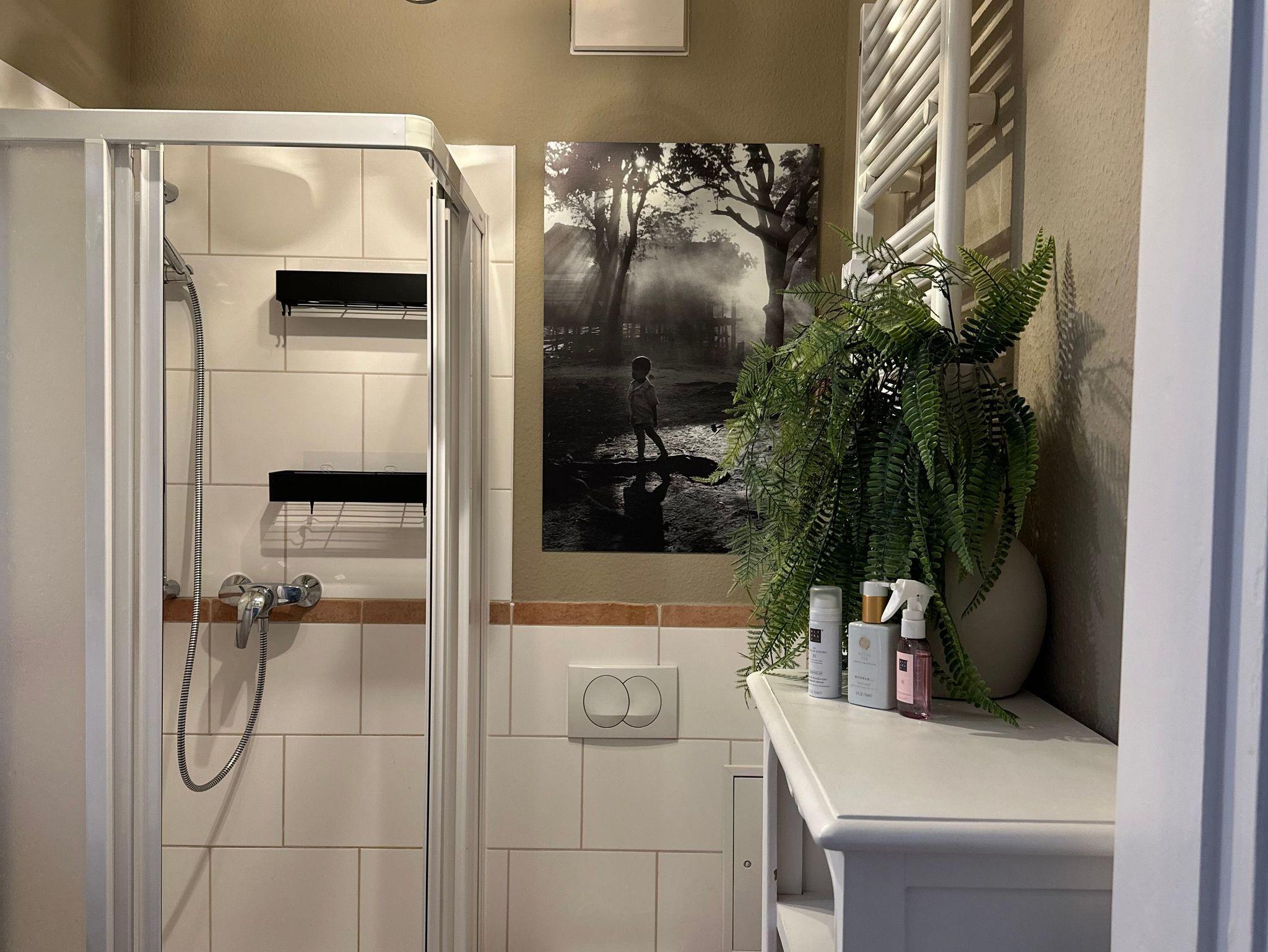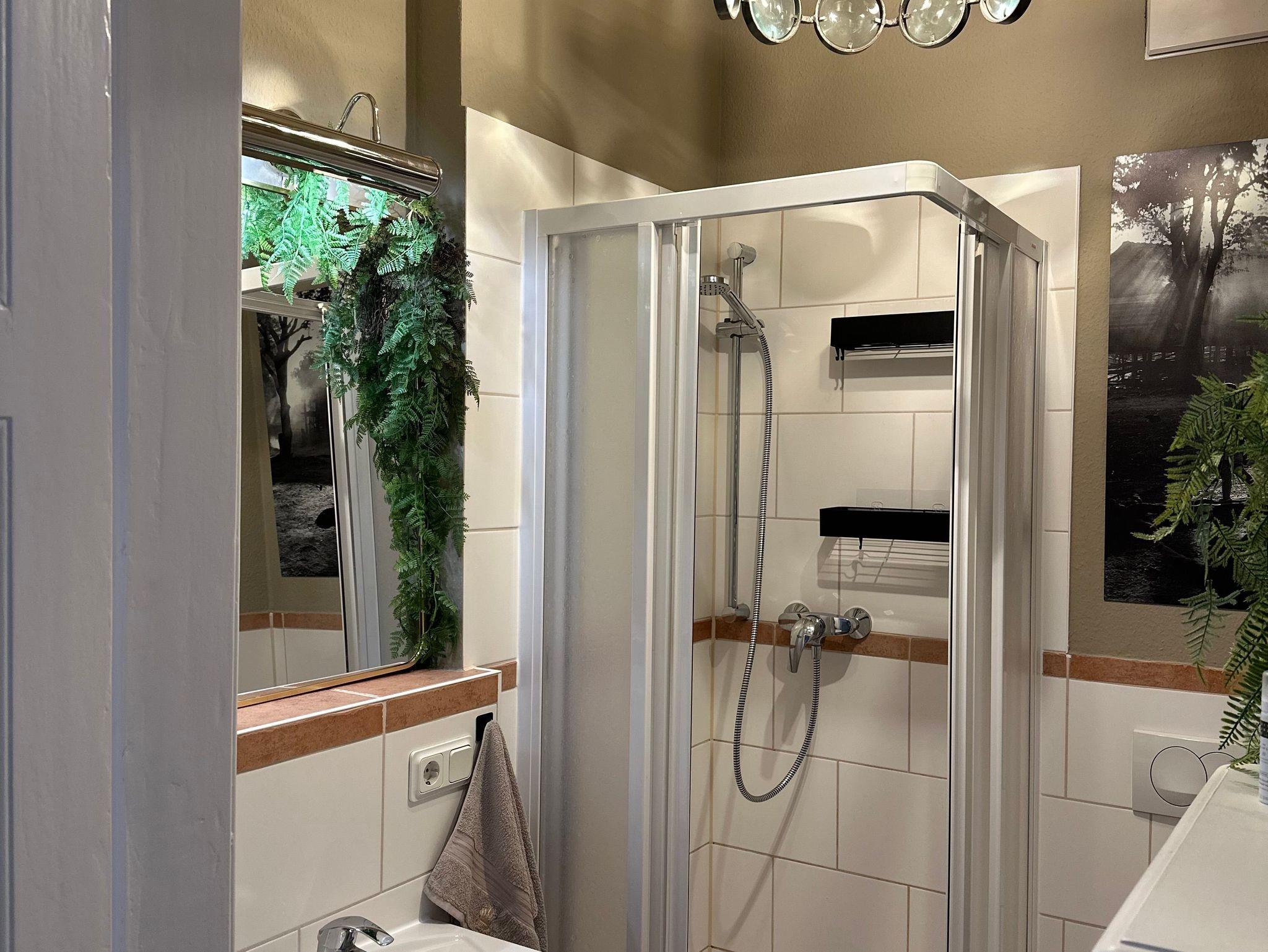Erfrischung: Ein modernes Badezimmer mit Dusche/WC.