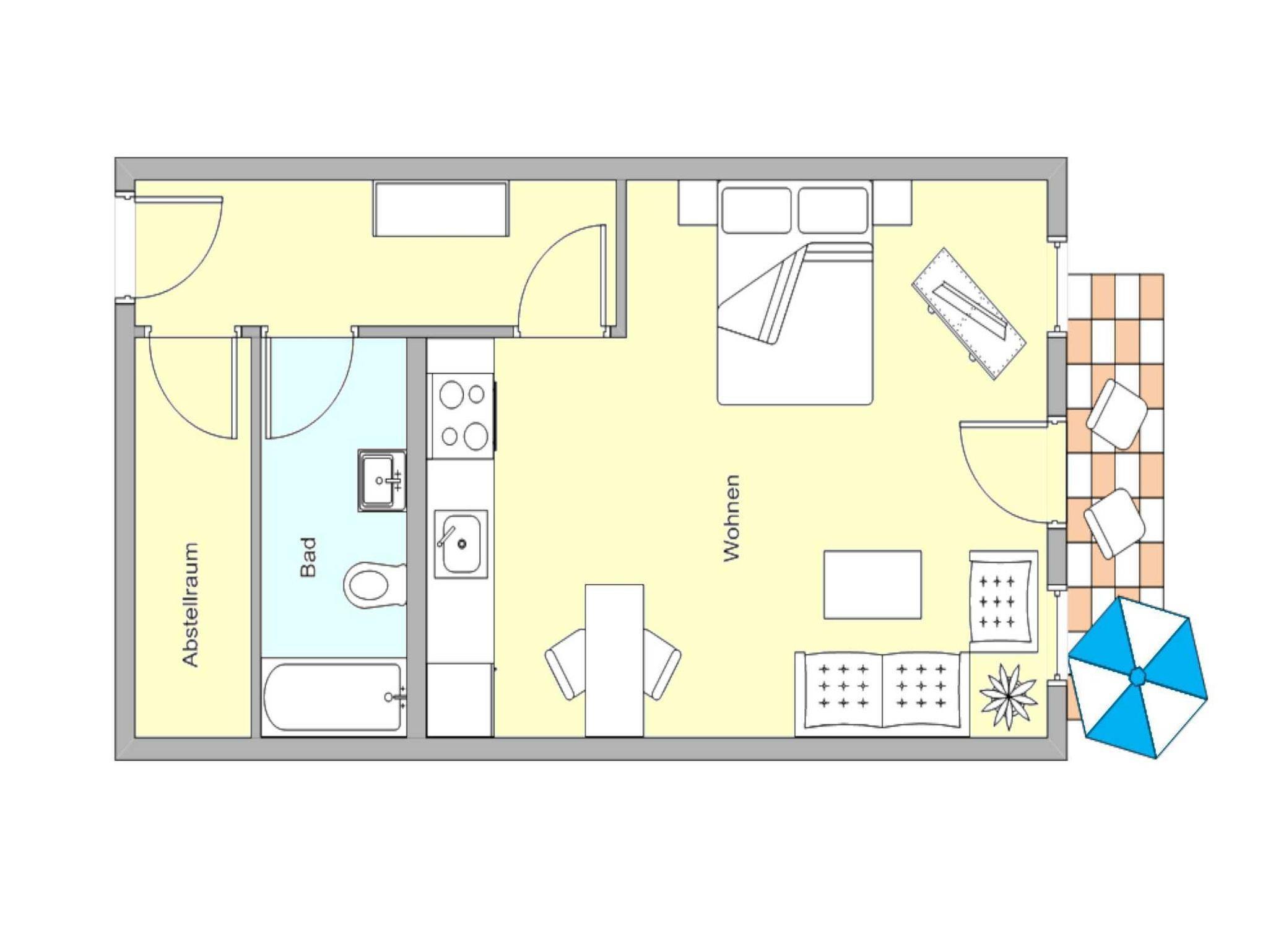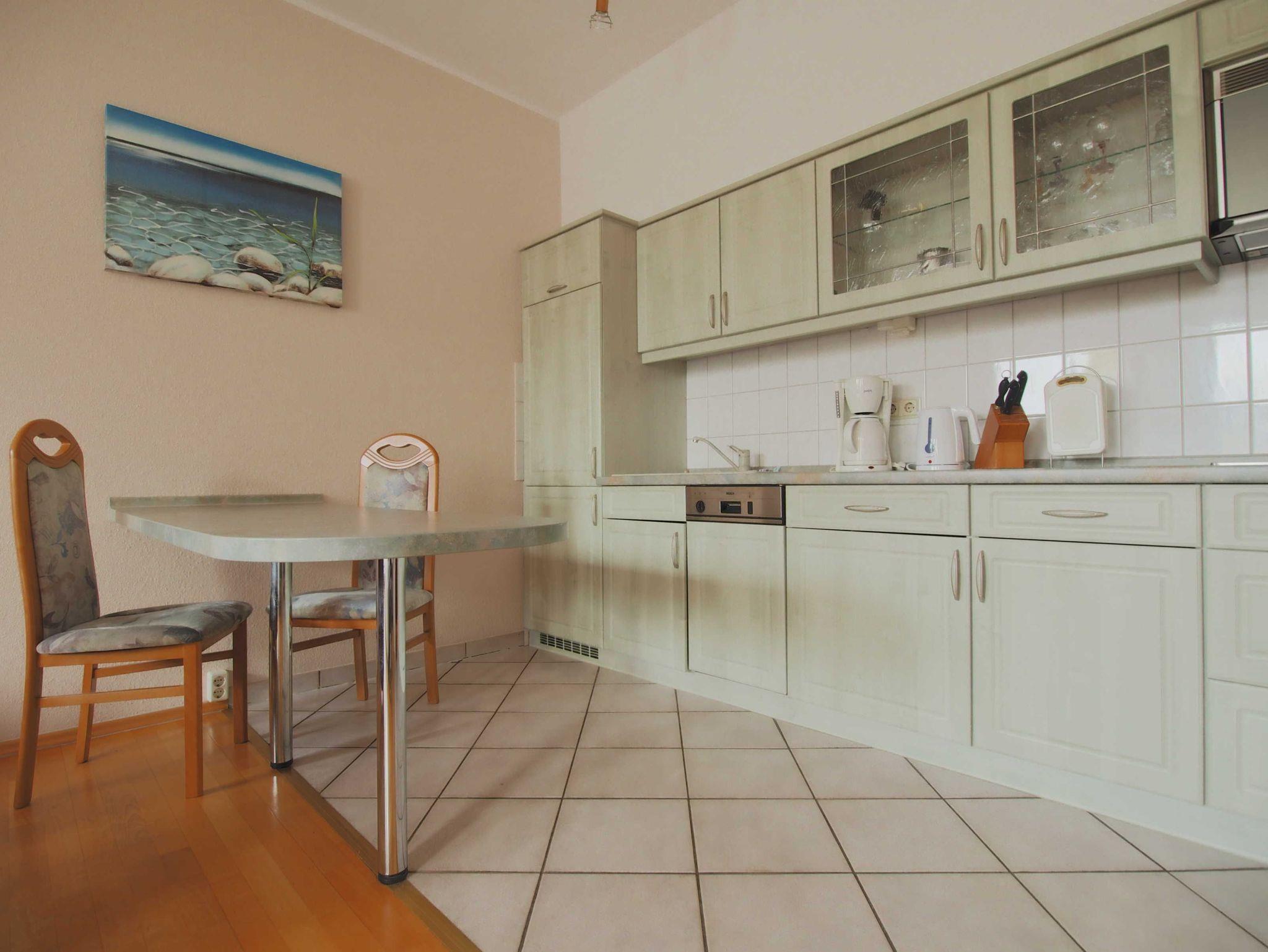 Die Ferienwohnung Möwenblick Fewo 7 in Warnemünde bietet auf 50 m² einen Balkon und liegt nur 500 m vom Strand entfernt.