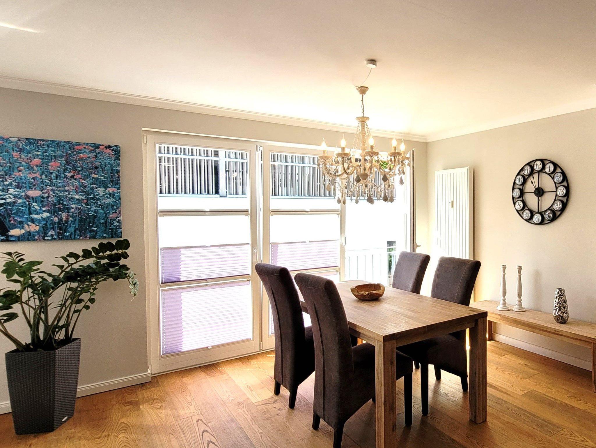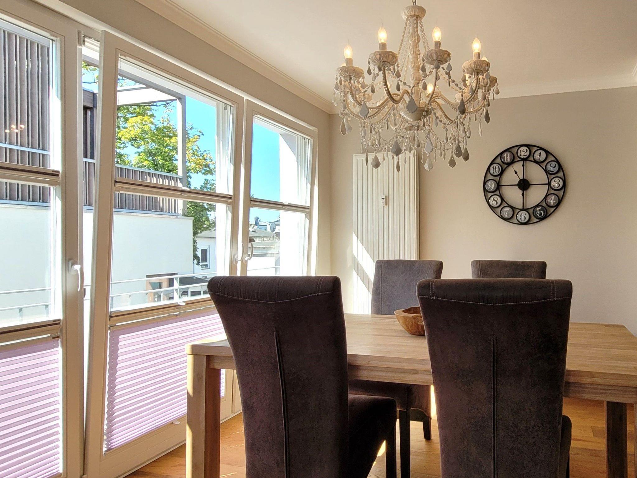 Moderne Ferienwohnung in Warnemünde, 350 m vom Strand, mit Balkon und zwei Etagen, ideal für Familien.