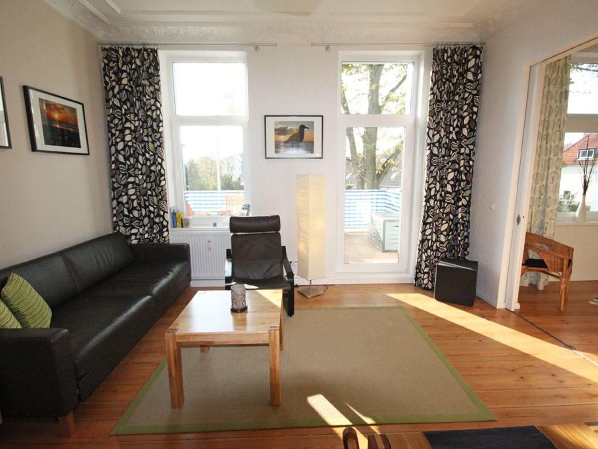 Sonnige tolle 2 Zimmer Wohnung für 4 Personen mit großem Balkon in der Altstadt von Warnemünde. Insgesamt gibt es 5 Ferienwohnungen in dem schönen alten Mehrfamilienhaus.