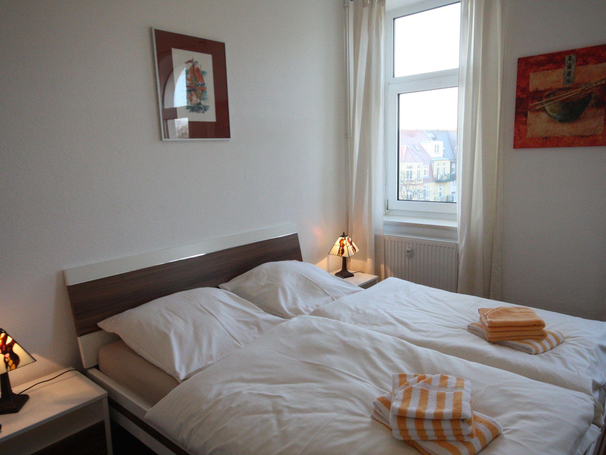 Helle Ferienwohnung für 2 Personen plus 2 Personen zusätzlich auf Anfrage (Schlafsofa). Die Ferienwohnung befindet sich in der 3. Etage einer alten Seebadvilla in Warnemünde und der lange weiße Ostseestrand ist nur 200 Meter entfernt.