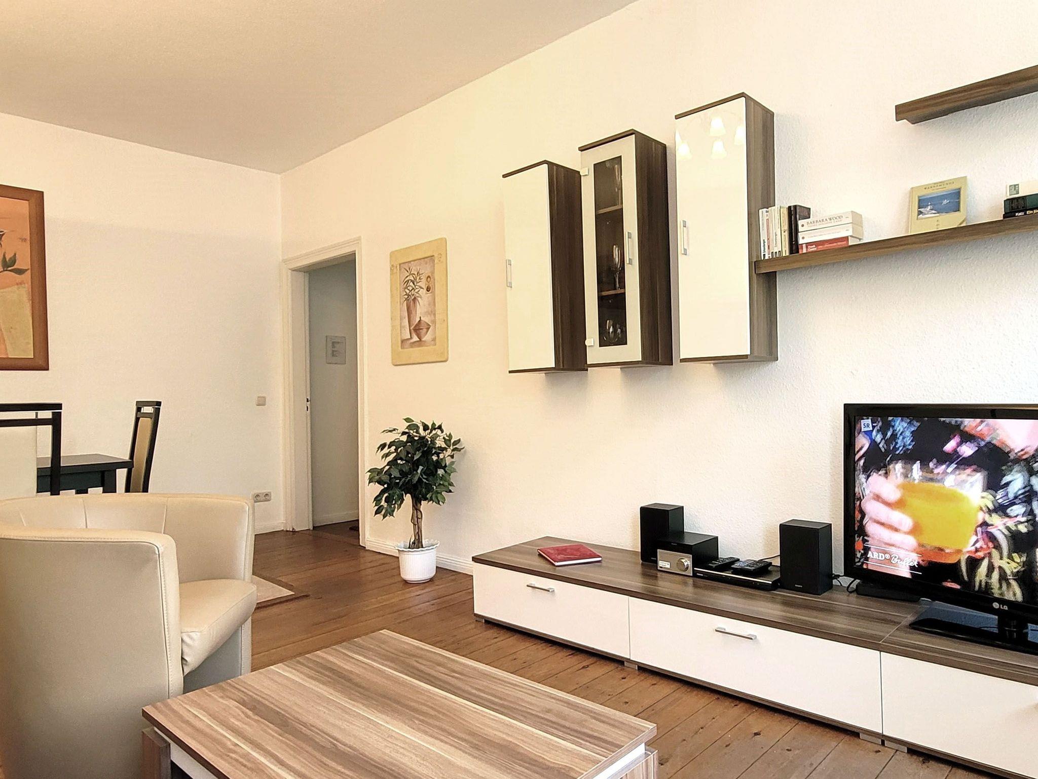 Helle Ferienwohnung in Warnemünde, nur 200 m vom Ostseestrand entfernt, mit moderner Ausstattung und gemütlicher Atmosphäre.