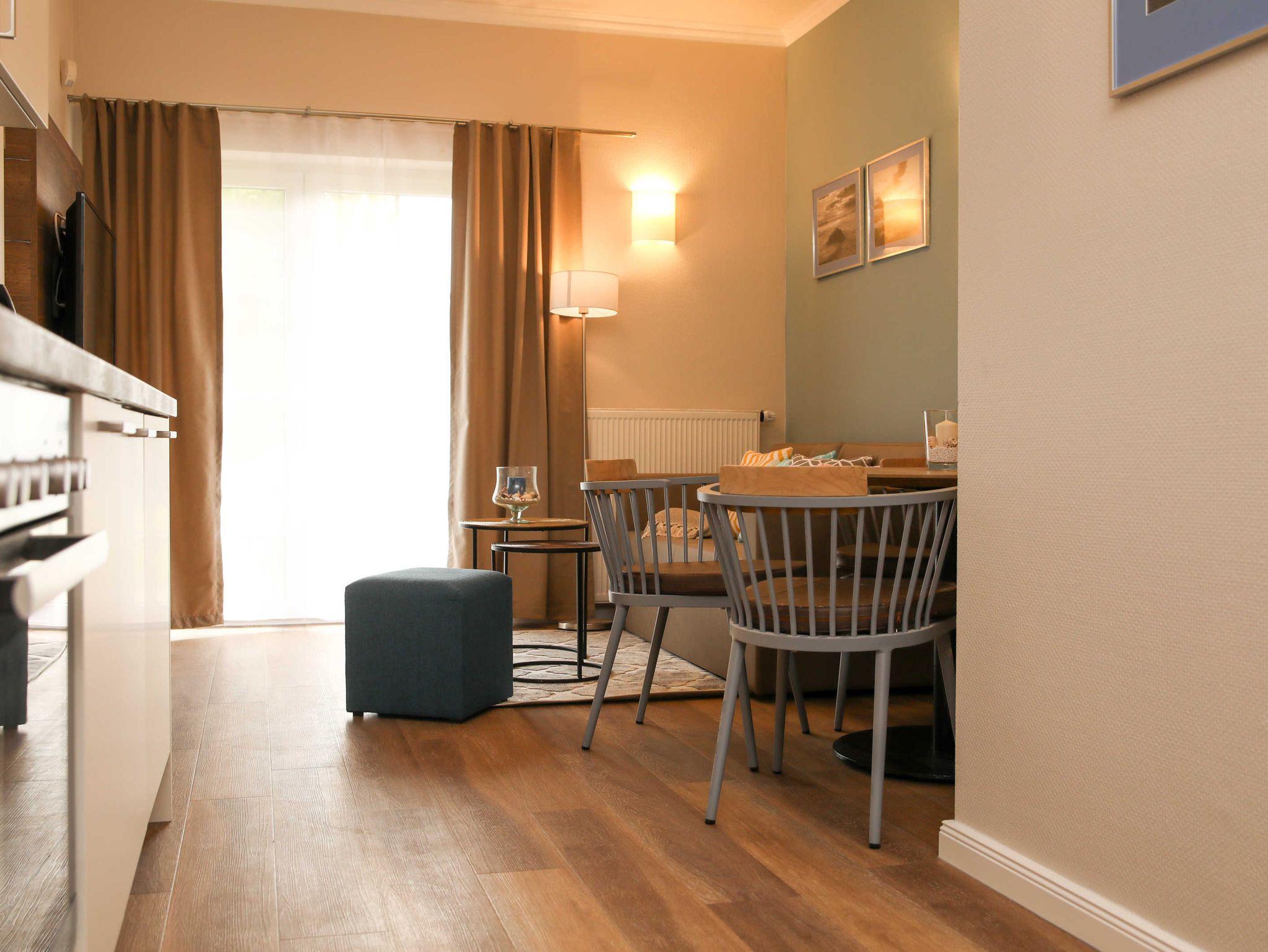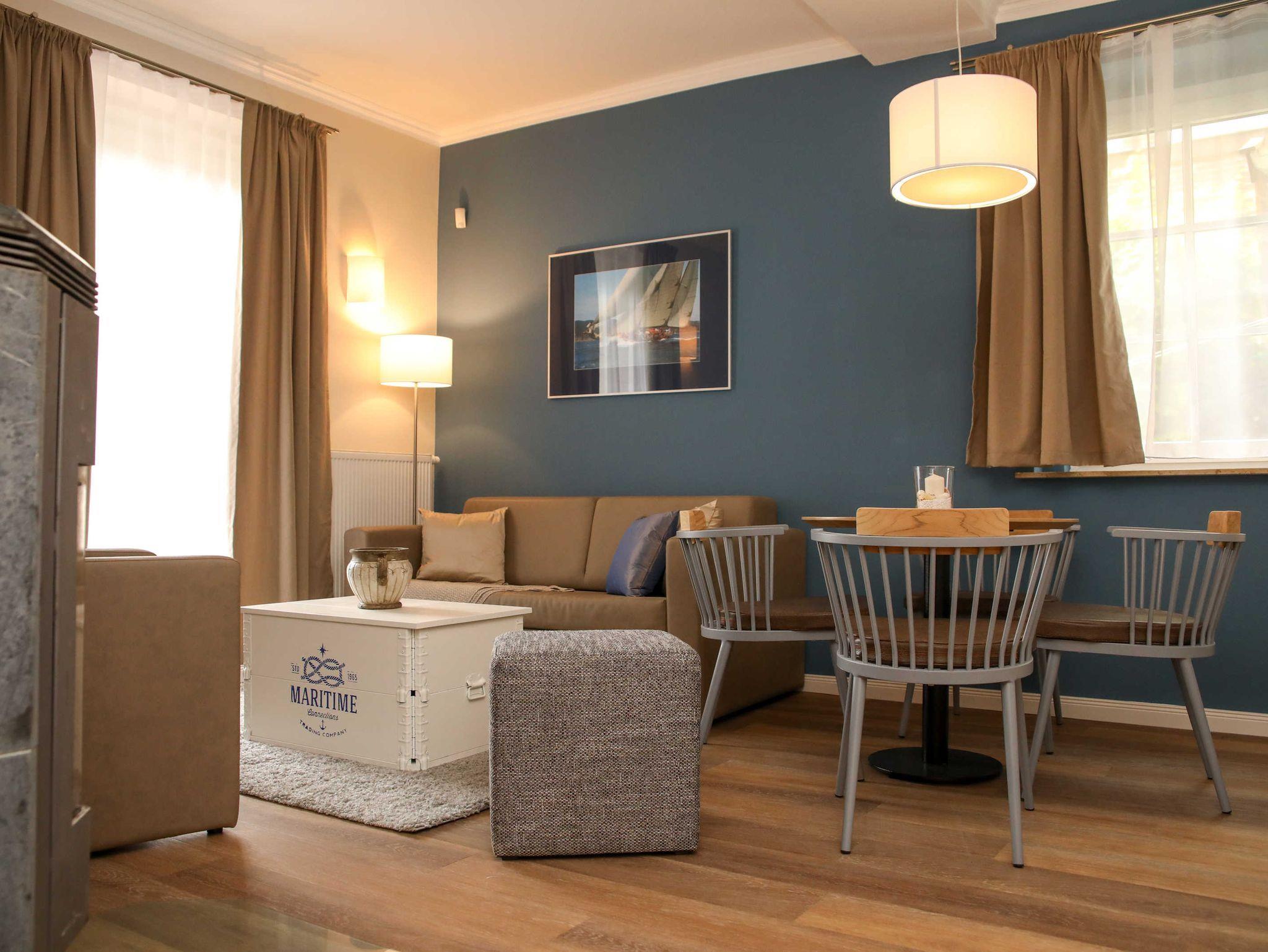 Komfortable Ferienwohnung in Warnemünde nahe Strand mit Whirlpool, Kamin und modernem Ambiente.