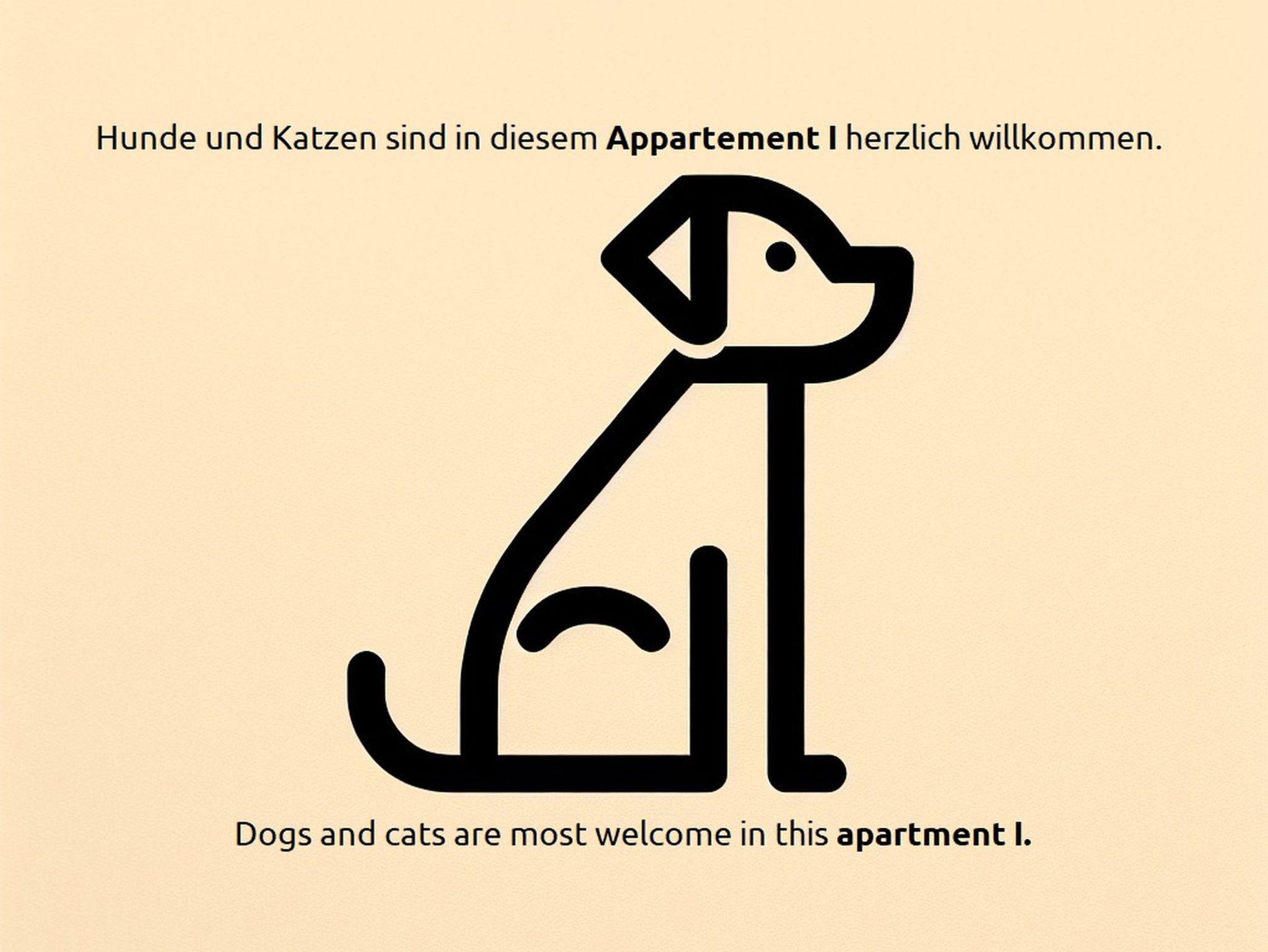 In diesem Appartement sind Hunde und Katzen herzlich willkommen. Bitte beachten Sie, dass maximal zwei Tiere untergebracht werden können. Bei sehr großen Hunden ist die Anzahl auf ein Tier begrenzt.