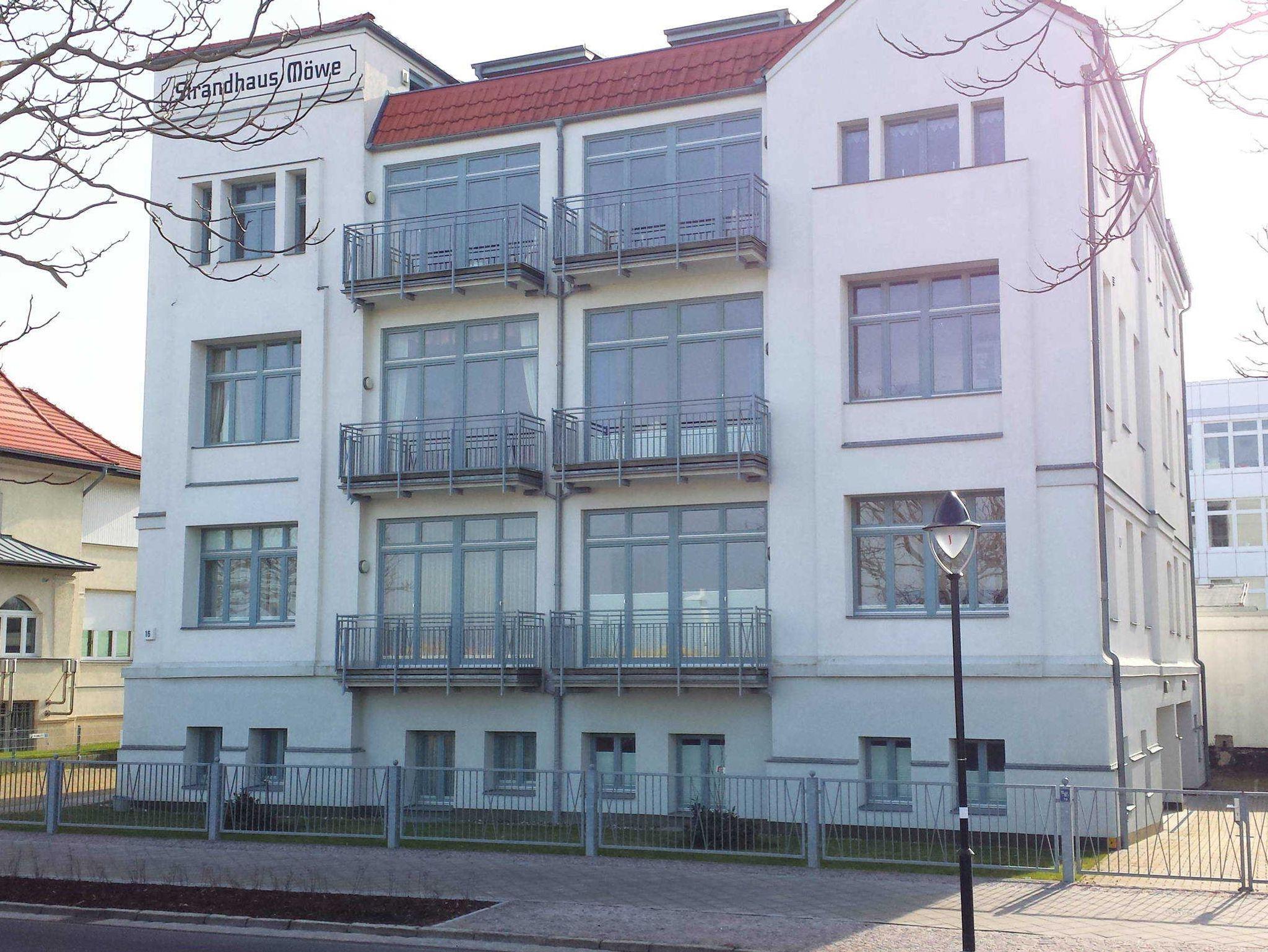 Exklusive Ferienwohnung Neptun direkt an der Seepromenade von Warnemünde mit seitlichem Meerblick und sonnigem Südbalkon.