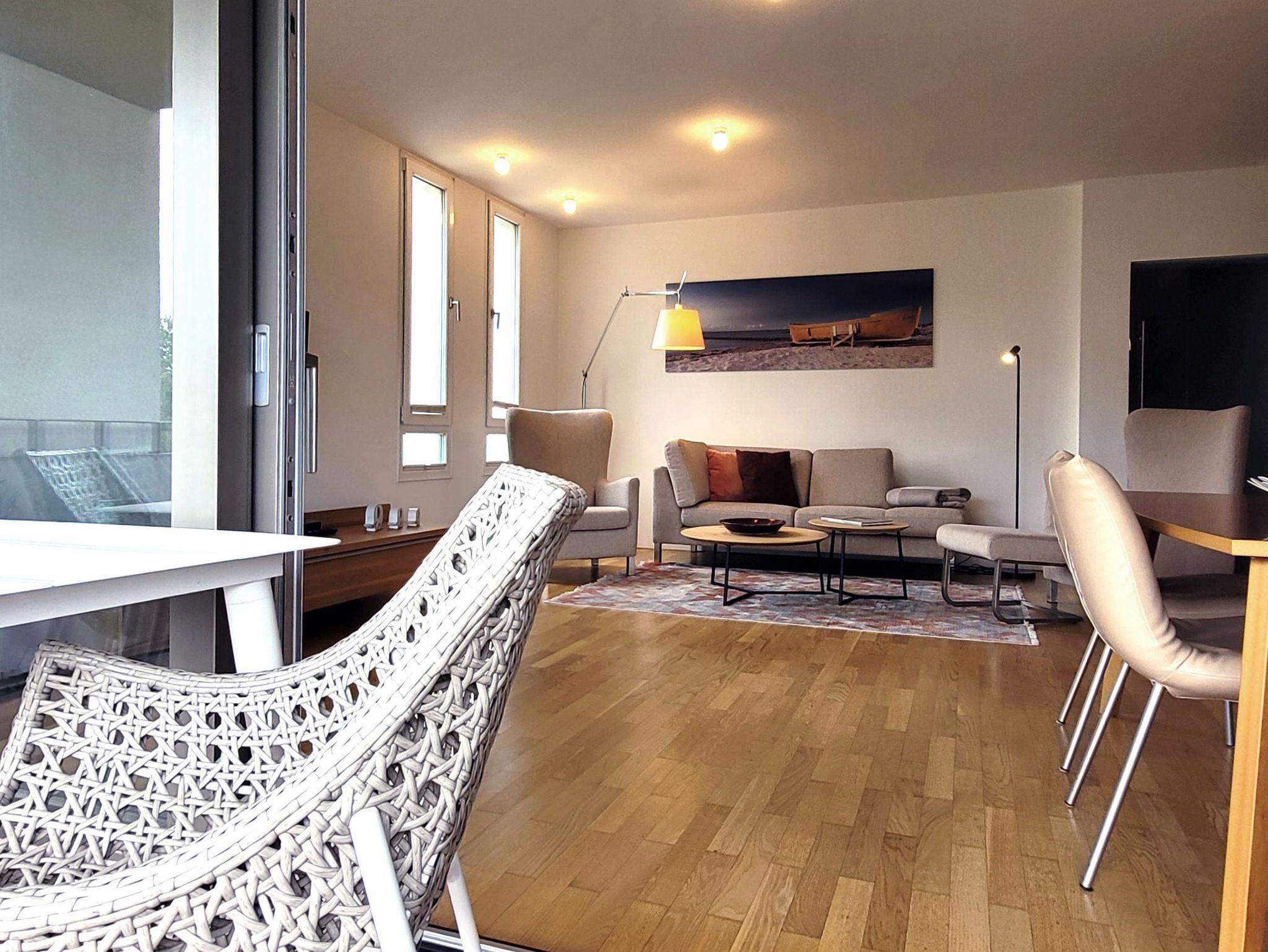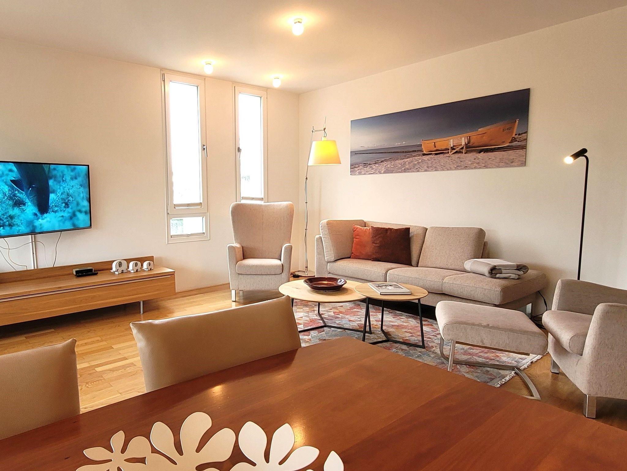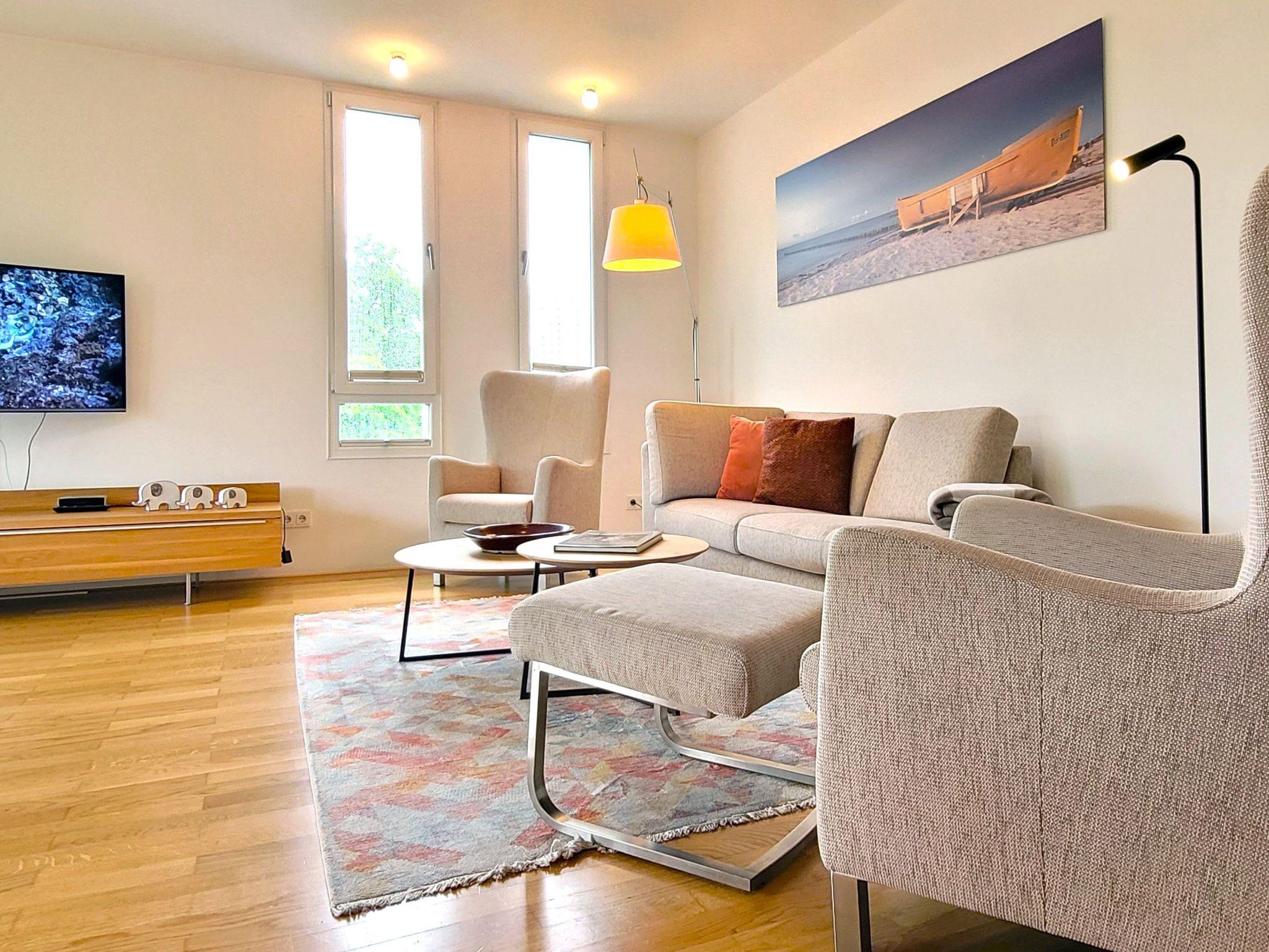 Modern einerichtete Luxus-Ferienwohnung für 2 Personen mit 2 Bädern. Die Wohnung befindet sich im 3. Stockwerk, ein Fahrstuhl ist vorhanden. Tiefgaragenstellplatz optional gegen Gebühr.