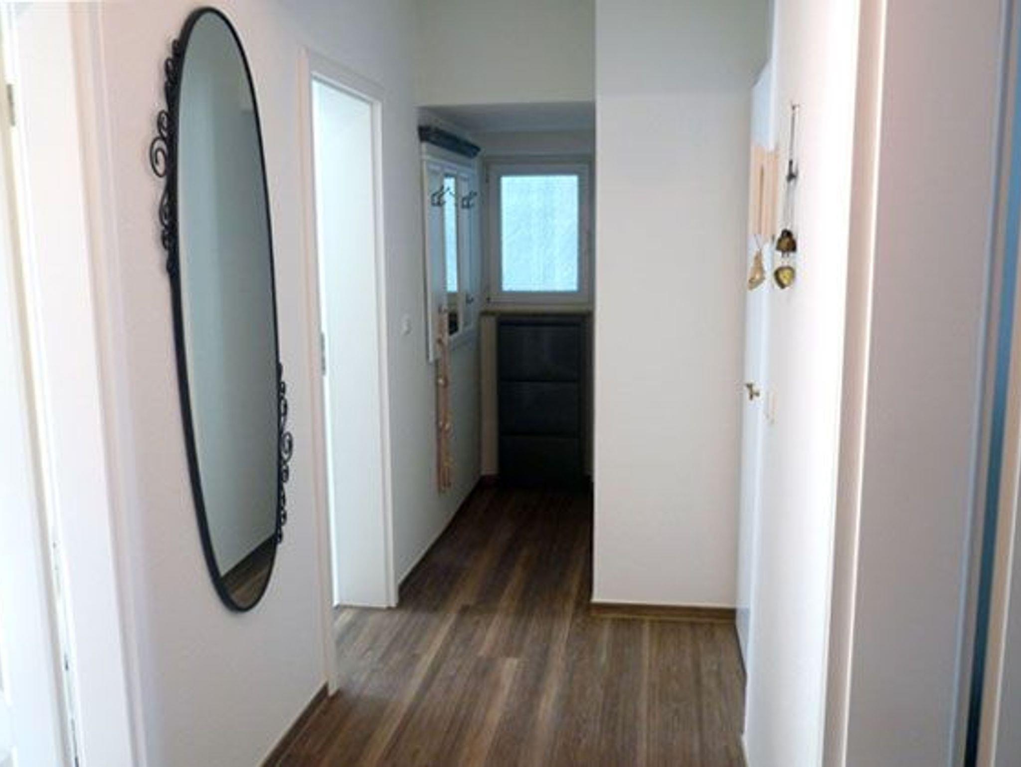 Die zeitgemäße Küche öffnet sich zum Wohnbereich hinn. Frühstücken Sie in der gemütlichen Essecke. Das Schlafzimmer verfügt über ein Doppelbett, während das helle Bad eine Badewanne und eine Dusche bietet. Alle Zimmer können vom Flur aus betreten werden.