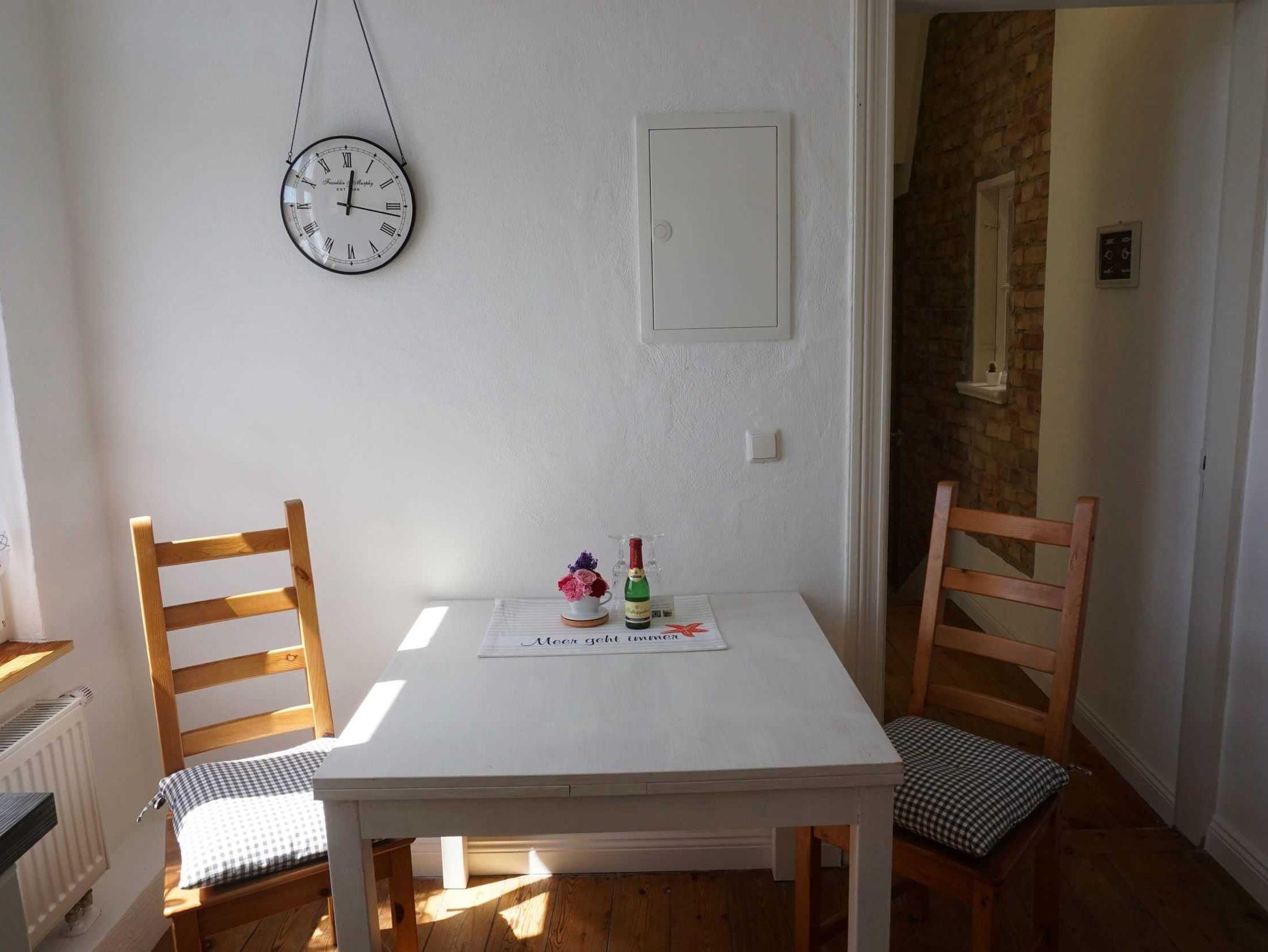 Die familienfreundliche Ferienwohnung Madlen überzeugt mit ihrer stilvollen Altbauatmosphäre und bietet Ihnen auf ca. 50m² Platz für 3 Personen und ein Baby. Über die im Flur gelegenen 5 Treppenstufen erreichen Sie das moderne Badezimmer und den hinteren Teil der Wohnung, in dem sich die zum Verweilen einladende Küche mit Durchgang zum Wohnbereich sowie das separate Schlafzimmer befinden.