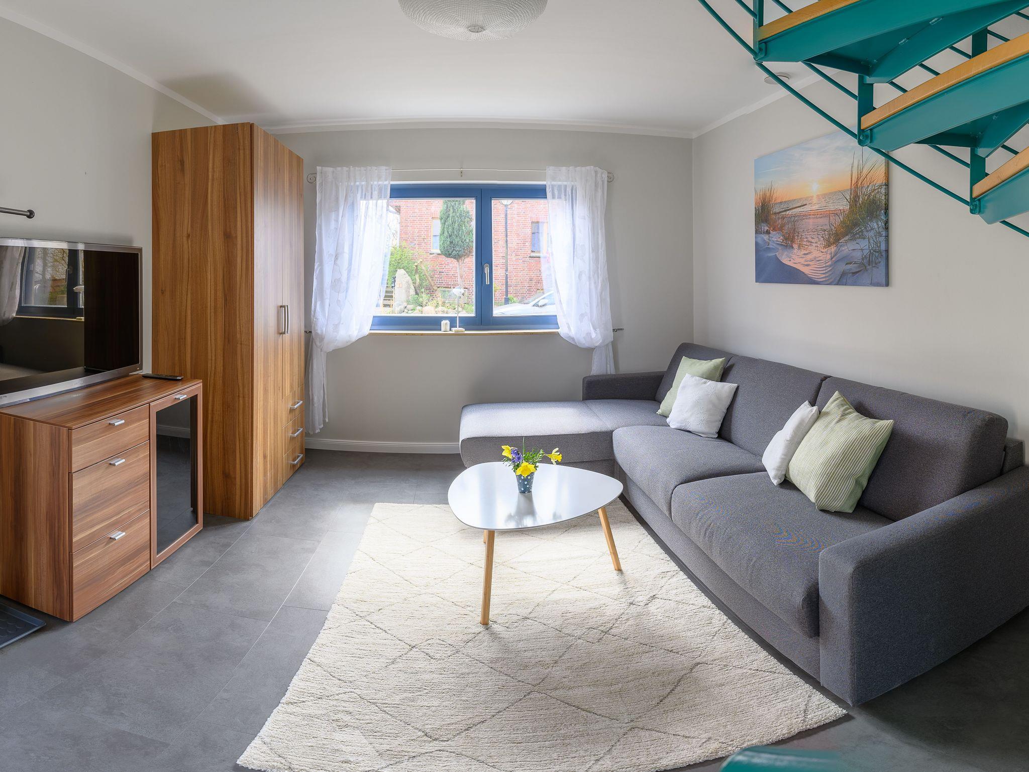 Moderne Maisonette-Ferienwohnung in Warnemünde, 200 m zum Strand, mit kostenfreiem Parkplatz und WLAN.