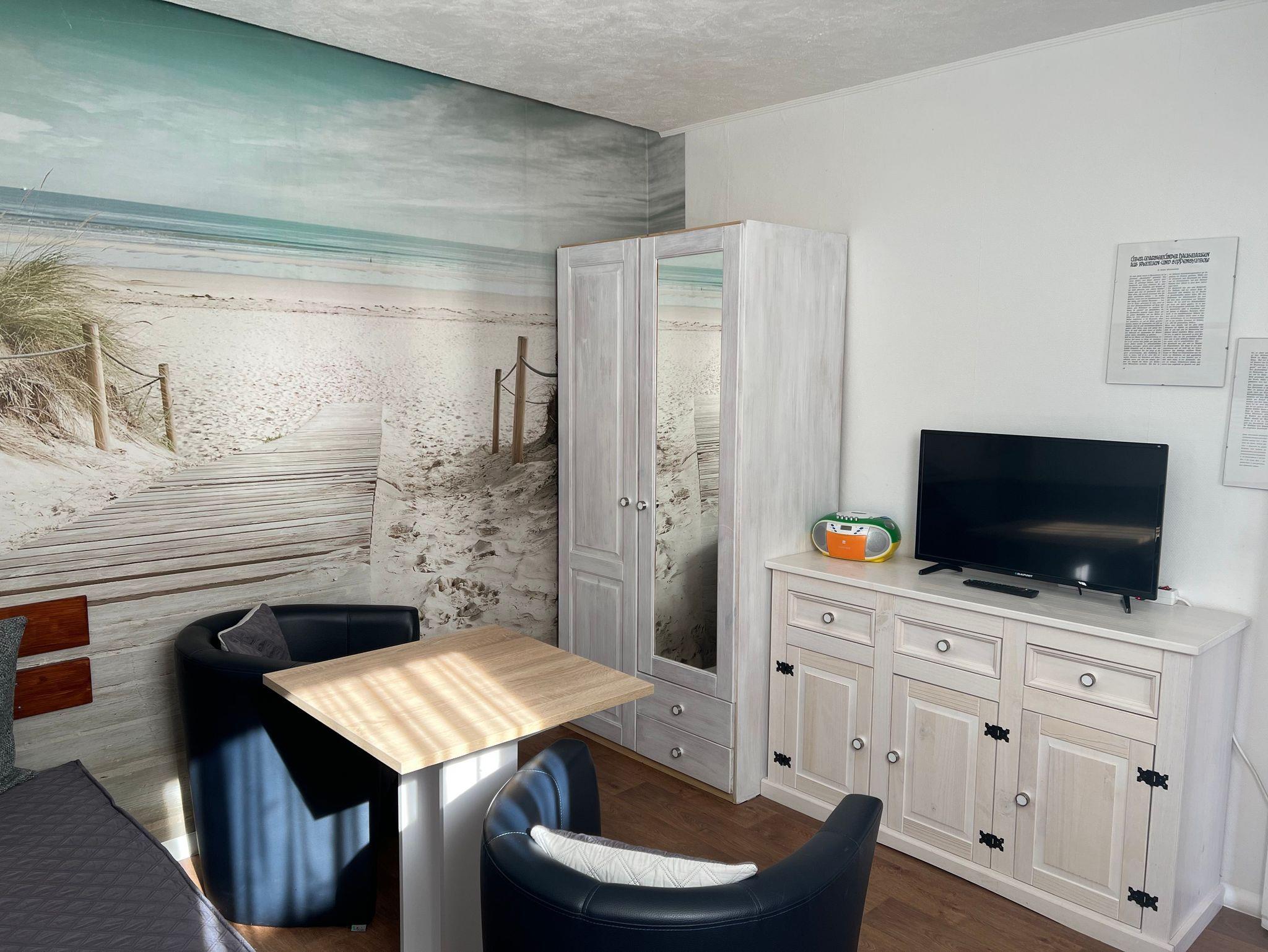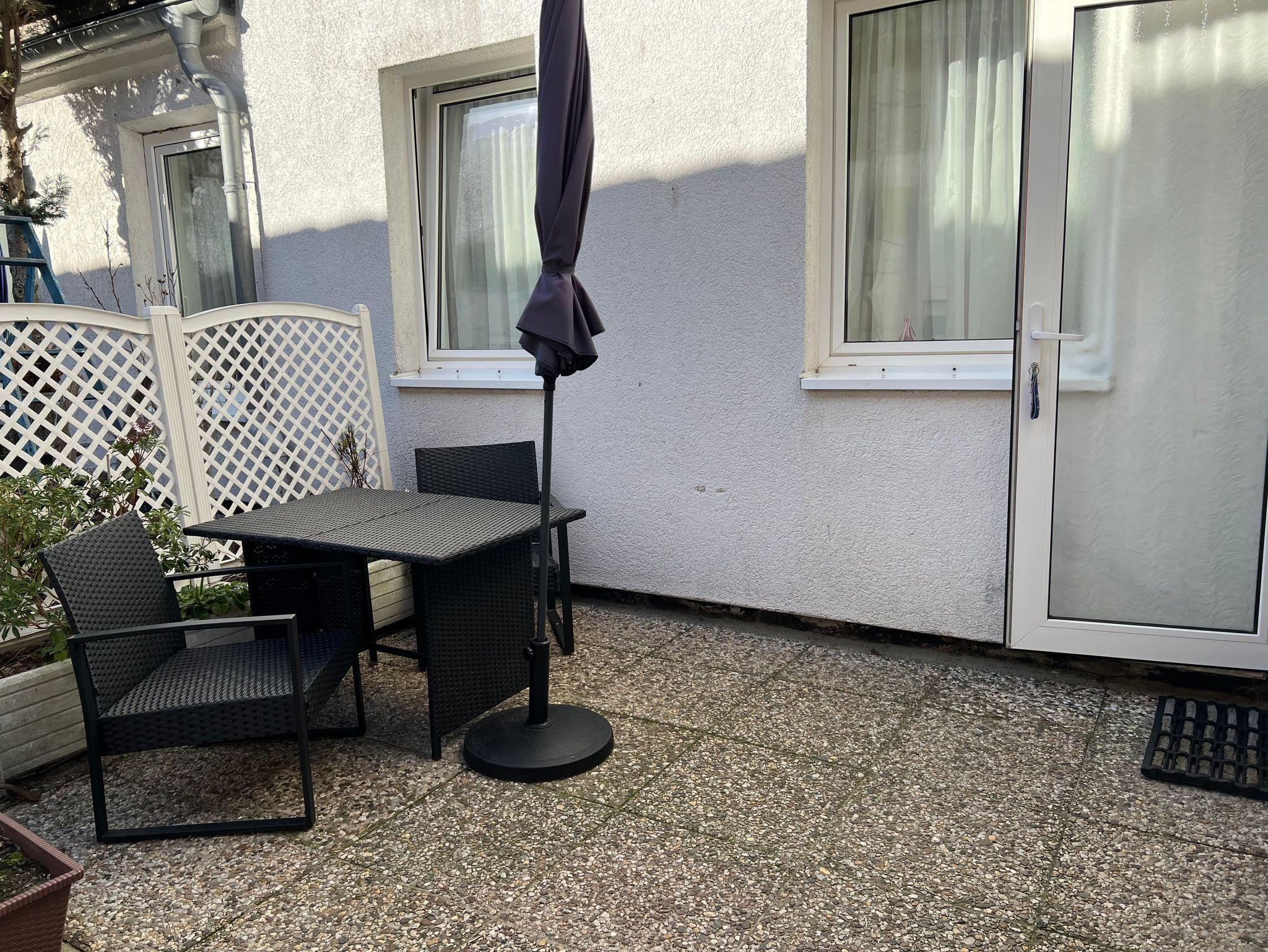 Diese Ferienwohnung ist eine 2 -Raum-Wohnung, die über ein extra Schlafzimmer verfügt. Eine dritte Person kann auf der Schlafcouch im Wohnzimmer übernachten. Ferienwohnung bietet genug Stauraum für alle Urlaubssachen sowie Kabel-TV und Radio. Die Küche mit Tisch und Stühlen ist komplett ausgestattet, das Bad verfügt über Dusche/WC. Zur Wohnung gehört auch eine 12qm große Terrasse im schönen und gemütlichen Innenhof mit Tisch und Stühlen.