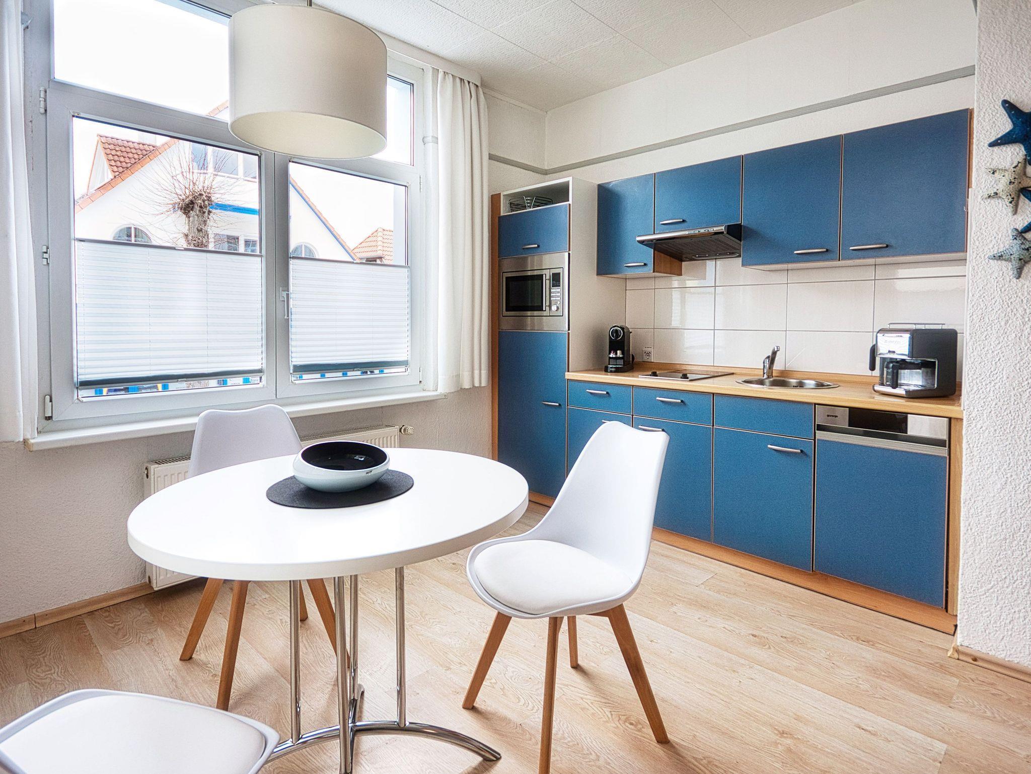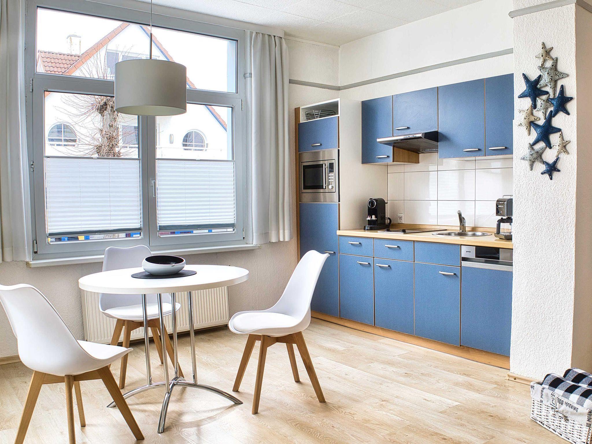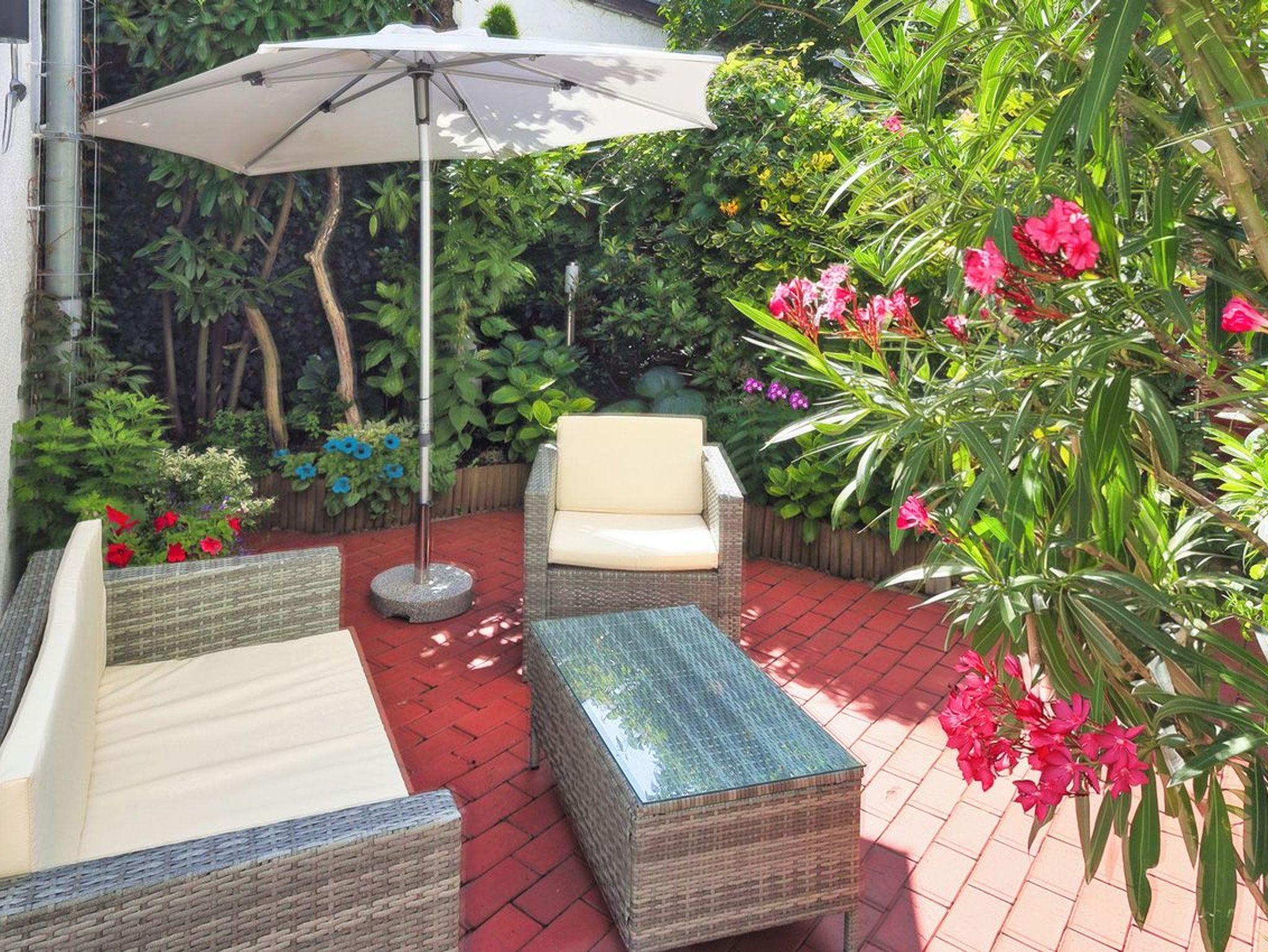Moderne Ferienwohnung in Rostock-Warnemünde mit Terrasse, Garten und voll ausgestatteter Küche für einen entspannten Urlaub.