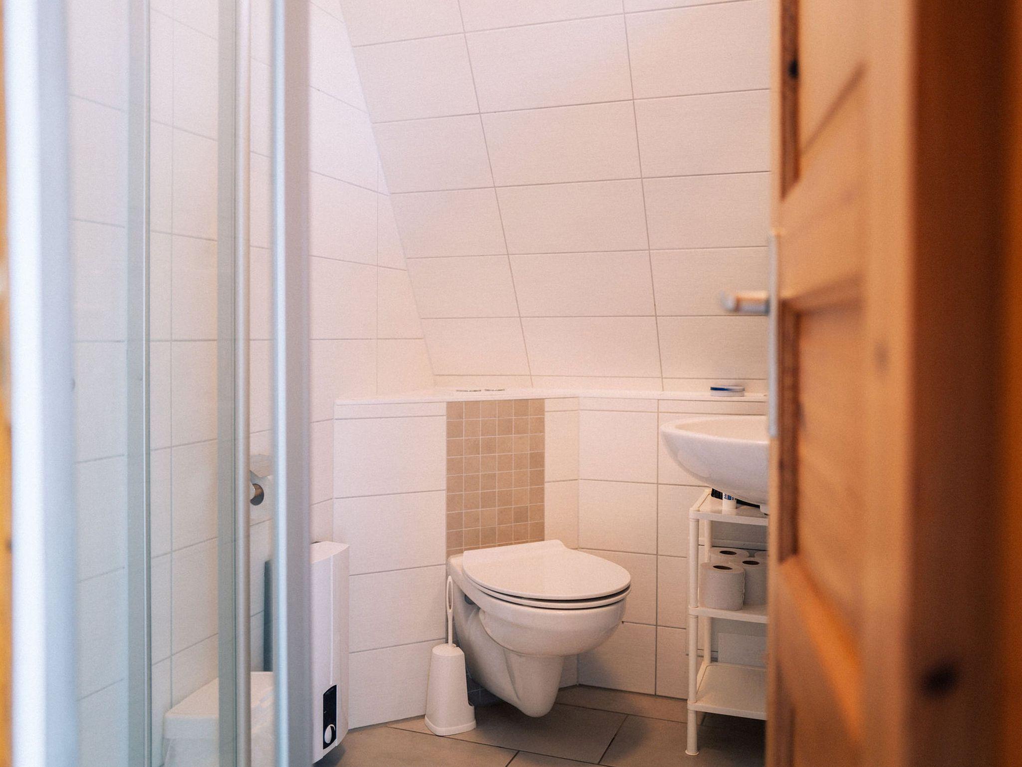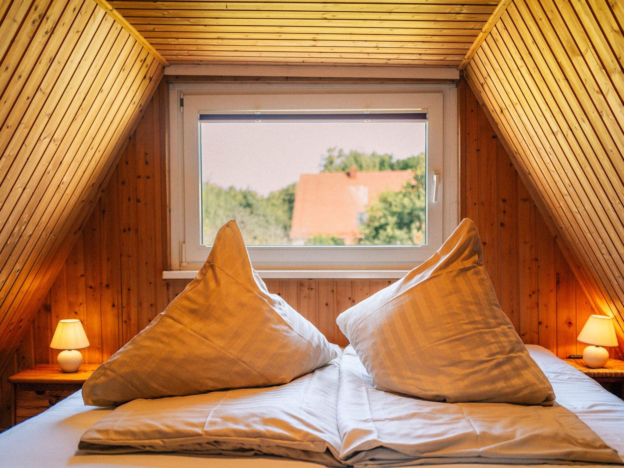 Eine steile Raumspartreppe führt zu den zwei Schlafräumen - ein Schlafzimmer mit Doppelbett, ein Schlafzimmer mit zwei Einzelbetten. Die Bettwäsche ist inklusive. Handtücher bitte mitbringen!