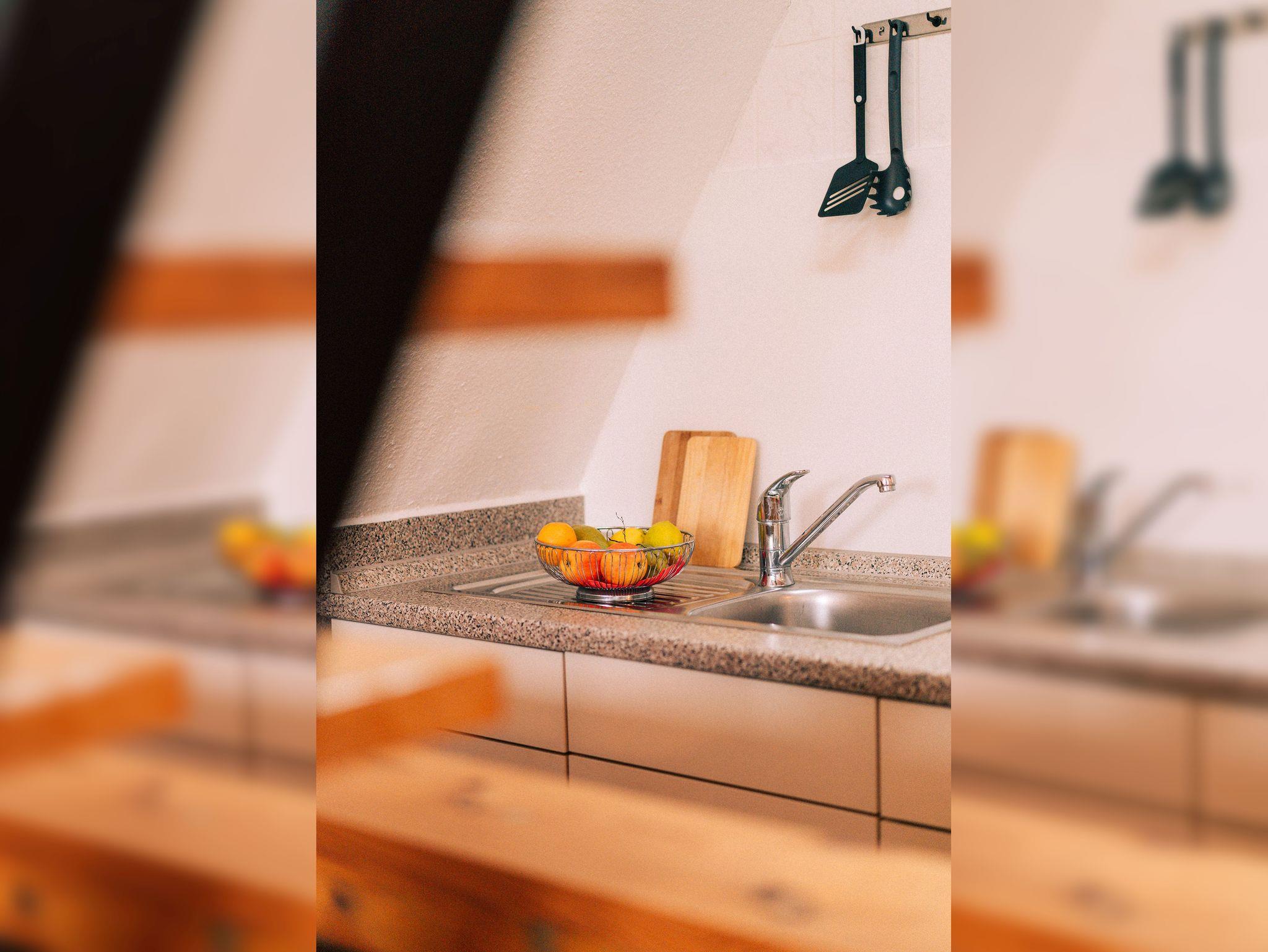 Die Finnhütten 5, 7, 8 und 9 haben ein Fenster in der Küchenecke.