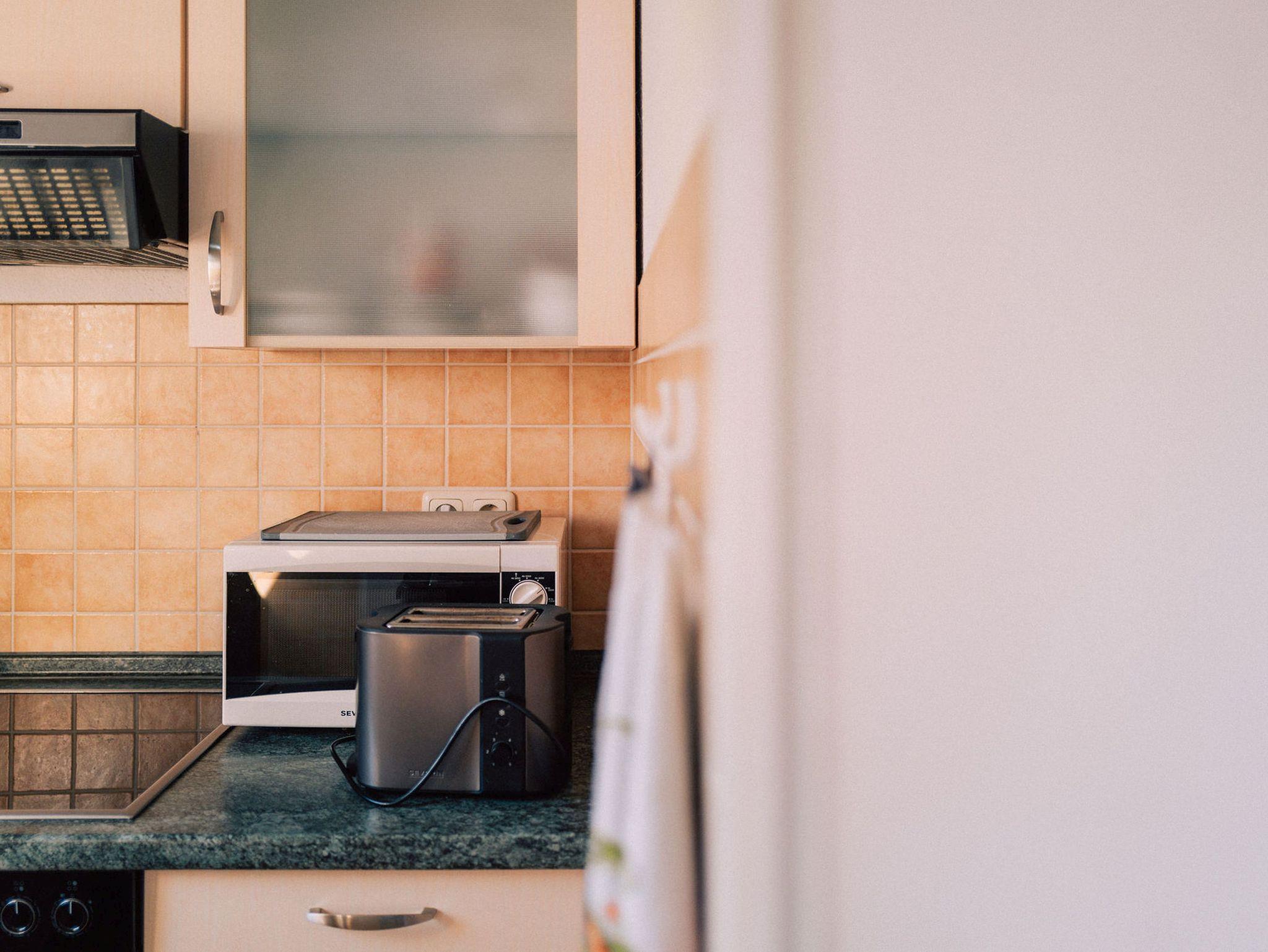 gemütliches Wohnzimmer mit TV zum Entspannen, zum Teil offene Küche mit Kaffeemaschine, Wasserkocher, Toaster, Mikrowelle, Herd mit Ofen, Badezimmer mit Dusche/ WC.