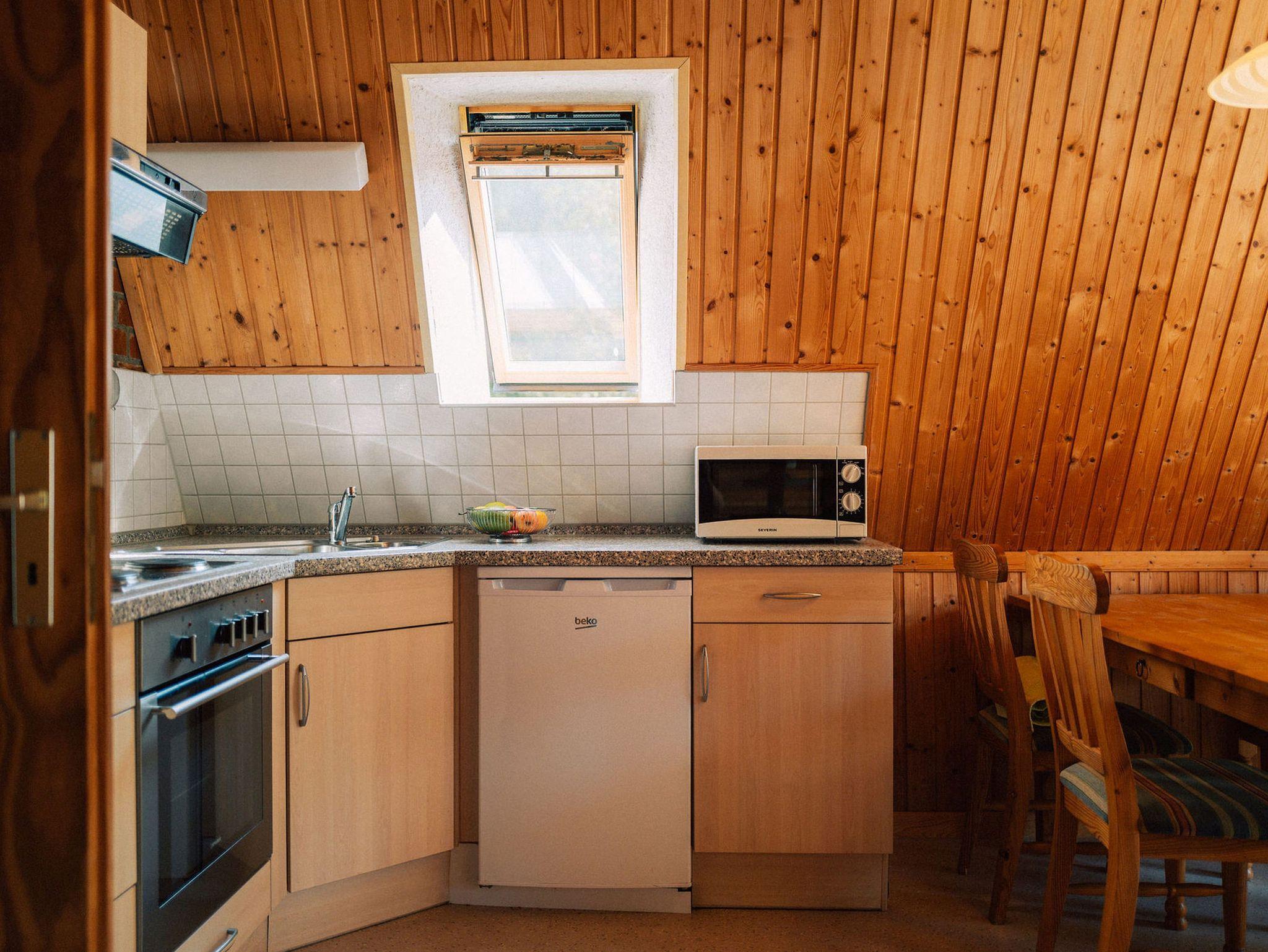 Die Finnhütten 5, 7, 8 und 9 haben ein Fenster in der Küchenecke.