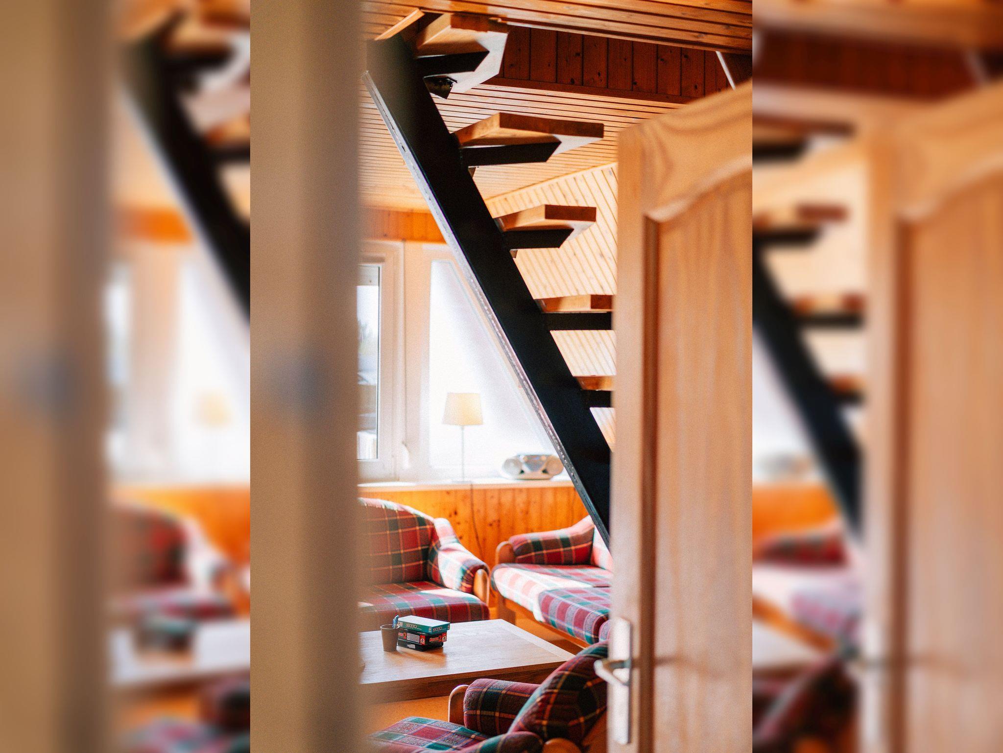 Eine steile Raumspartreppe führt zu den zwei Schlafräumen - ein Schlafzimmer mit Doppelbett, ein Schlafzimmer mit zwei Einzelbetten. Die Bettwäsche ist inklusive. Handtücher bitte mitbringen!
