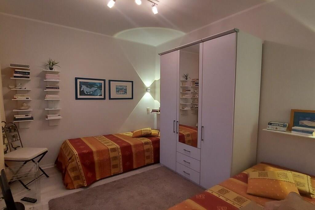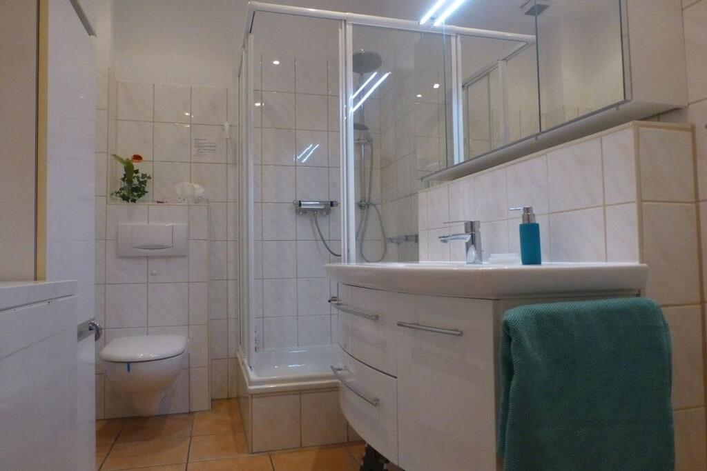 Unsere lichtdurchflutete, hochwertig eingerichtete Ferienwohnung befindet sich in einem in der typischen Bauweise (Bäderarchitektur) Ende der 90er Jahre vollrenovierten Haus im 1. Stock. Sie liegt in einer Seitenstraße zum Alten Strom und ist für 2-4 Personen eingerichtet. Zur verkehrsberuhigten Straße (Linden-Allee) öffnet sich eine 21 qm große Hochterrasse mit Teak-Gartenmöbeln, Strandkorb und Sonnenschirm ausgestattet. Bis hin zum zusätzlichen TV im Schlafzimmer, kostenlosem Internet-/WLAN-Zugang, Kinder-Reisebett inkl. Matratze, Kinder-Hochstuhl, Waschmaschine im Bad und einer umfassenden Küchenausstattung - inklusive Espresso-Maschine, Mikrowelle, Toaster, Wasserkocher, Eierkocher, etc., ist fast alles, inkl. 3 Fahrräder, vorhanden, ebenfalls diverse Strandutensilien, wie Strandmatten und -Muschel, Kinderspielzeug, etc. Obligatorisch findet der neue Gast einen gefüllten Vorratsschrank wie Kaffee, Tee, Zucker, Mehl, Öl, Essig, div. Gewürze, etc., und vor der Abreise wird, z.b. Kaffeepulve,r wieder aufgefüllt. Unsere Gäste (darunter viele Stammgäste, die seit Jahren immer wieder kommen) sagen uns - auch das trägt zu dem Gefühl bei, nach 'Hause' zu kommen. Viele Einträge in unserem Gästebuch zeugen davon.