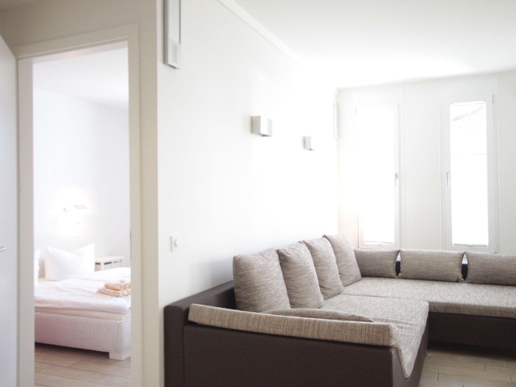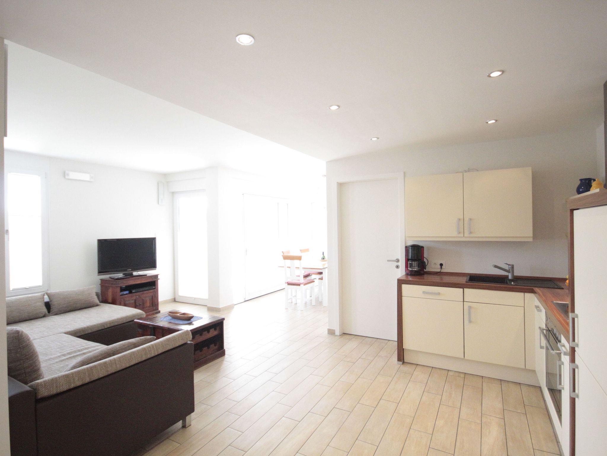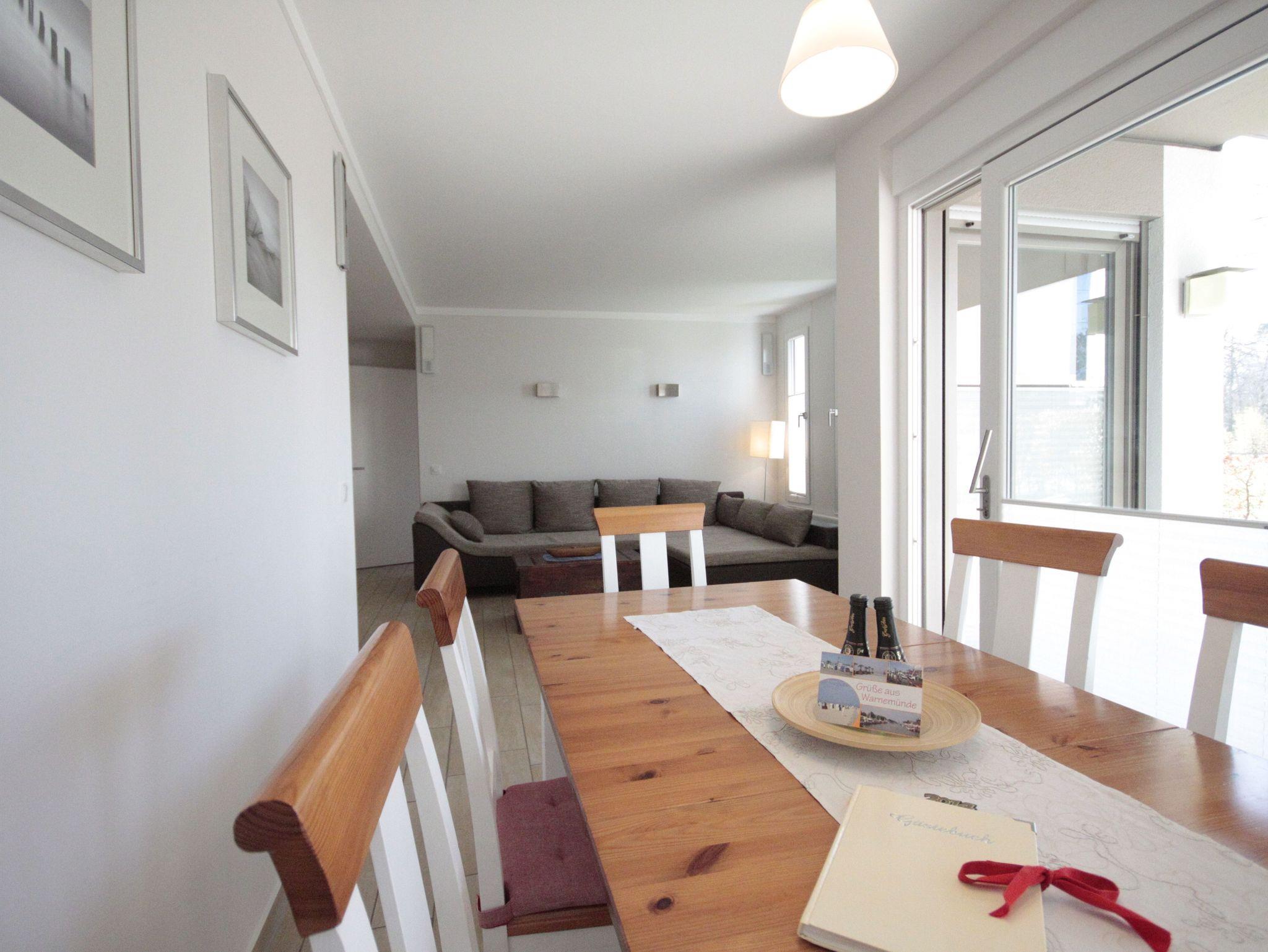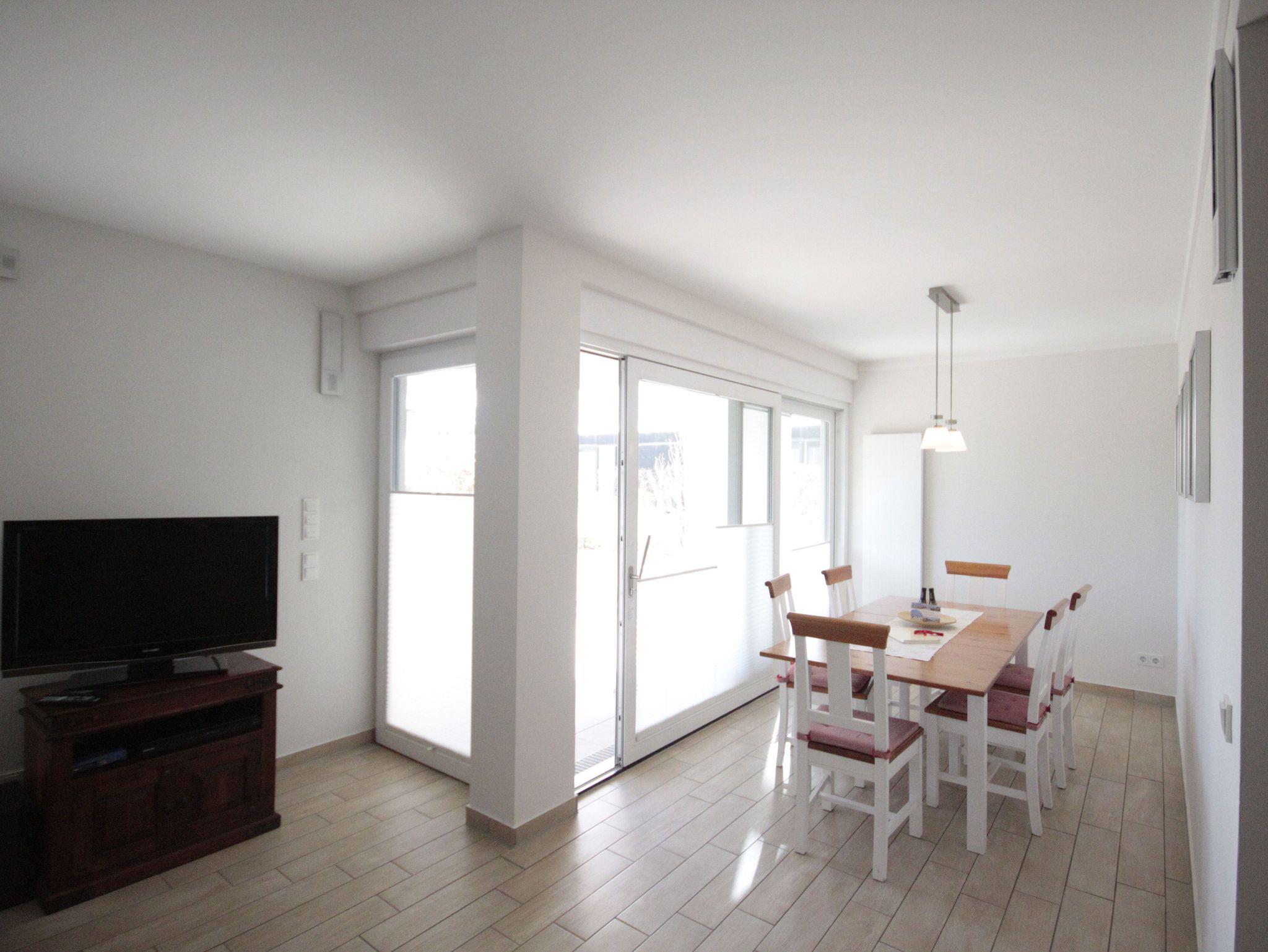 Hochwertige Ferienwohnung mit viel Platz für 4 Personen. Eine große Terrasse mit Blick in den Kurpark ist direkt vom Wohnbereich zu betreten. Die Terrasse ist saisonbedingt (Mai bis September) möbliert.