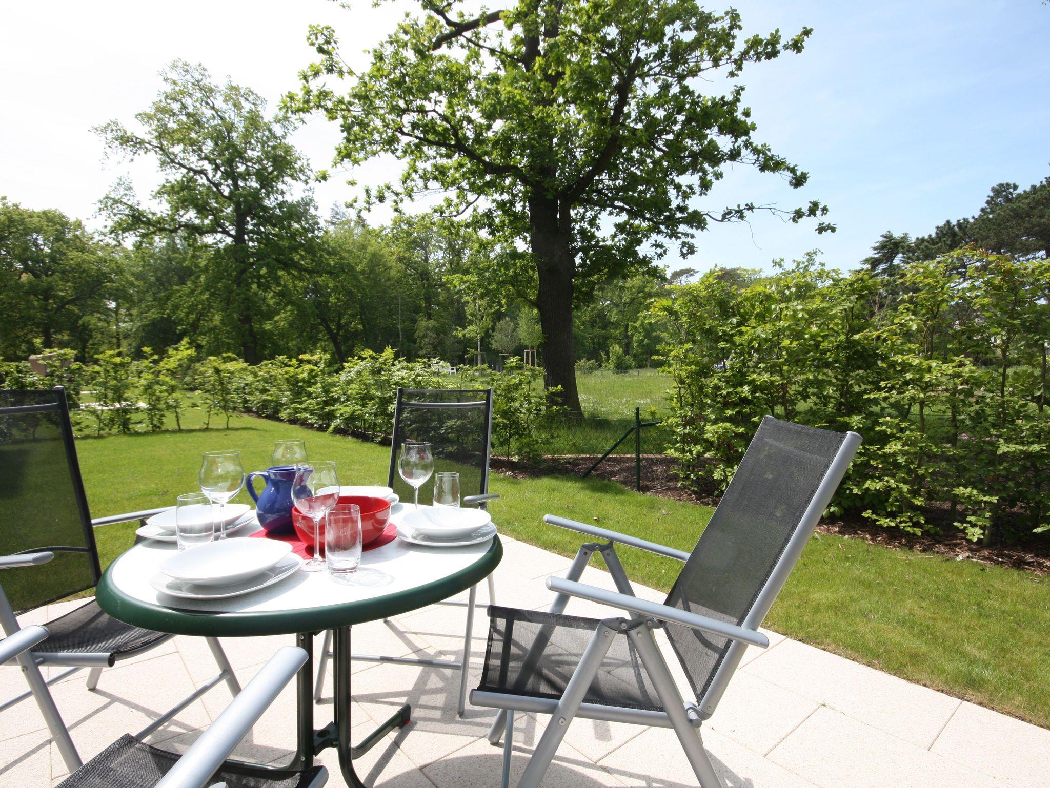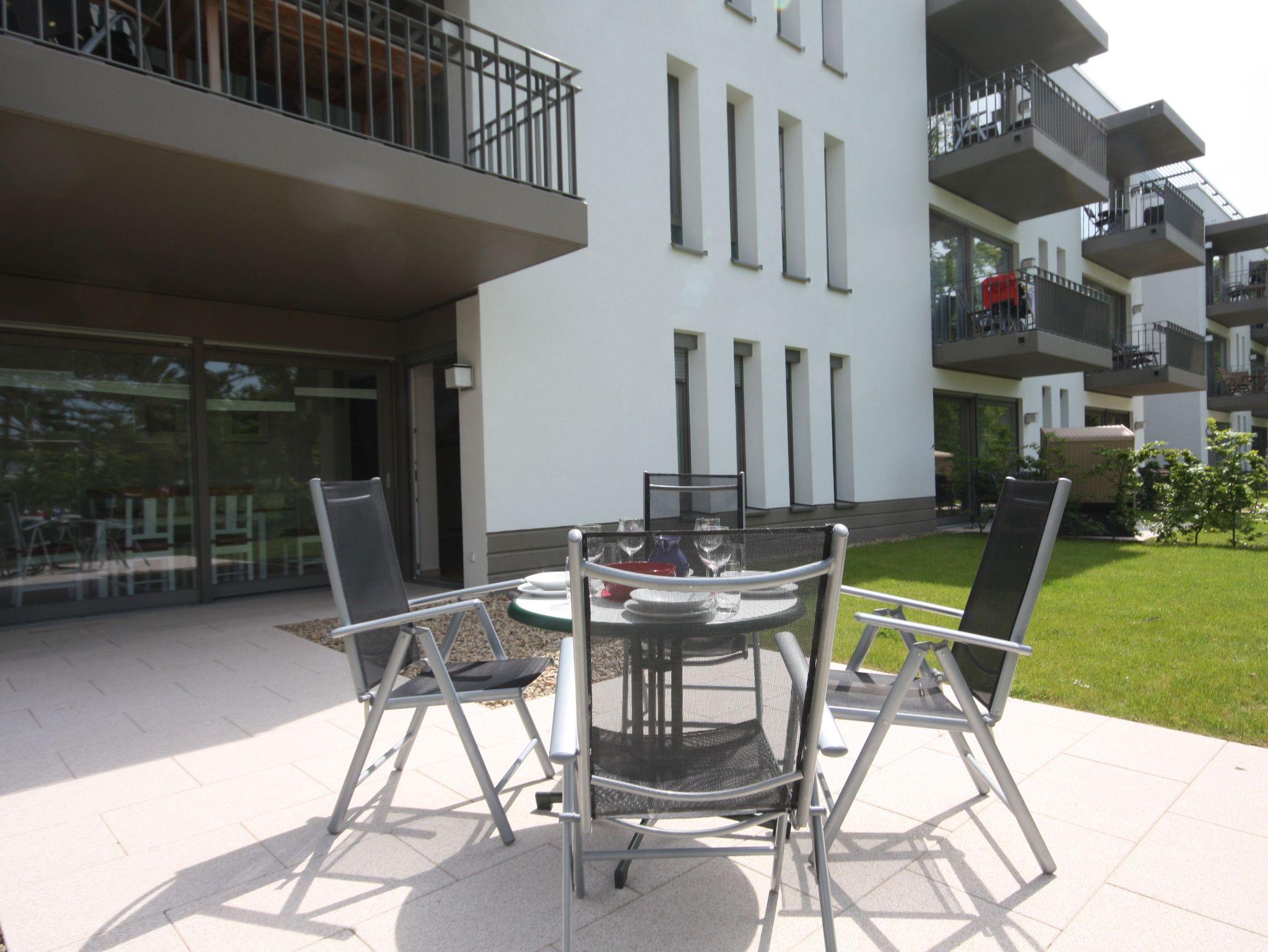 Moderne Ferienwohnung mit Terrasse und Parkblick in Warnemünde, nahe Strand und Zentrum.