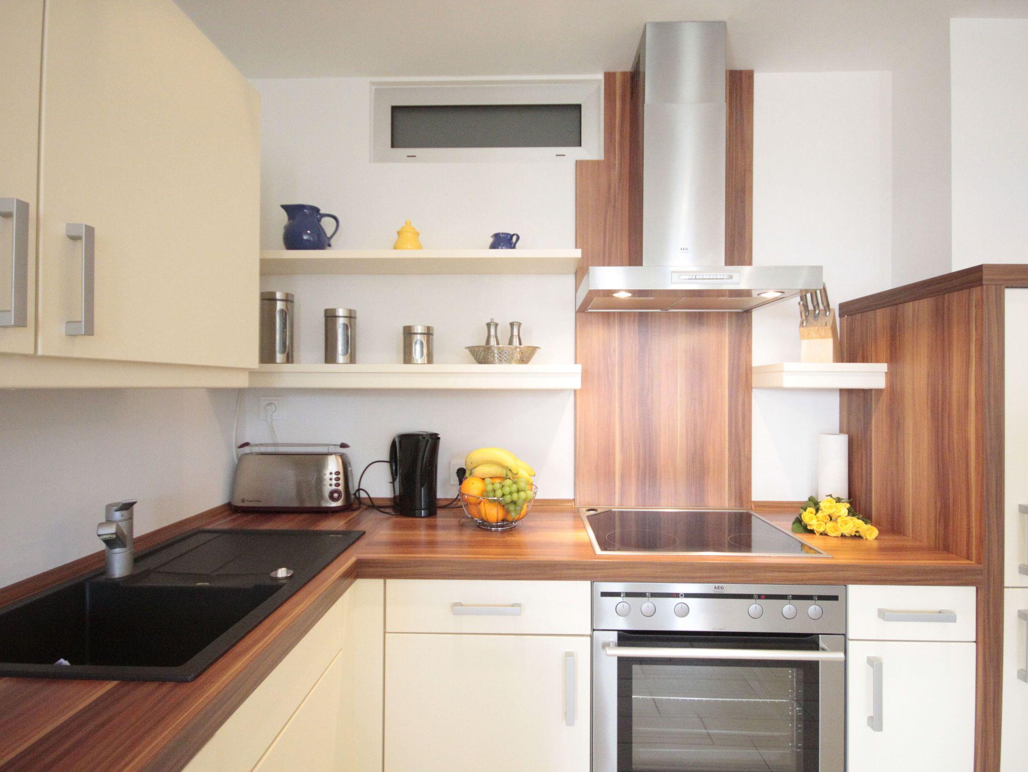 Neben der voll eingerichteten modernen Küche mit Geschirrspülmaschine, Mikrowelle und Backofen gibt es noch eine Waschmaschine und einen Trockner. Die offene Küche ist in dem großzügigen Wohn/Esszimmer integriert. Das hochwertige Badezimmer ist mit einer begehbaren Dusche ausgestattet.