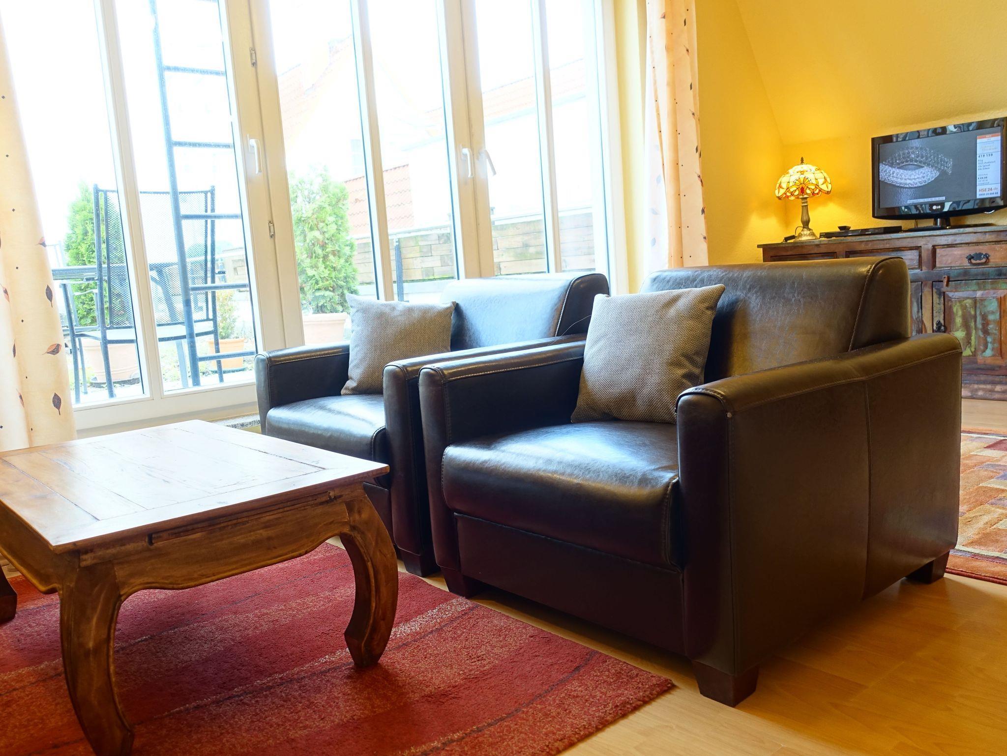 Die Ferienwohnung geht über 2 Ebenen und liegt in der Alexandrinenstraße. Auf der großen und ruhigen Terrasse kann man herrlich entspannen. Zum Leuchtturm und dem schönen Ostseestrand läuft man nur 300 Meter.