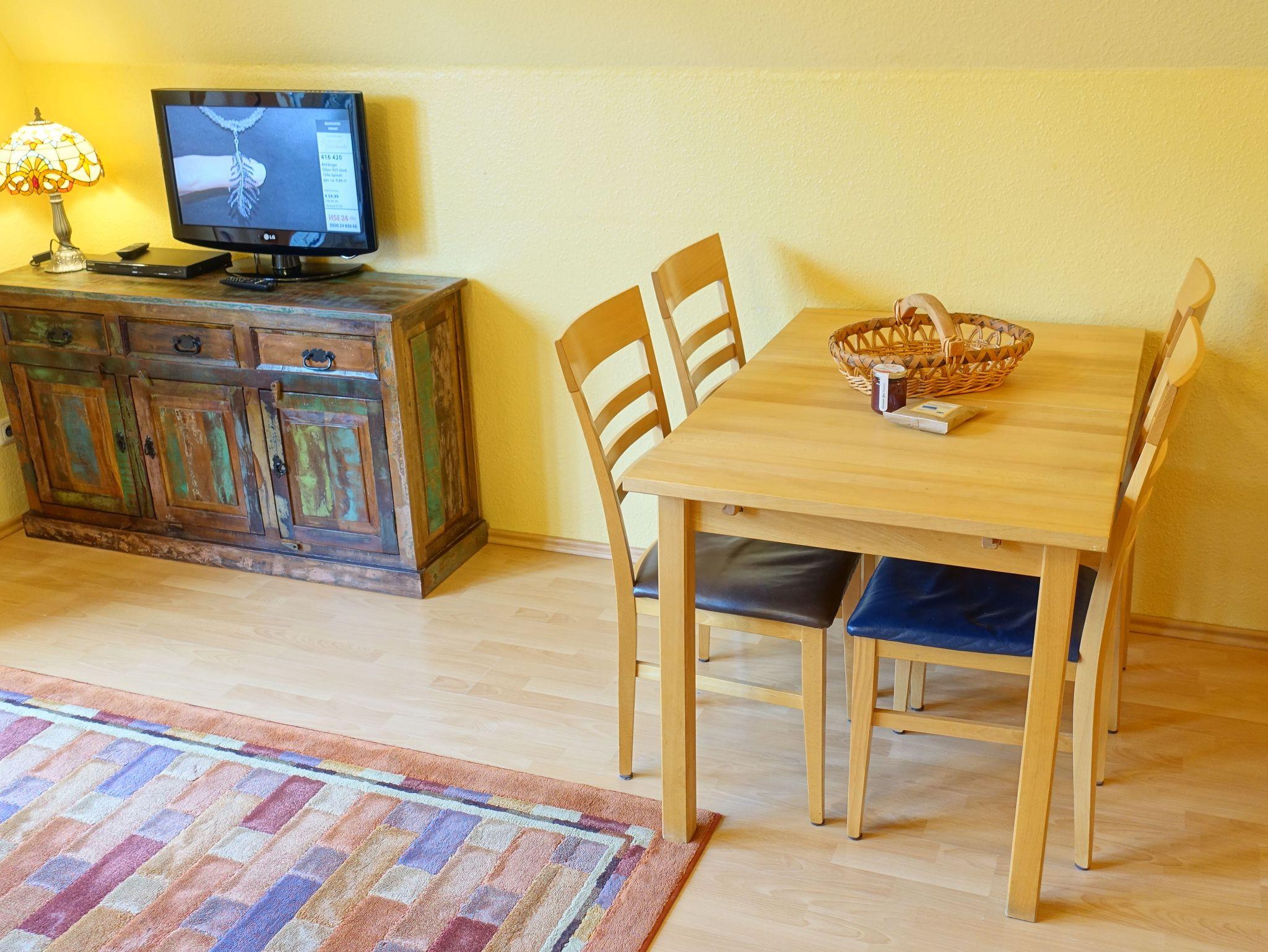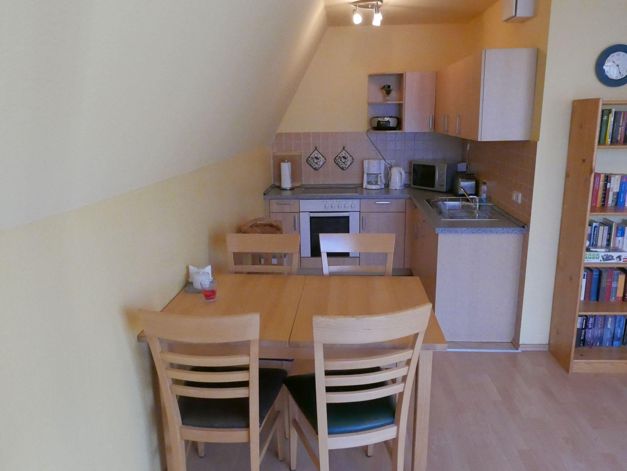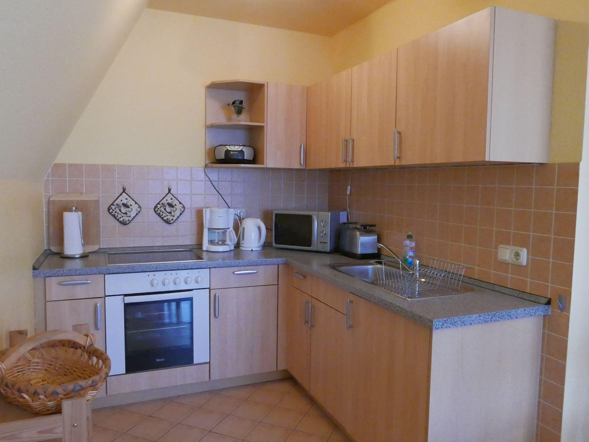 Schöne, geräumige Ferienwohnung mit herrlicher Terrasse und zwei Schlafzimmern (eines ist davon ein offener Schlafraum). Die Küche bietet eine gute Ausstattung mit Elektroherd, Backofen, Kühlschrank und Mikrowelle. Selbstredend sind alle erforderlichen Kochutensilien und das Geschirr vorhanden.