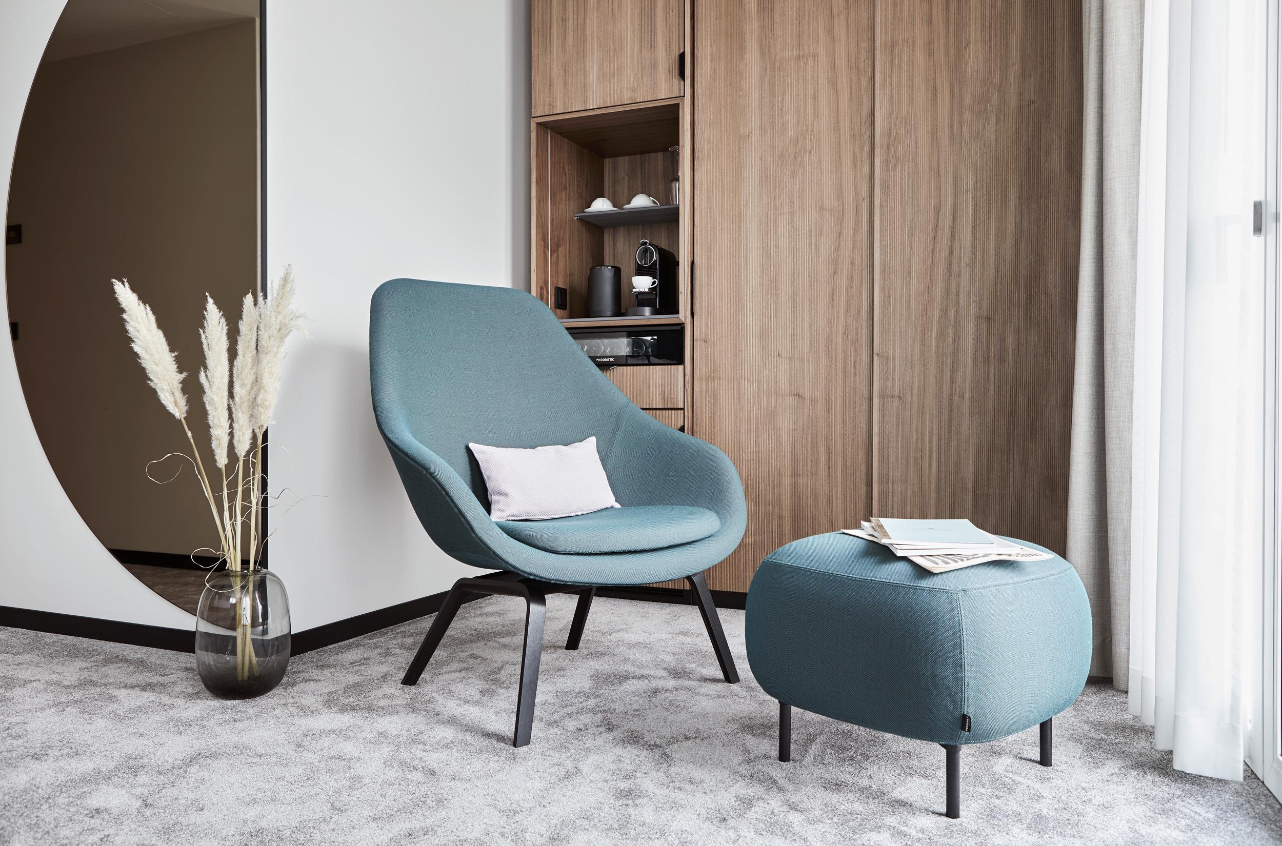 Modernes Doppelzimmer mit Meerblick im Boutique-Hotel direkt am Strand von Warnemünde.