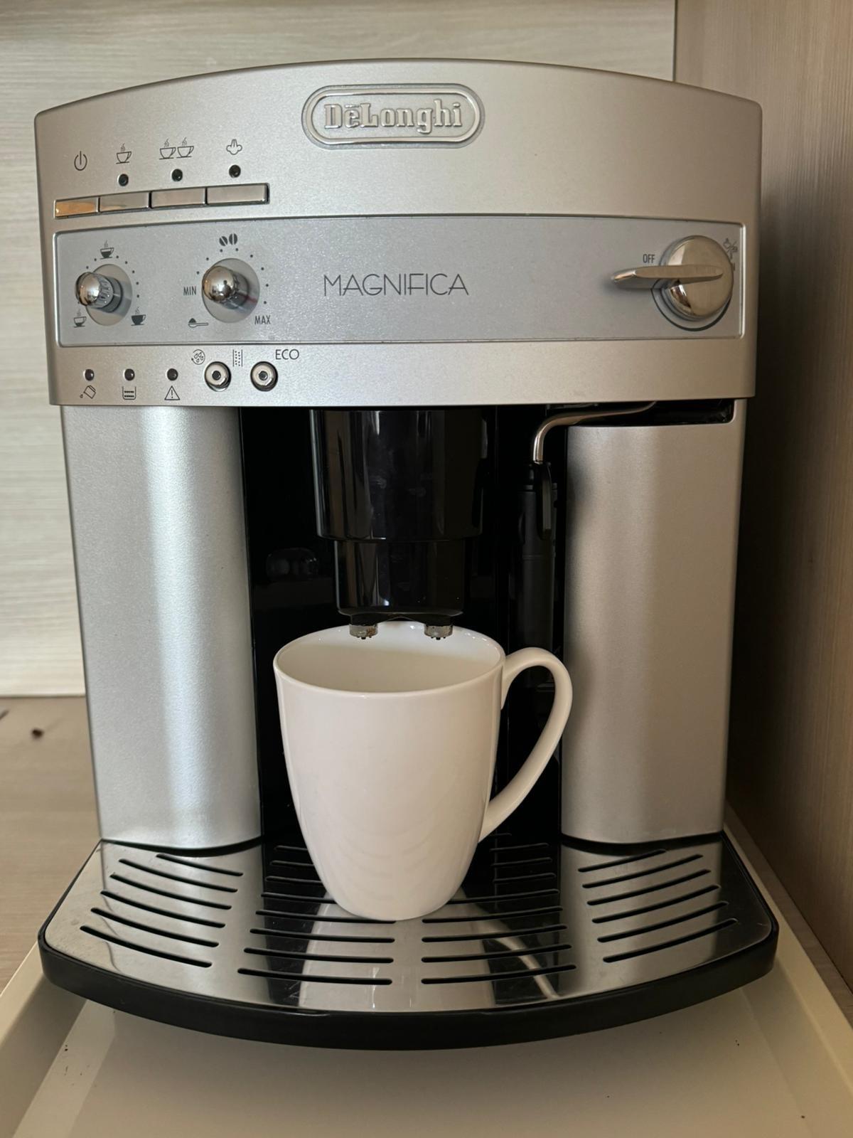 Beginnen Sie den Morgen bei einer Tasse Kaffee, Espresso oder Cappuccino entspannt auf dem Balkon! Ein Kaffeevollautomat steht Ihnen zur Verfügung. Die Betten des Schlafzimmers wurden mit einem
