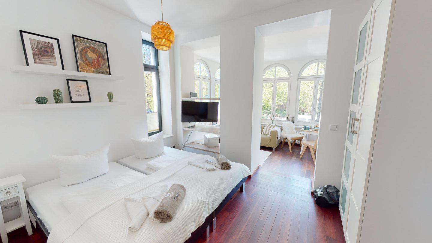 Moderne, 30 m² große Ferienwohnung in einer Villa für zwei Personen in Warnemünde am Kurpark - Ideal für Gäste mit Hund.