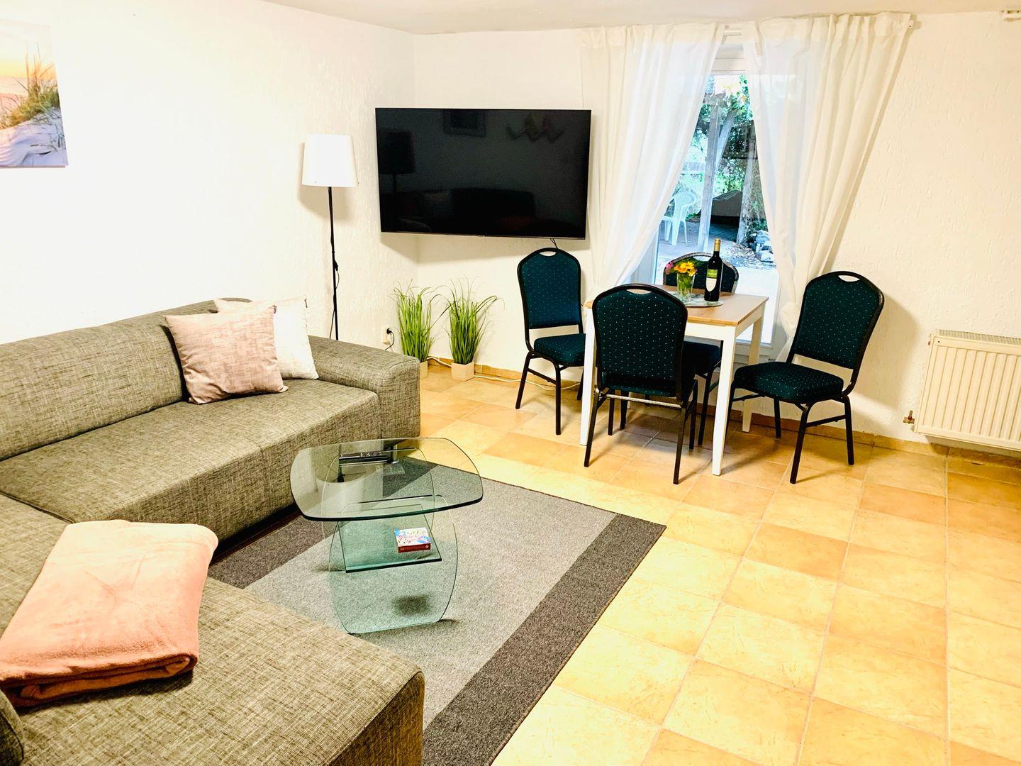 Im Obergeschoss finden Sie eine weitere Wohneinheit. Es gibt hier 2 separate Schlafzimmer mit jweils einem großem Doppelbett. Weiterhin finden in jedem Schlafzimmer 2 weitere Personen Platz zum Schlafen. Vom Südbalkon kann man in den wunderschönen Park und zum Spielplatz blicken. Ein großes Wohnzimmer mit Smart-TV 75Zoll läd zu gemütlichen Filmabenden ein. Hier ist eine kleine Küche zum Zubereiten Ihrer Speisen. Das Badezimmer mit Eckbadewanne bietet viel Raum zum Wohlfühlen.