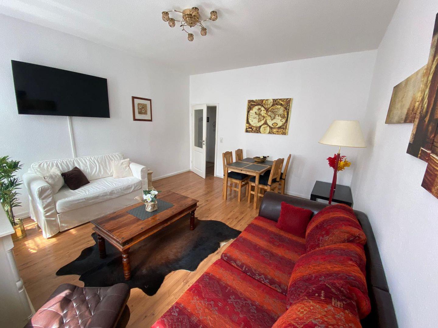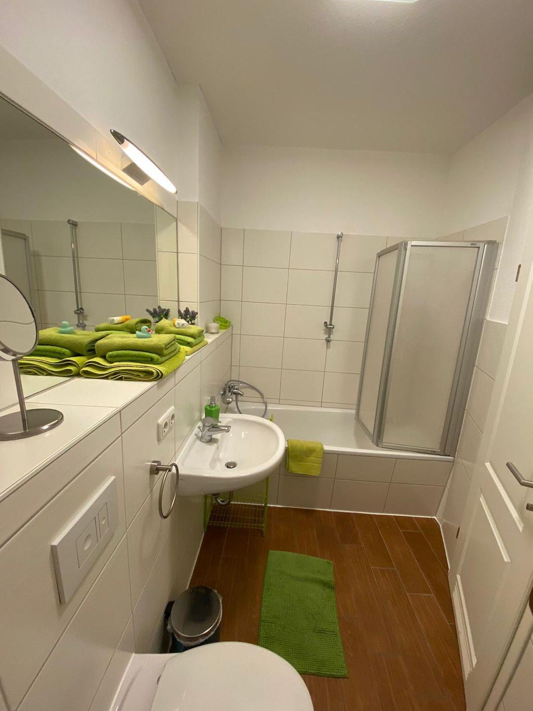 Komfortable Wohnung (60 qm) mit W-Lan, komplett ausgestatteter Küche (u.a. Spülmaschine, Toaster, Wasserkocher, Kaffeemaschine, Geschirr, Herd mit Backofen, Kühlschrank).