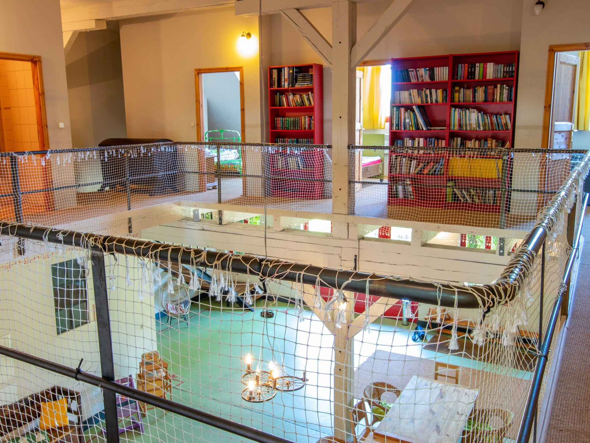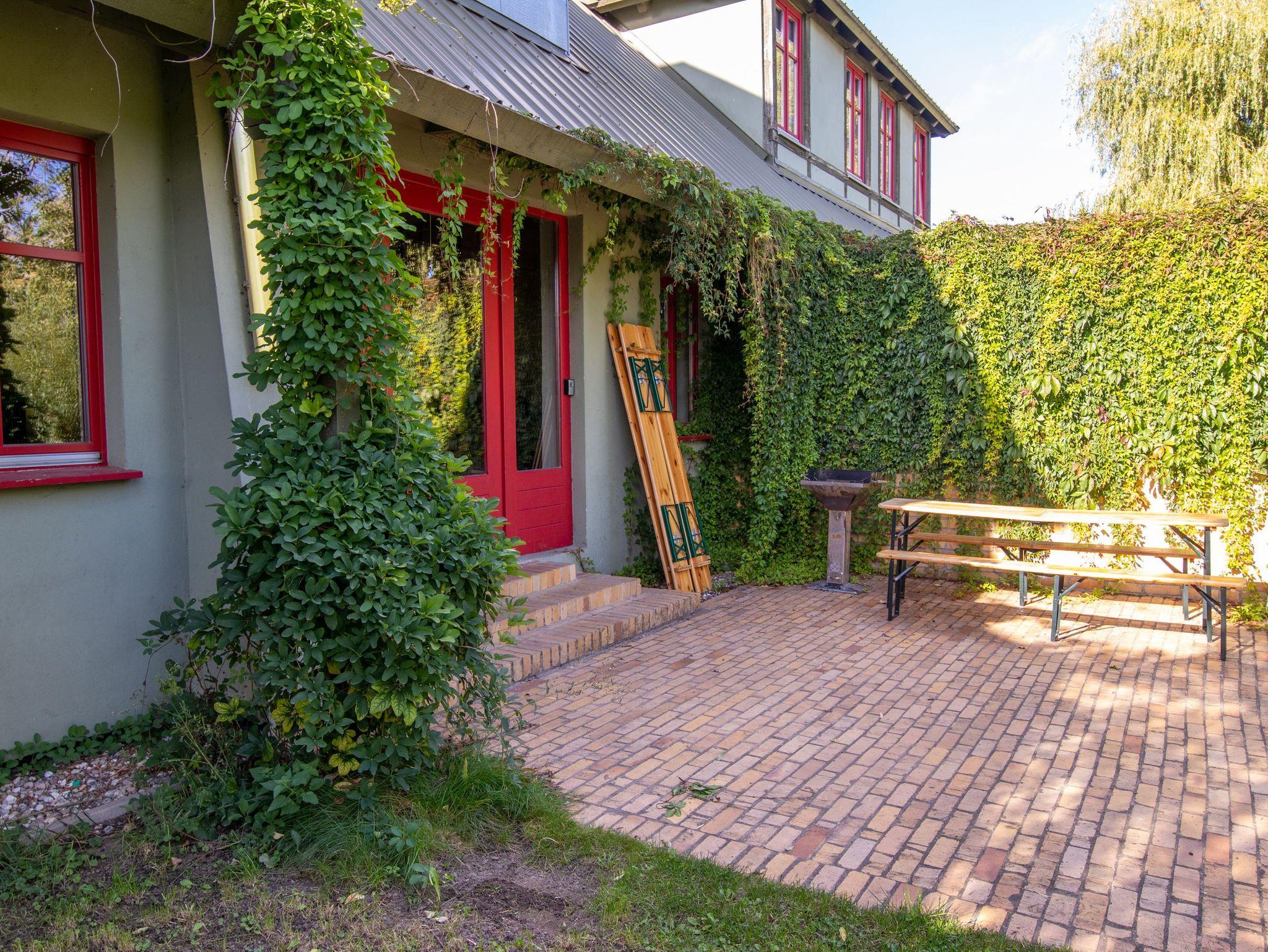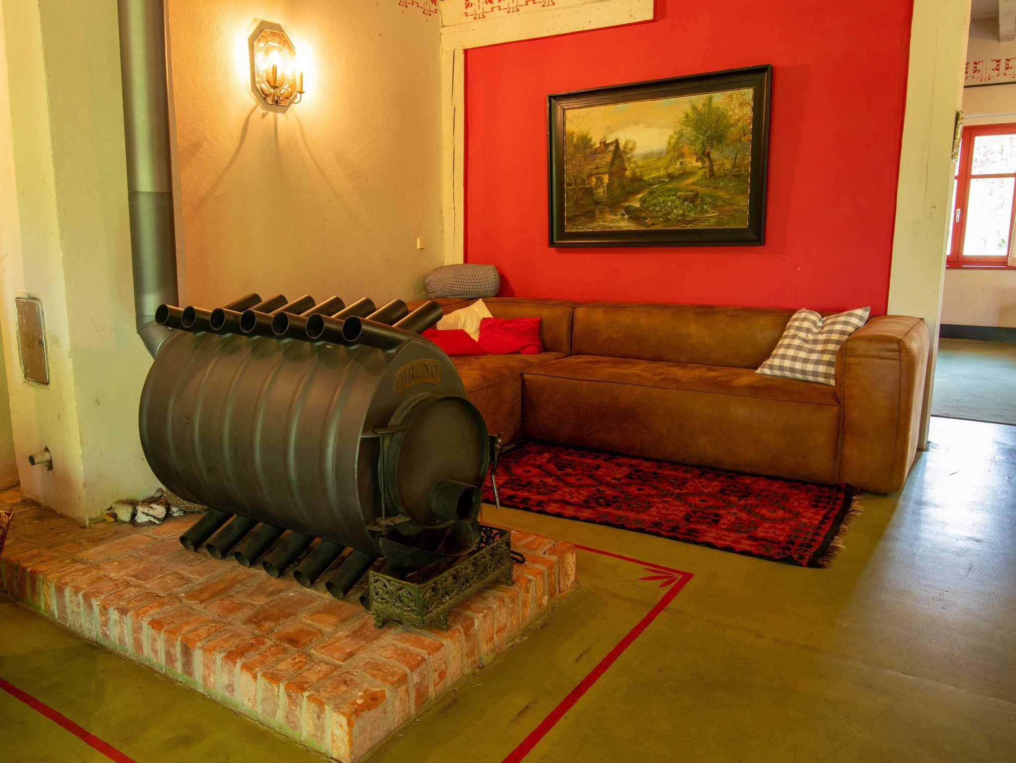 Die 270m² große Ferienwohnung befindet sich im mittleren Teil eines großen Wohnhauses in ruhiger Dorflage und bietet bis zu 20 Gästen Schlafplätze. Im Erdgeschoss befindet sich ein offener Wohn-Essbereich mit einem großzügigen Esstisch in der Mitte. Zum offenen Konzept gehören des weiteren eine Kücheninsel, ein Billardtisch, ein Bullerjan-Ofen, sowie verschiedene Sofas und kleinere Esstischen. Zusätzlich befinden sich zwei Badezimmer mit Dusche im Erdgeschoss und ein Badezimmer im Obergeschoss. Alle 5 Schlafzimmer liegen im Obergeschoss und sind mit Doppelbetten oder Etagenbetten ausgestattet. Die Ferienwohnung ist einfach und teilweise im Stil der vorletzten Jahrhunderwende möbliert. Es gibt viele liebevolle Details. Vor dem Haus steht ein gemeinschaftlich genutzter Garten mit einem Naturteich und einer Feuerstelle zur Verfügung.