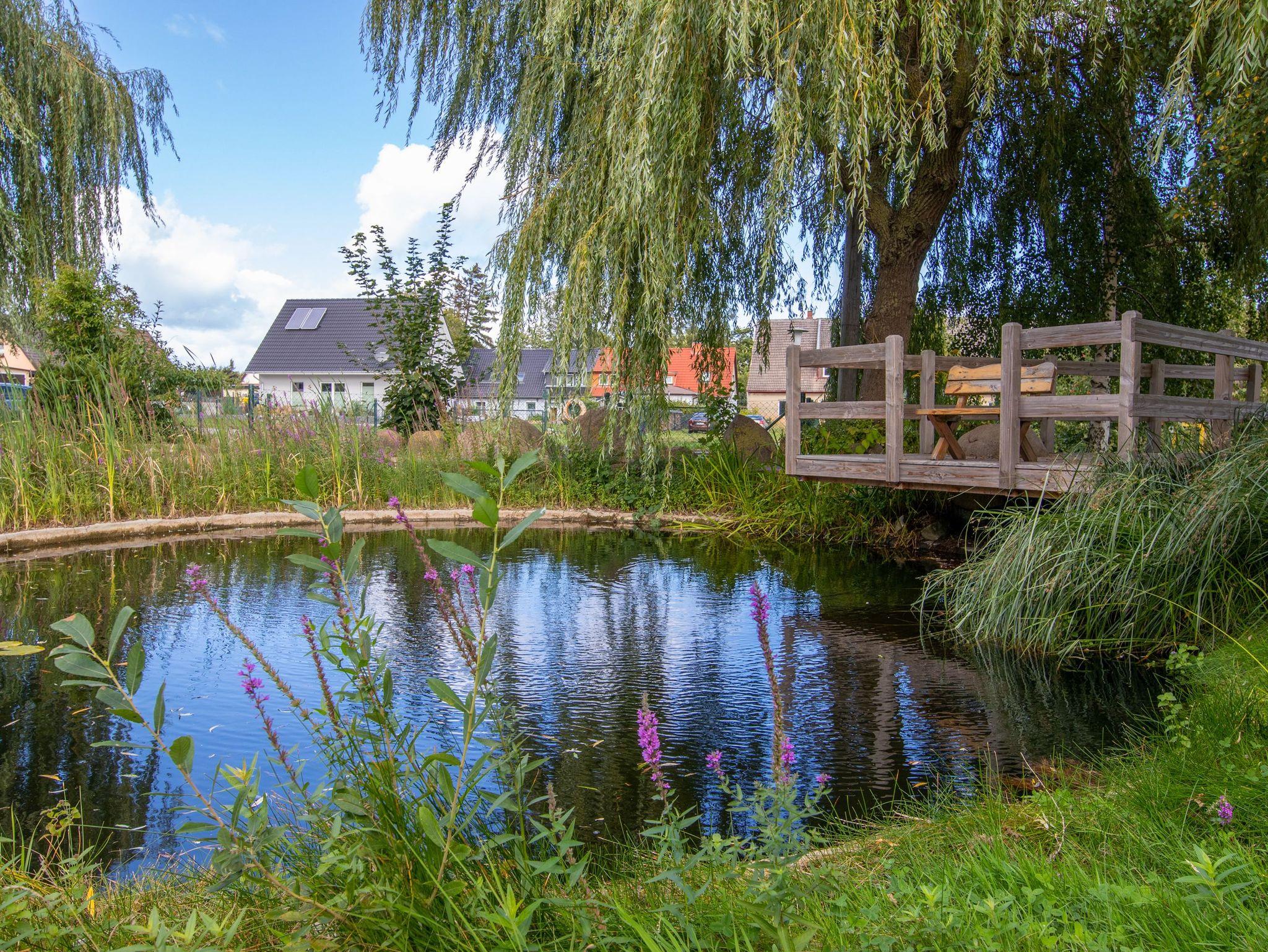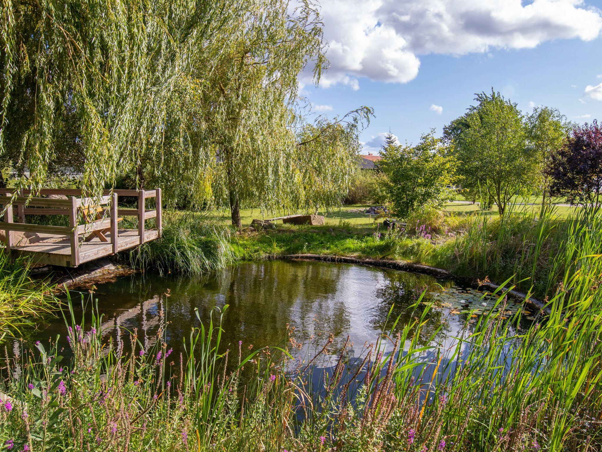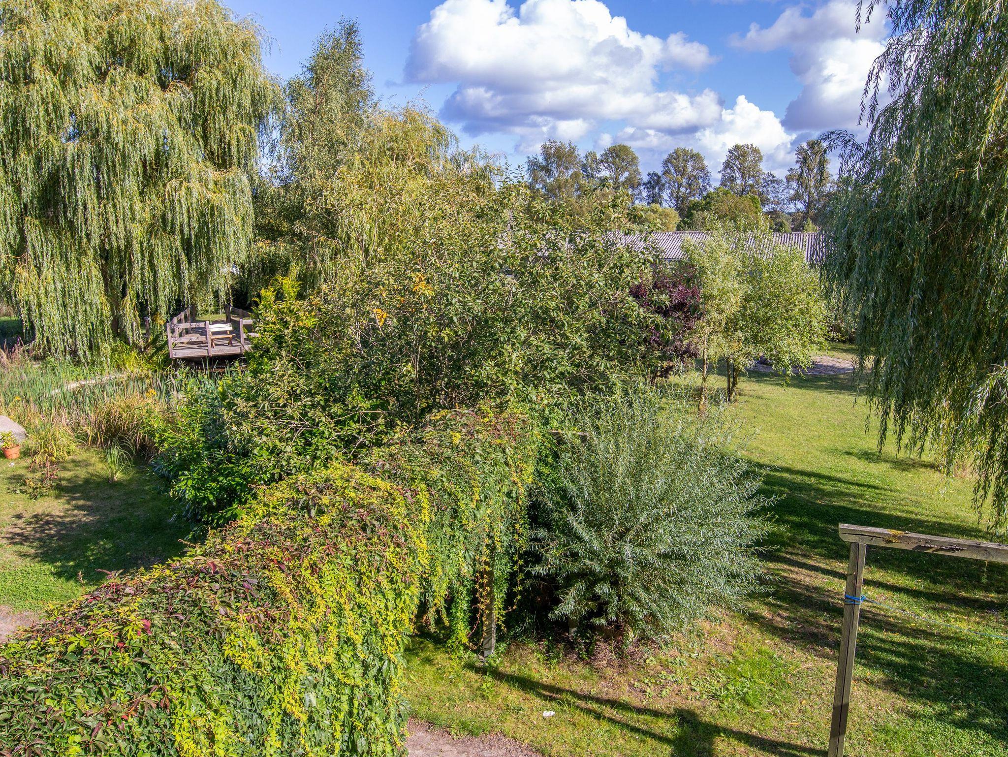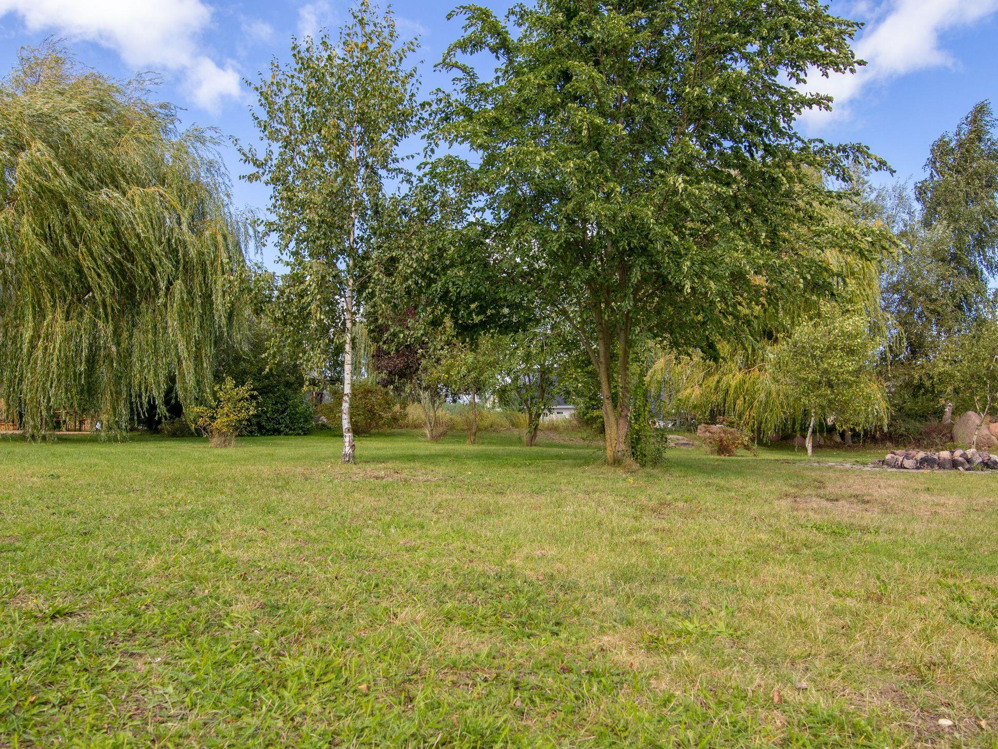 Die 270m² große Ferienwohnung befindet sich im mittleren Teil eines großen Wohnhauses in ruhiger Dorflage und bietet bis zu 20 Gästen Schlafplätze. Im Erdgeschoss befindet sich ein offener Wohn-Essbereich mit einem großzügigen Esstisch in der Mitte. Zum offenen Konzept gehören des weiteren eine Kücheninsel, ein Billardtisch, ein Bullerjan-Ofen, sowie verschiedene Sofas und kleinere Esstischen. Zusätzlich befinden sich zwei Badezimmer mit Dusche im Erdgeschoss und ein Badezimmer im Obergeschoss. Alle 5 Schlafzimmer liegen im Obergeschoss und sind mit Doppelbetten oder Etagenbetten ausgestattet. Die Ferienwohnung ist einfach und teilweise im Stil der vorletzten Jahrhunderwende möbliert. Es gibt viele liebevolle Details. Vor dem Haus steht ein gemeinschaftlich genutzter Garten mit einem Naturteich und einer Feuerstelle zur Verfügung.