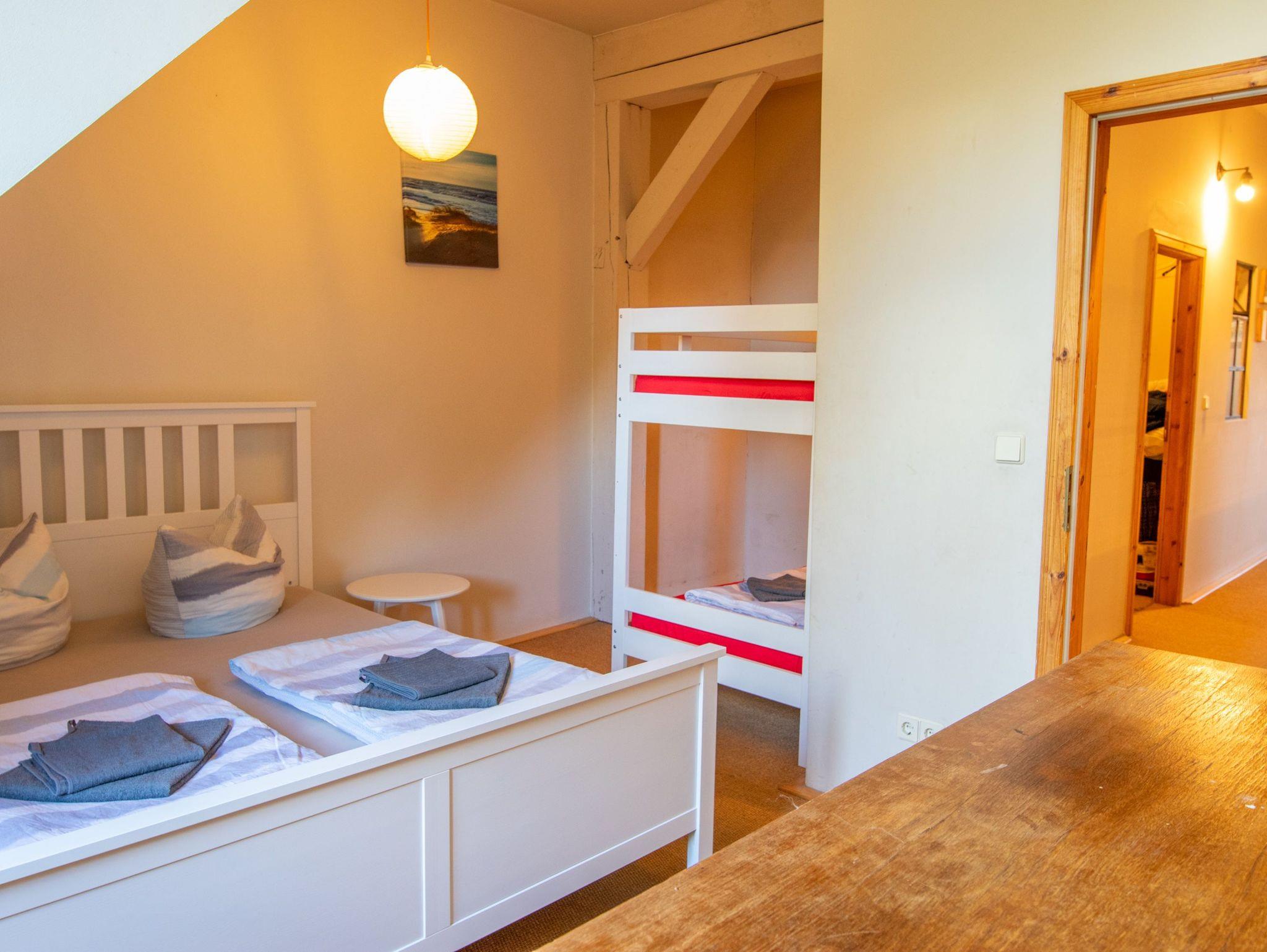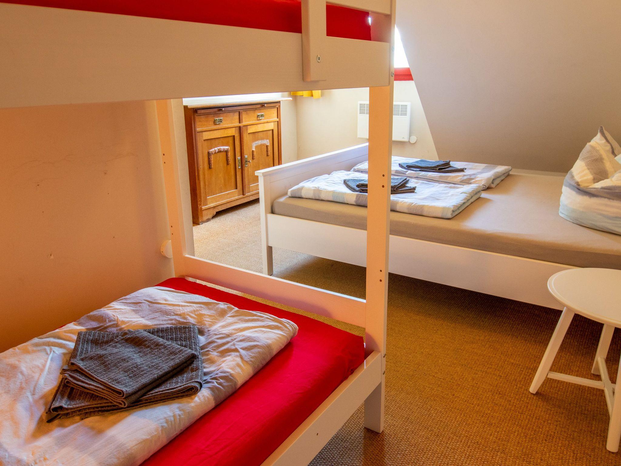 - 1 Schlafzimmer mit Etagenbett (90x200) und Doppelbett (160x200), sowie Tandembett (zwei Matratzen 90x200)