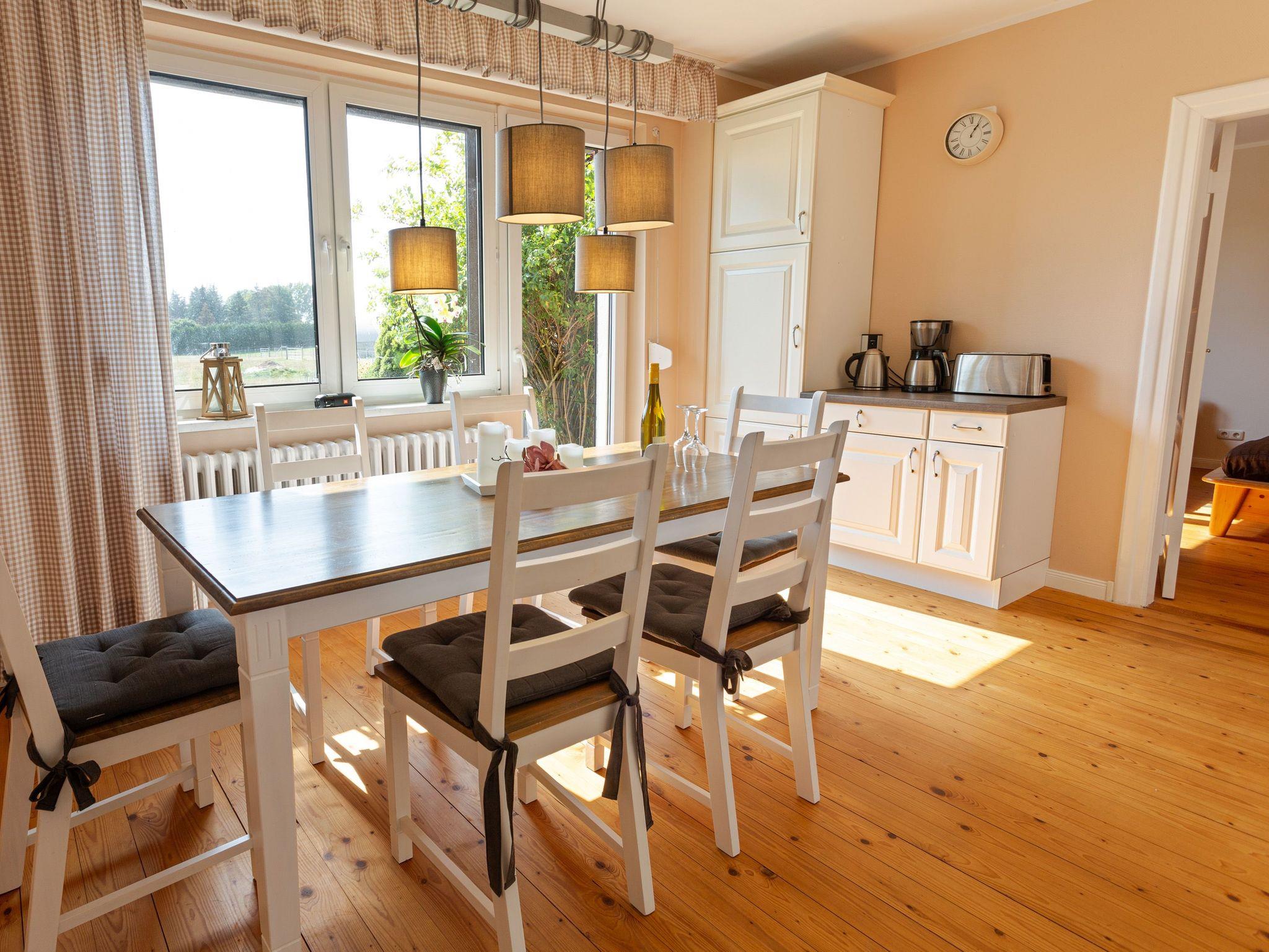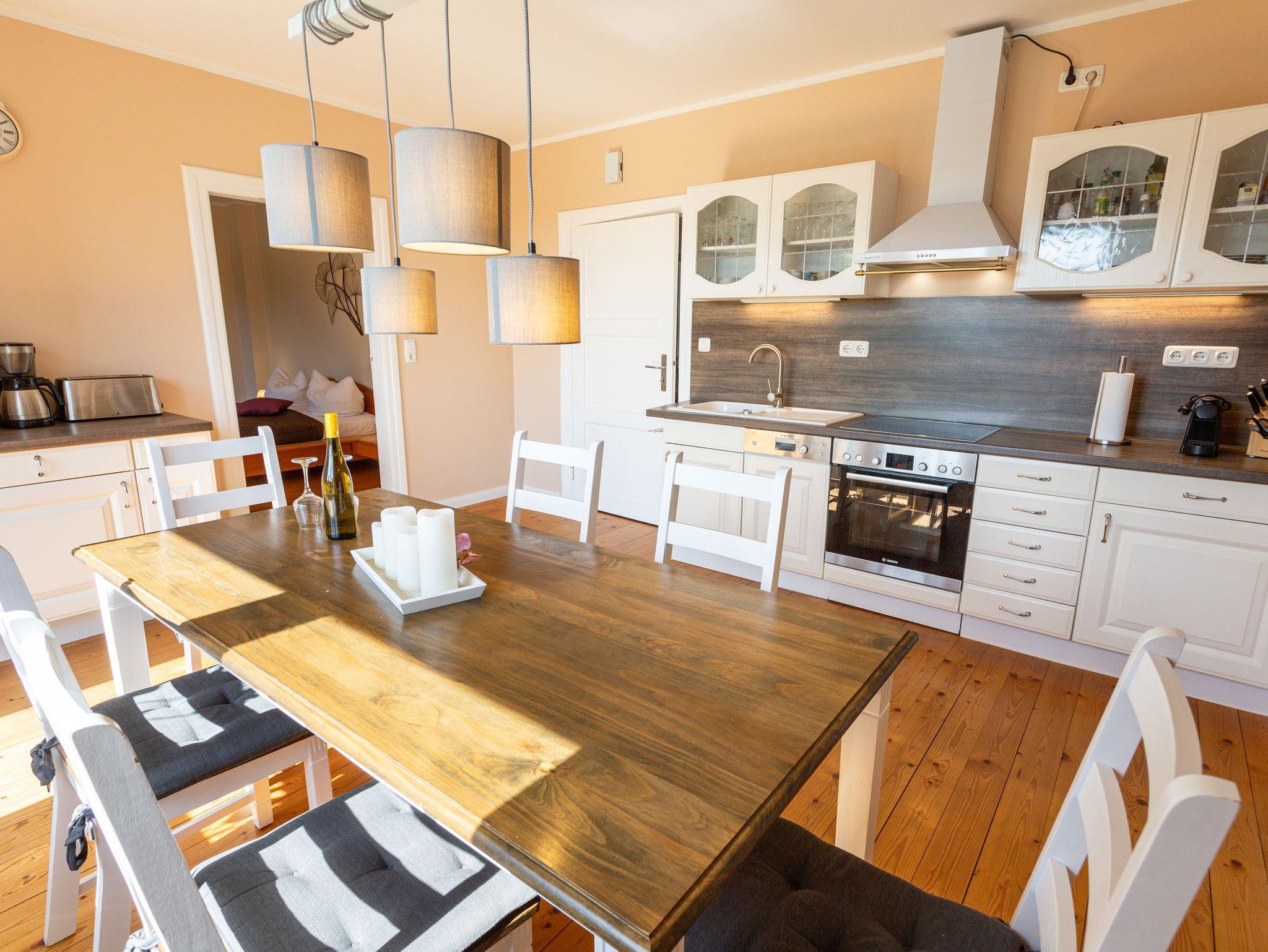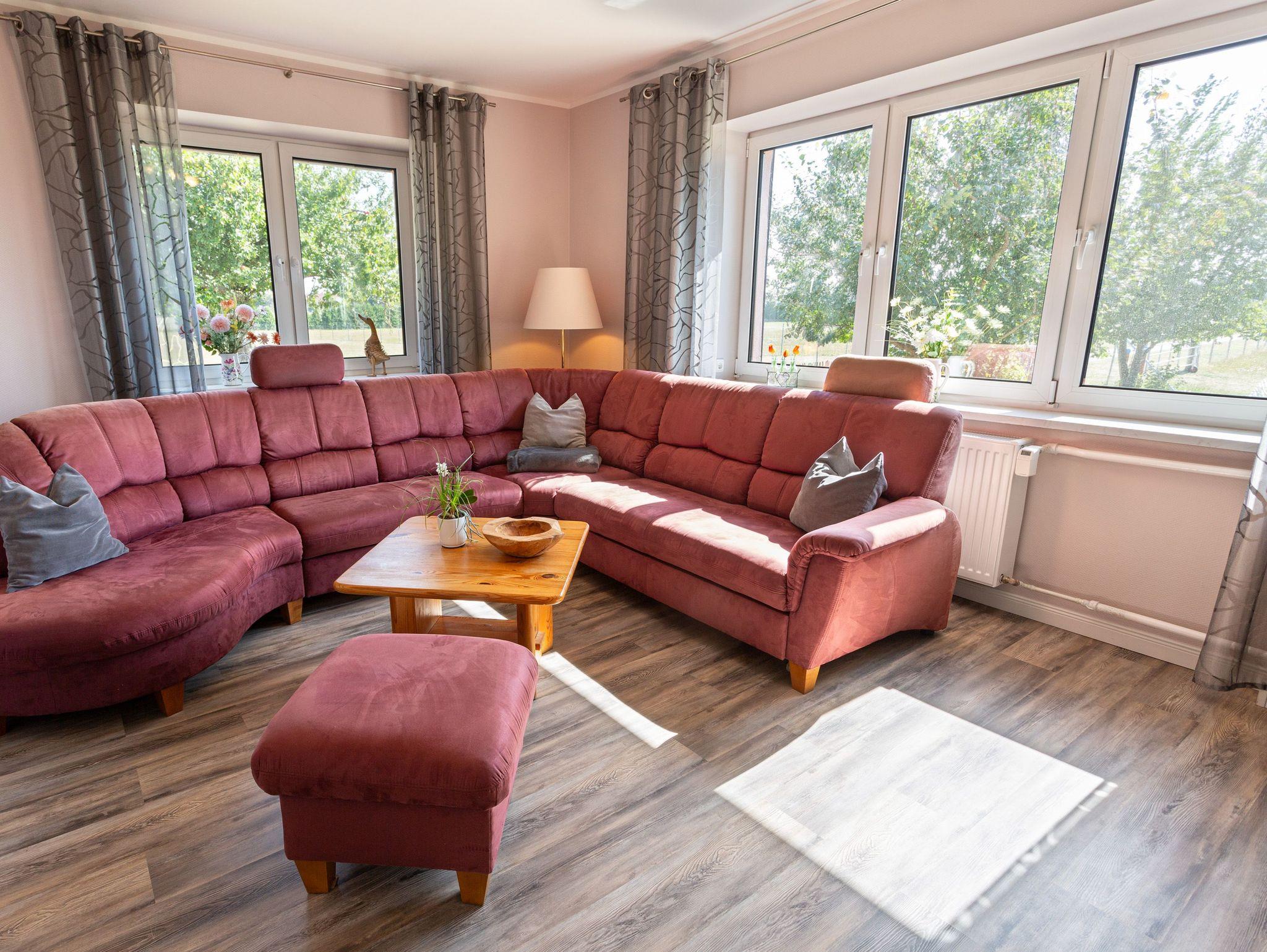 In dem Bauernhaus auf dem Alpaka-Hof in Rubkow, zwischen Anklam und Wolgast, erwartet Sie eine fast ebenerdige 85 m² große Wohnung mit 3 Zimmern, Küche und Bad. Diese wurde neu ausgebaut, gemütlich eingerichtet und befindet sich auf einer Etage. Durch einen separaten Eingang gelangen Sie über einen kleinen Flur in eine moderne Küche mit großem Esstisch für bis zu 8 Personen. Von da aus empfängt Sie ein gemütlicher Wohnbereich mit bequemen Polstermöbeln (mögliche Aufbettung für 2 Personen) und Sat-TV. Es stehen Ihnen zwei separate Schlafzimmer mit je einem Doppel- und einem weiteren Einzelbett zur Verfügung. Ein geräumiges modernes Bad mit bodenebener großer Dusche, Waschtisch und WC rundet den Komfort ab. Von der voll ausgestatteten Küche geht es in Ihren eigenen Garten mit Ausblick auf die Alpakas. Im Garten befindet sich eine sonnengeschützte Sitzgruppe und ein Holzkohlegrill. Auf der Alpaka-Farm werden Alpaka-Spaziergänge, Alpaka Foto-Shootings, Hofführungen oder Alpaka-Picknicks angeboten. Bei einer Buchung ab 7 Übernachtungen ist ein Alpaka-Picknick (nicht im Winter) oder eine Hofführung für Sie kostenlos.