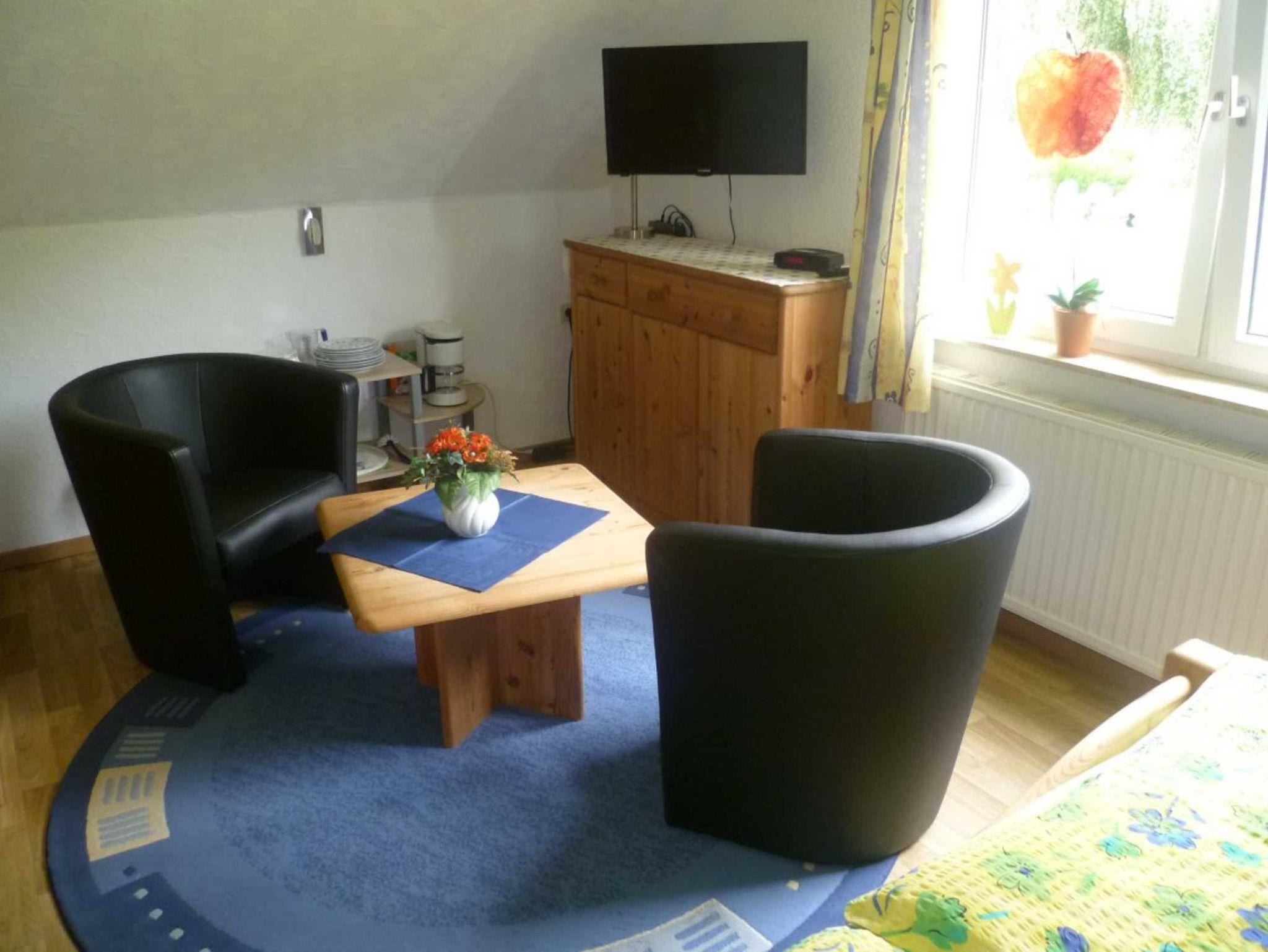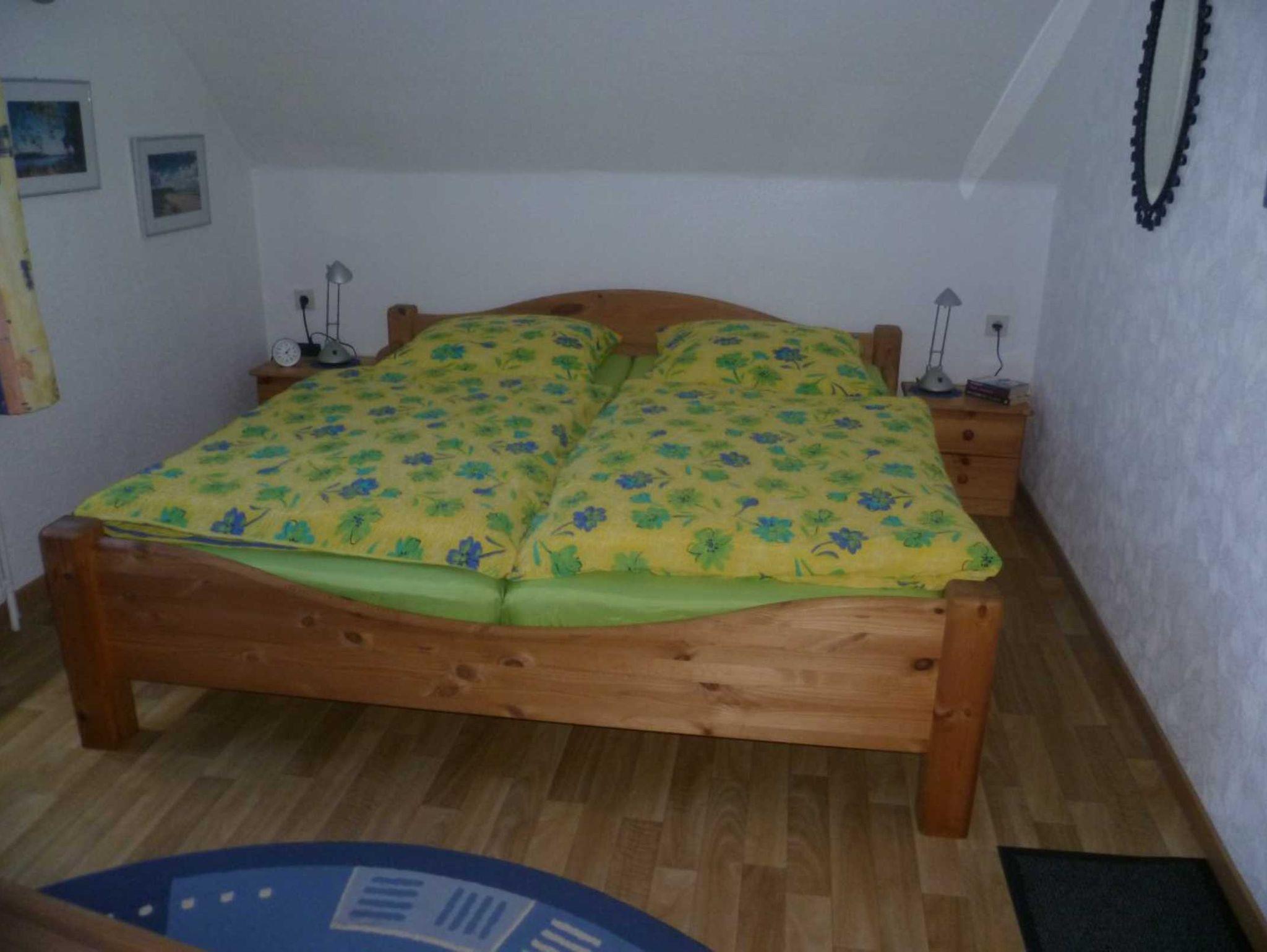 Die Ferienwohnung für 3-4 Personen ist ca. 60 qm groß und hat eine Dachterrasse mit Blick ins Grüne. Sie besteht aus einem Wohnschlafraum (Sitzecke und Doppelbett), einem Schlafzimmer mit französischem Doppelbett (1,40m breit), einer Küche und einem Duschbad.